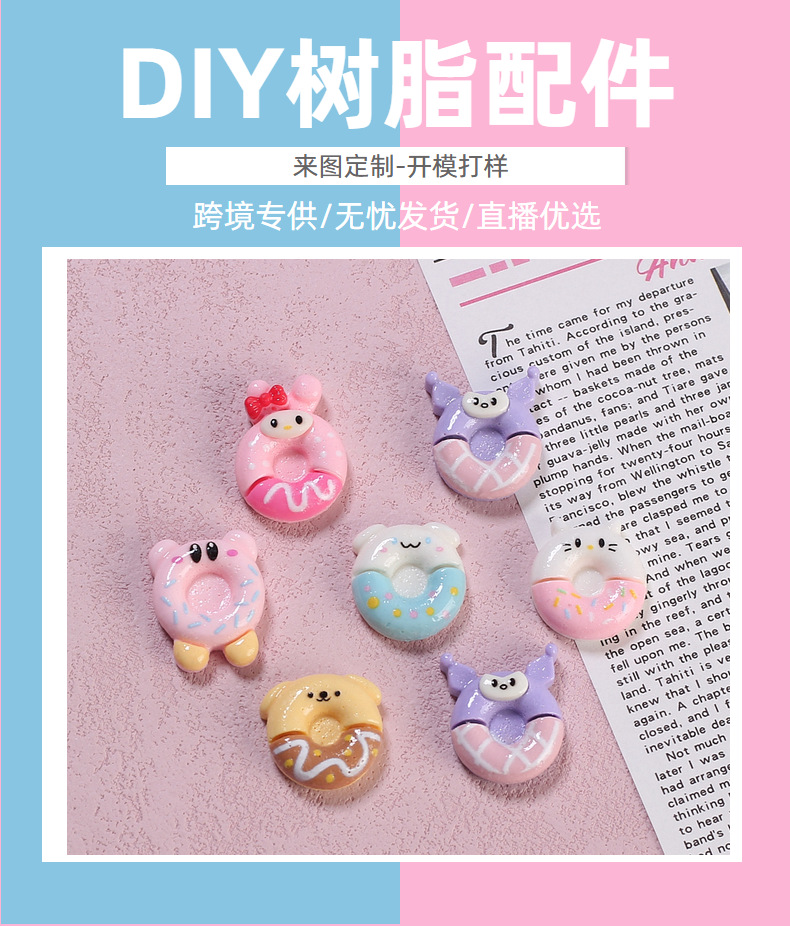 수지 액세서리 수제 DIY 구멍 신발 버클 헤어핀 크림 접착제 보석 소재 만화 야옹 도넛 식품 놀이스토어 가기