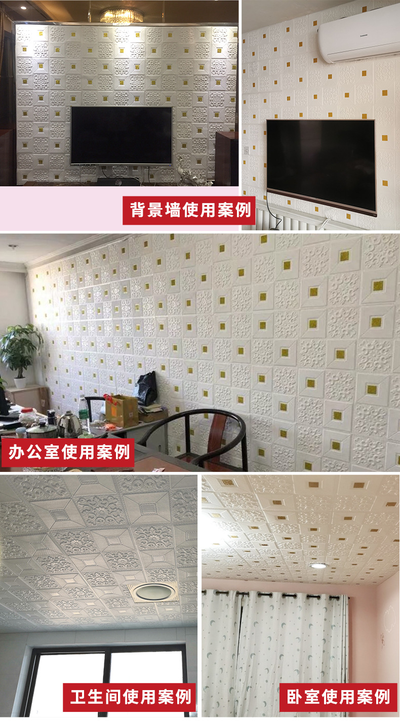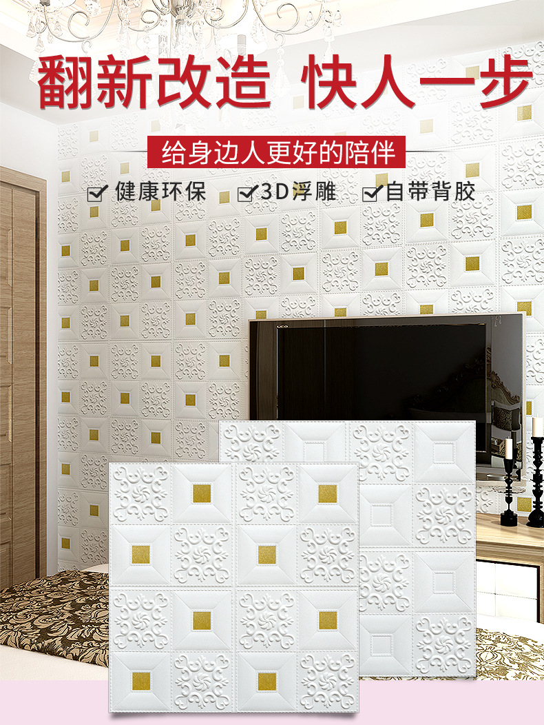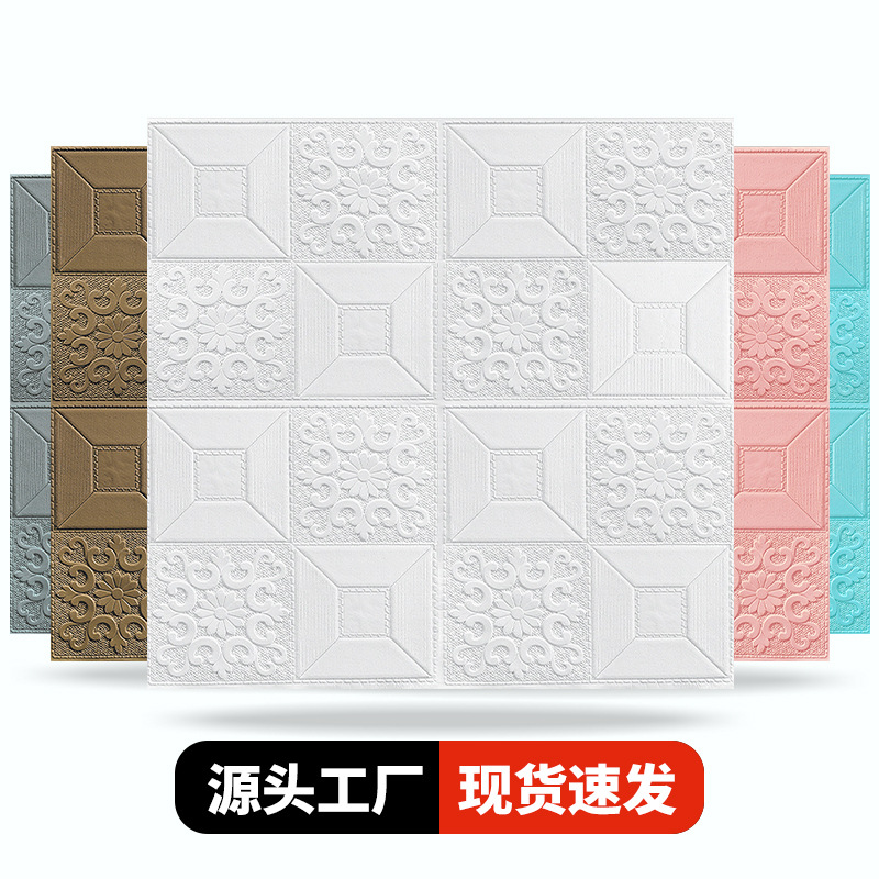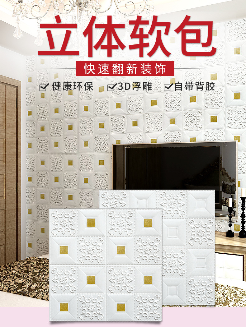 3D 벽 스티커 자체 접착 벽지 벽지 침실 천장 폼 소프트 백 거실 배경 장식 스티커스토어 가기