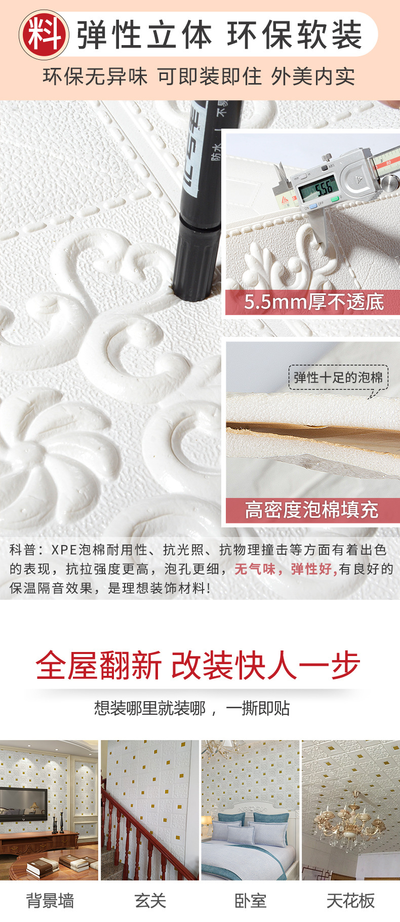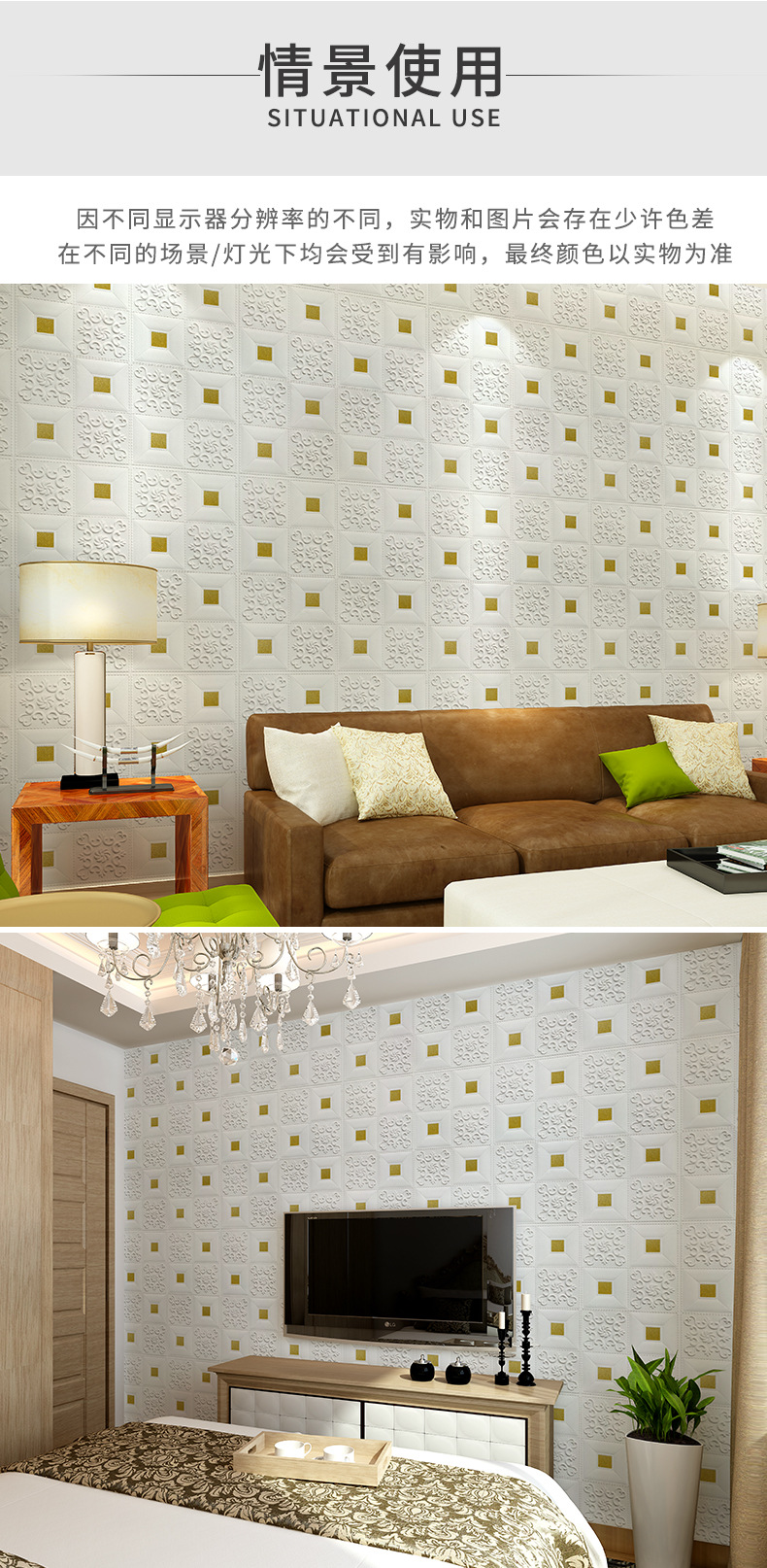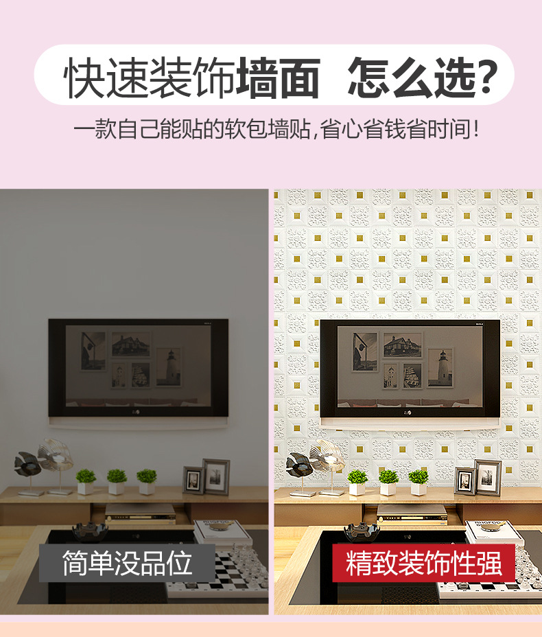 3D 벽 스티커 자체 접착 벽지 벽지 침실 천장 폼 소프트 백 거실 배경 장식 스티커스토어 가기