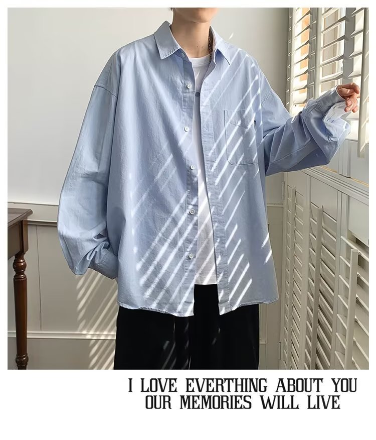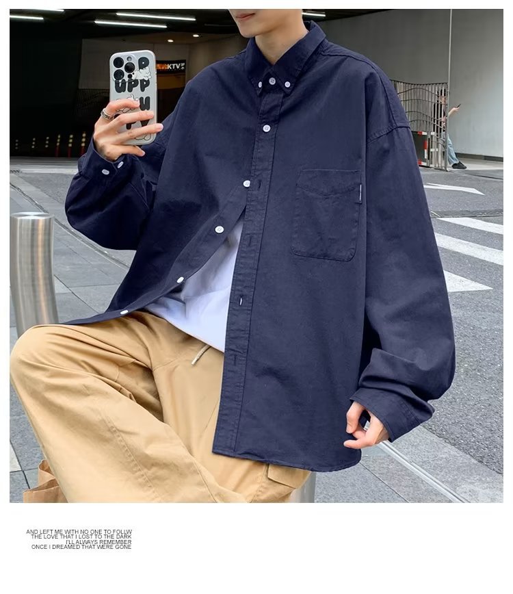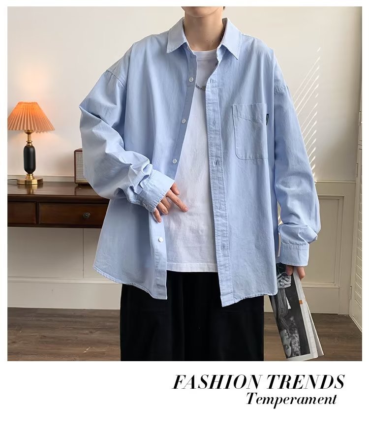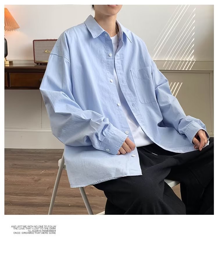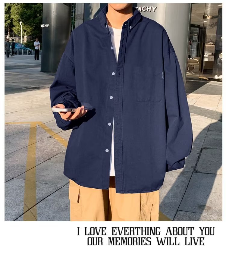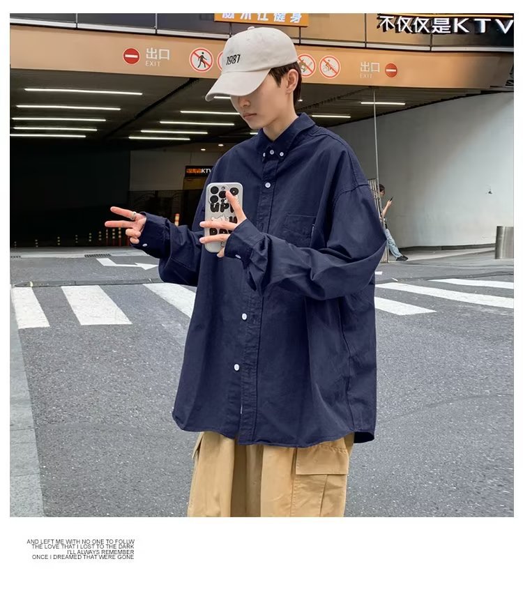 파란 긴 소매 셔츠 남자의 일본 유행 예술적 봄 유행 모든 경기 느슨한 간단한 캐주얼 셔츠 재킷스토어 가기