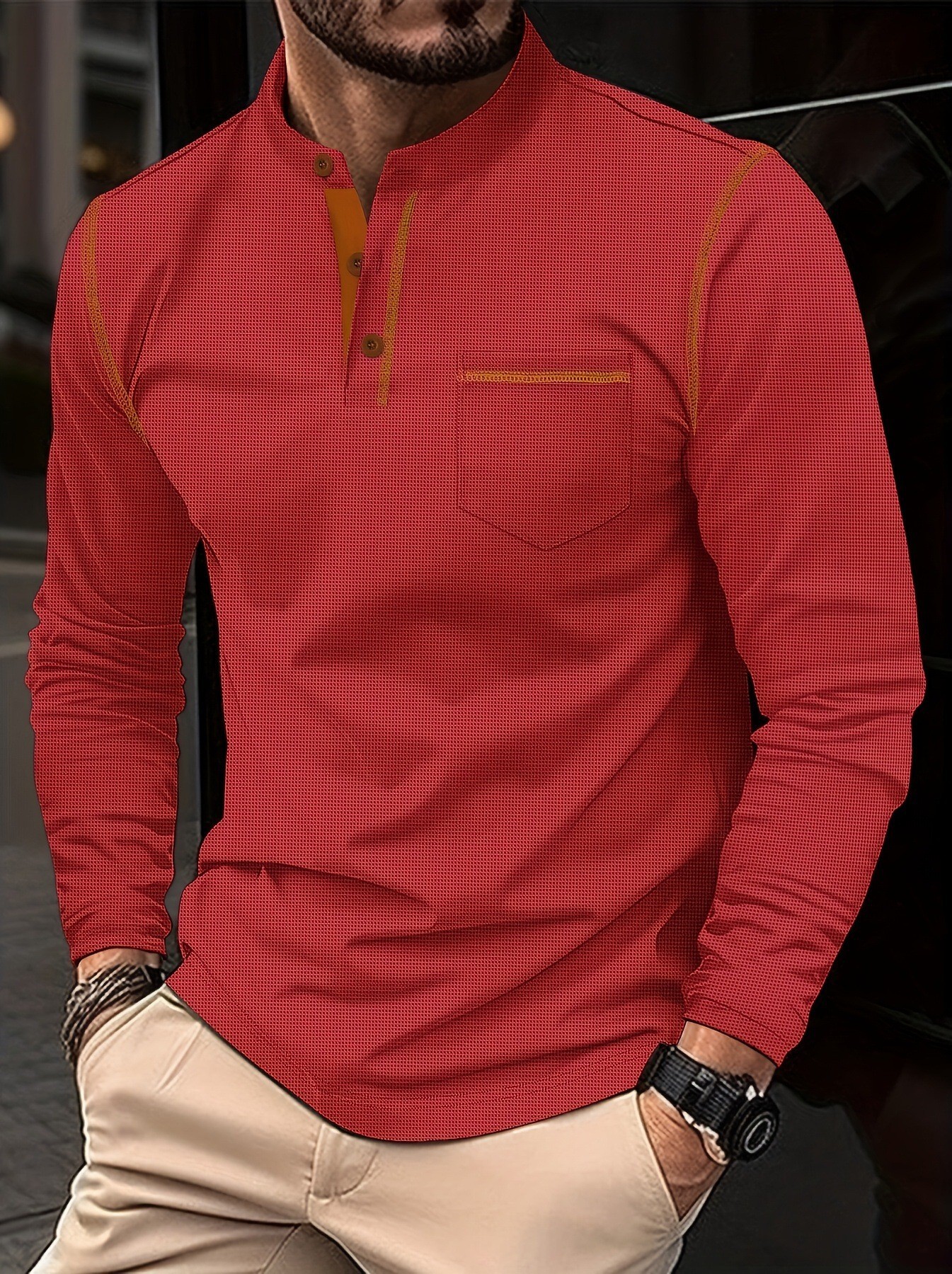긴 소매 Houndstooth 캐주얼 골프 폴로 셔츠 유럽과 미국 남자 여름 남자의 얇은 단색 긴 소매