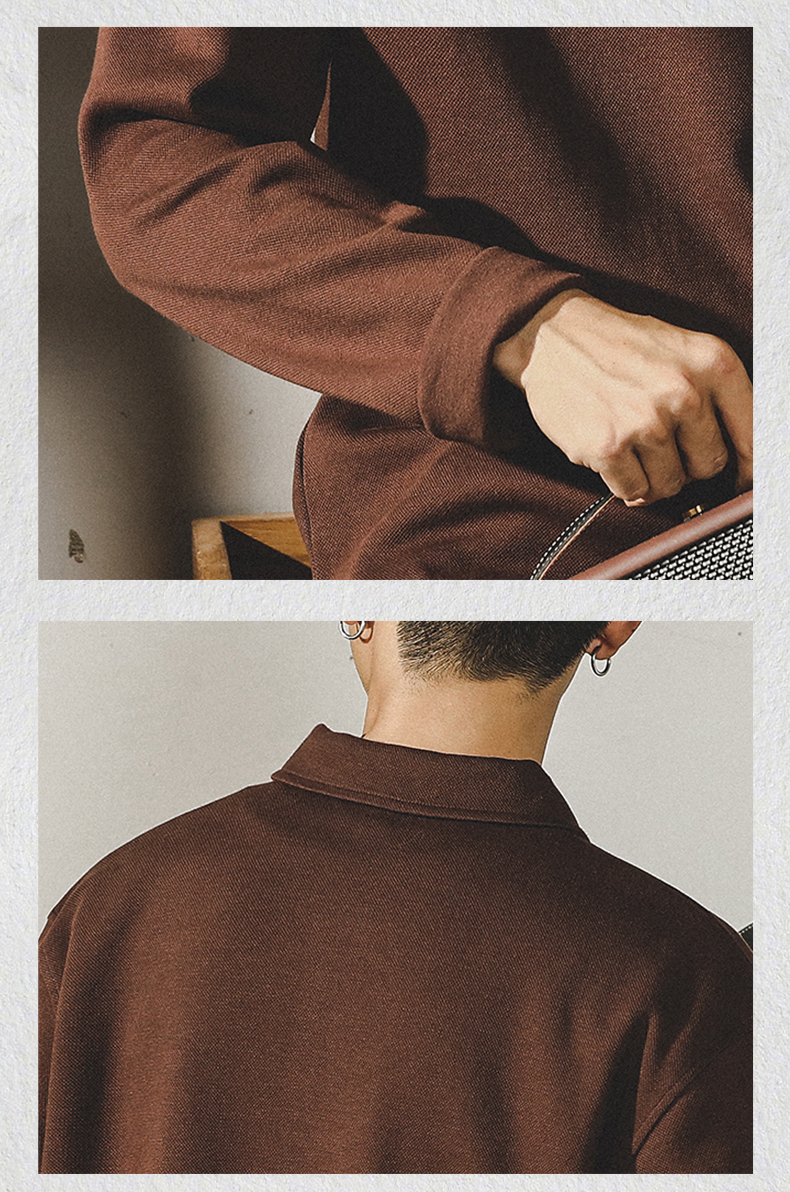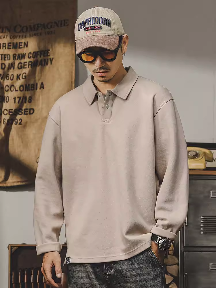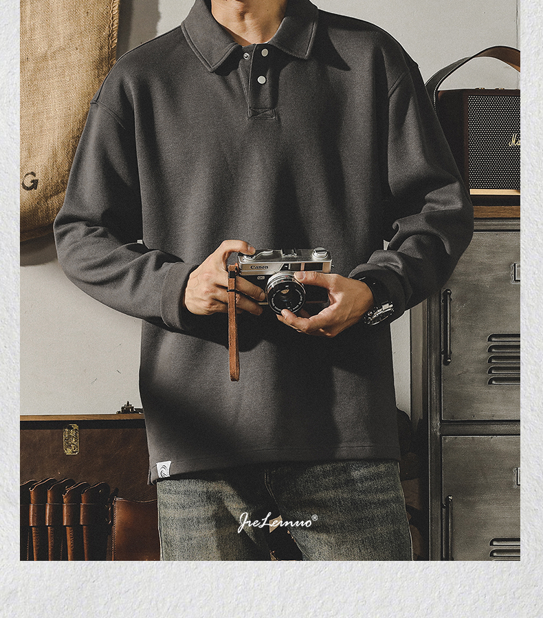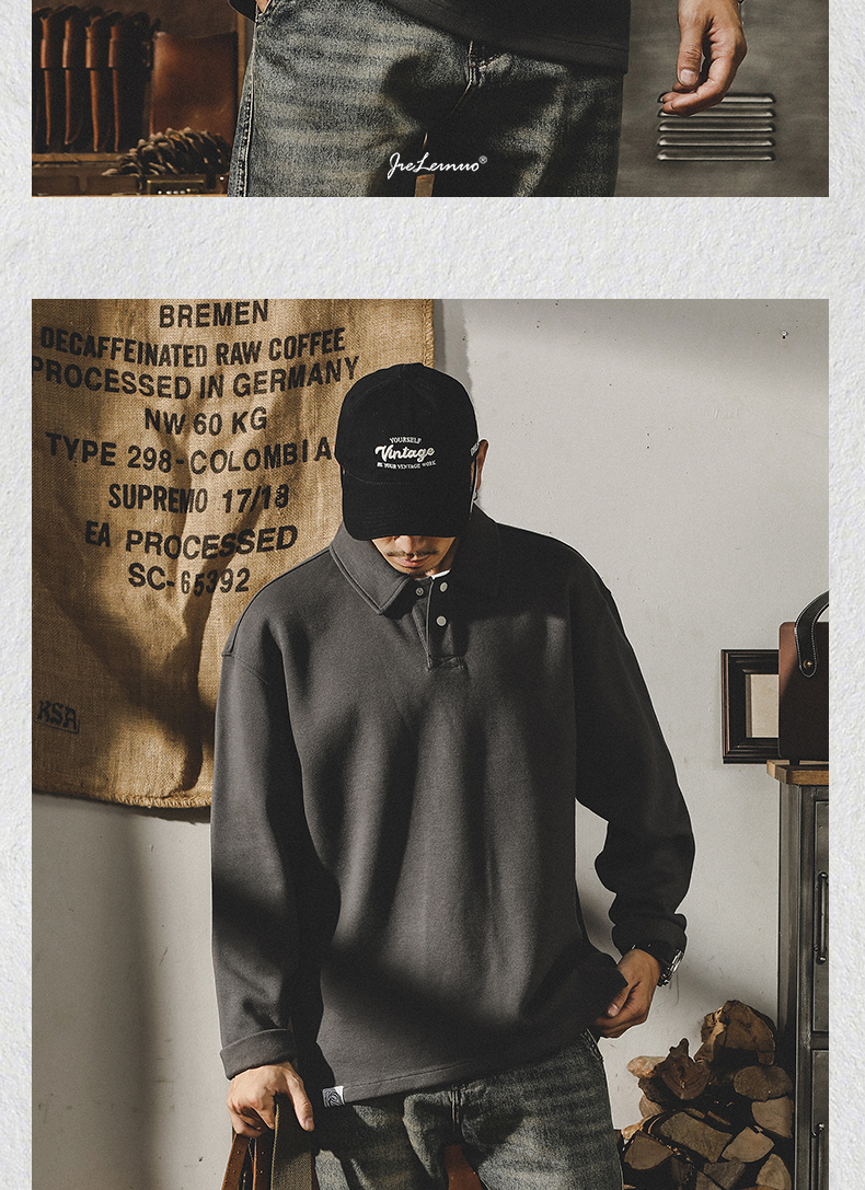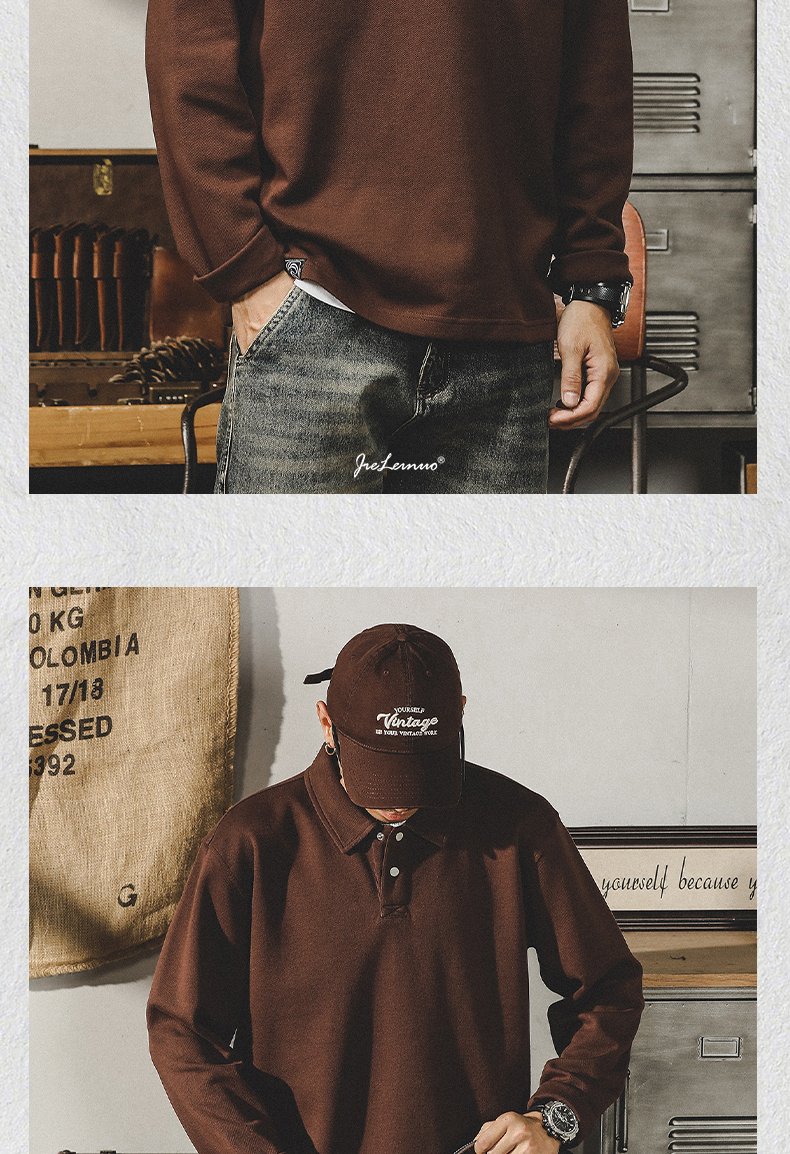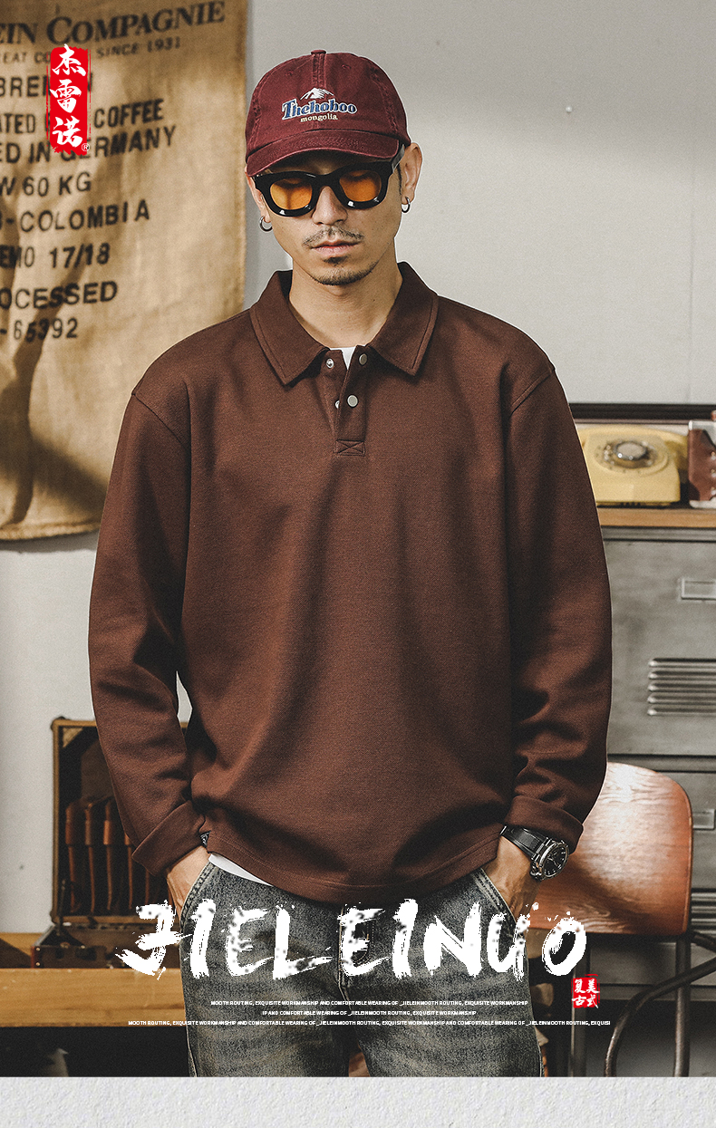 250g 무거운 진주면 POLO 셔츠 남성 긴 소매 봄과 가을 미국 복고풍 오래된 돈 바람 간단한 느슨한 티셔츠