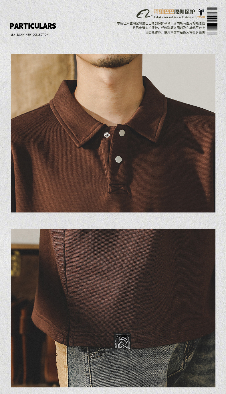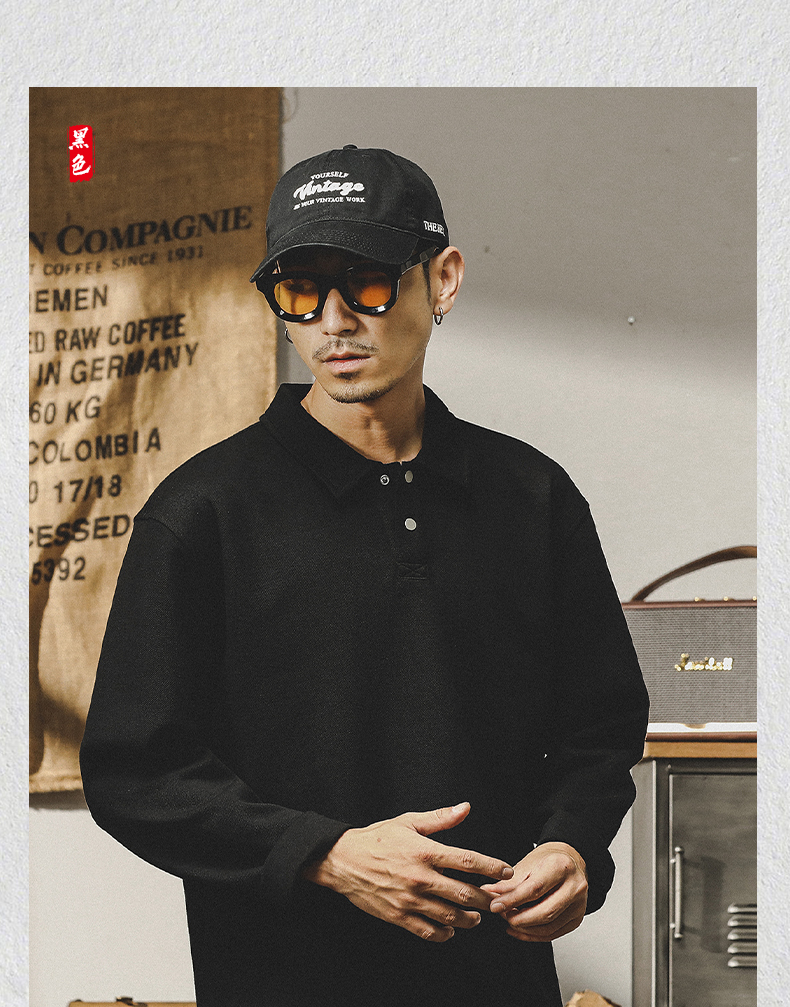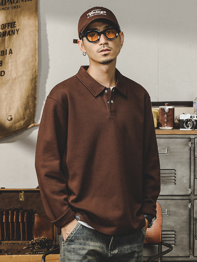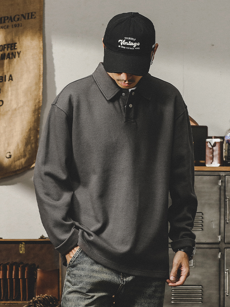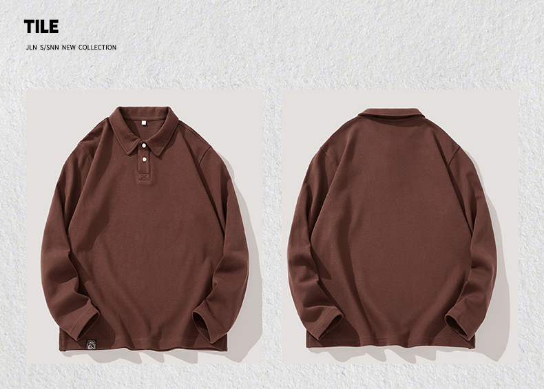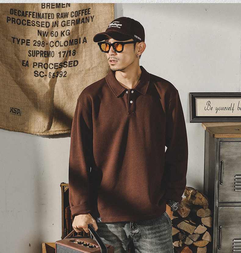250g 무거운 진주면 POLO 셔츠 남성 긴 소매 봄과 가을 미국 복고풍 오래된 돈 바람 간단한 느슨한 티셔츠