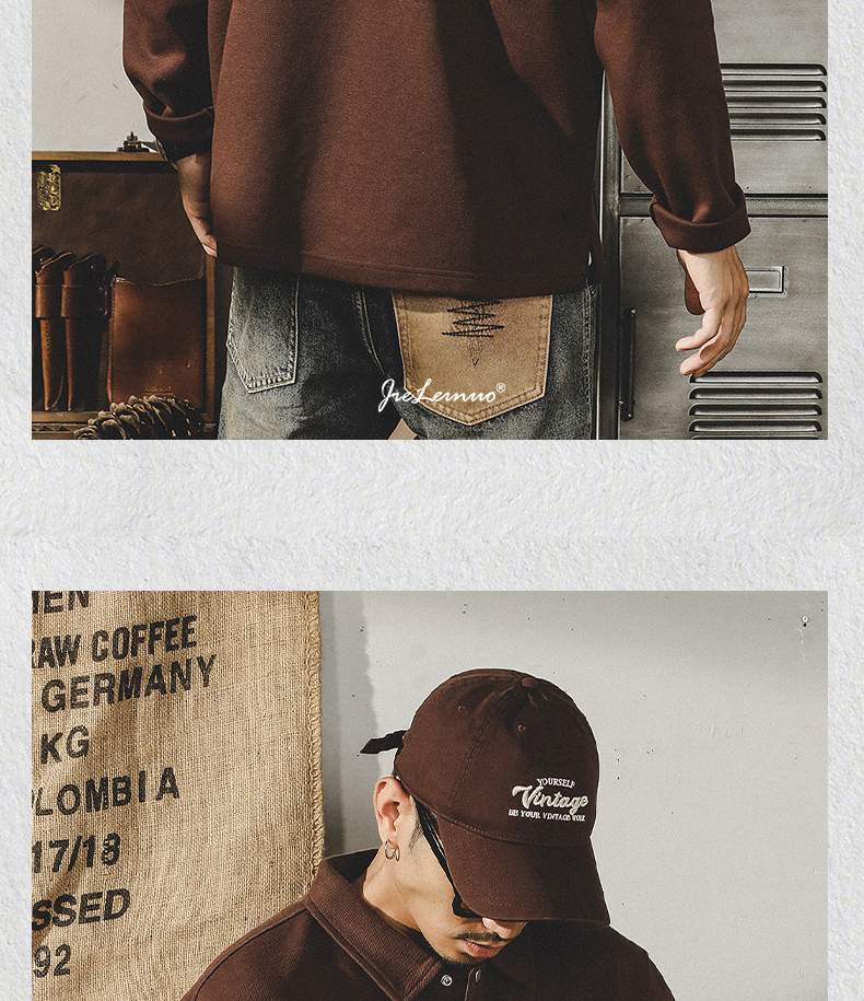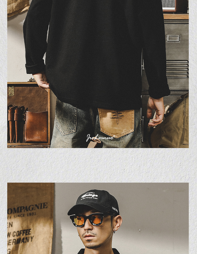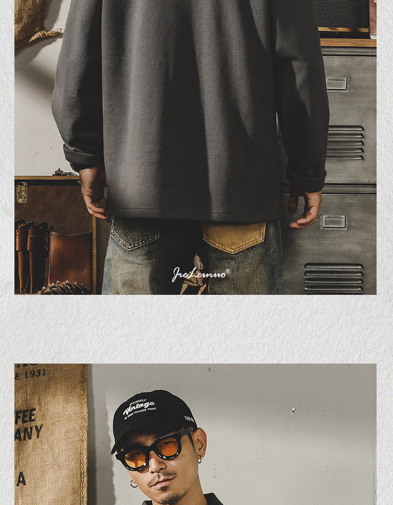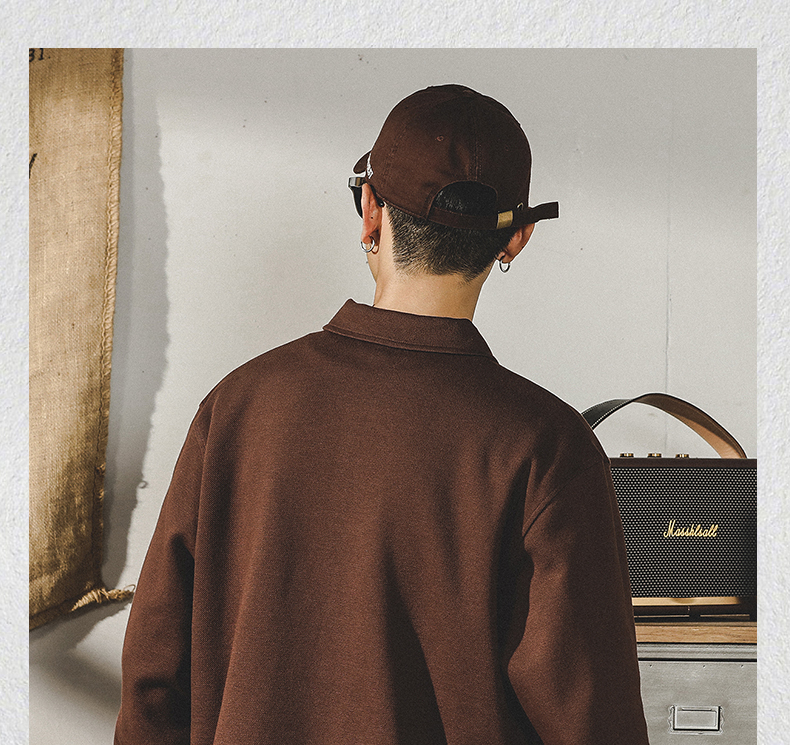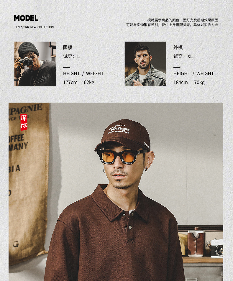 250g 무거운 진주면 POLO 셔츠 남성 긴 소매 봄과 가을 미국 복고풍 오래된 돈 바람 간단한 느슨한 티셔츠스토어 가기