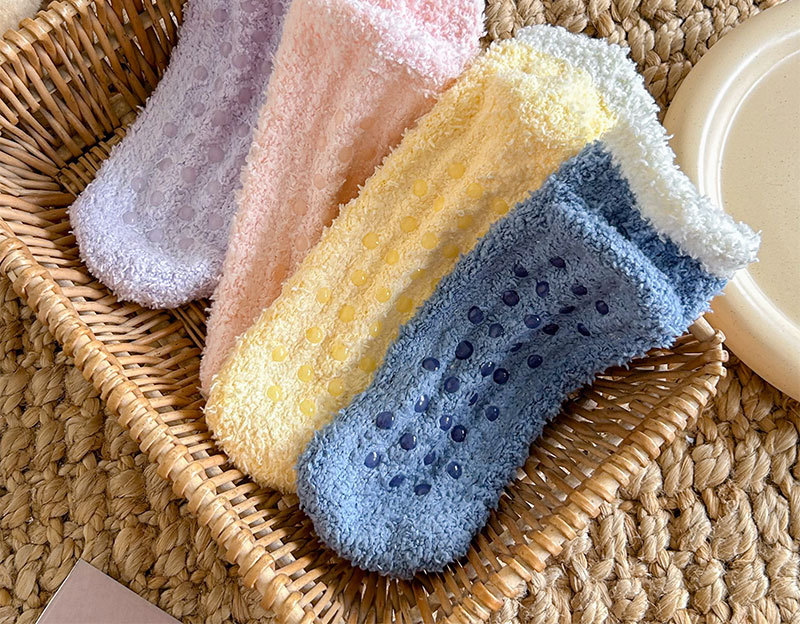 새로운 두꺼운 따뜻한 디스펜싱 산호 양털 여성용 양말 가을과 겨울 가정 수면 양말 캐주얼 바닥 양말 미끄럼 방지 양말 대외 무역