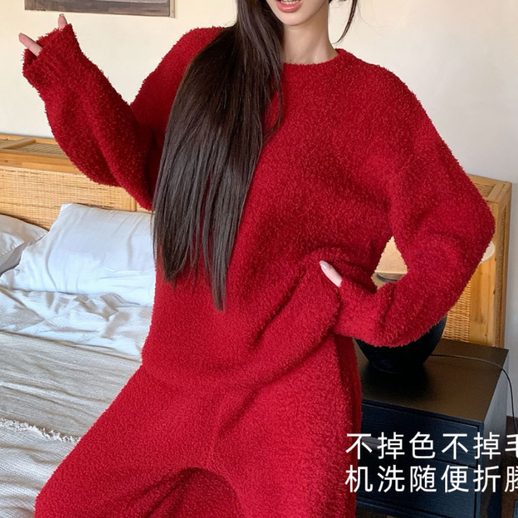 반 벨벳 잠옷 겨울 새로운 아이스크림 컬러 부드러운 스트레칭 홈 의류 여성 두꺼운 세트 입을 수 있습니다스토어 가기