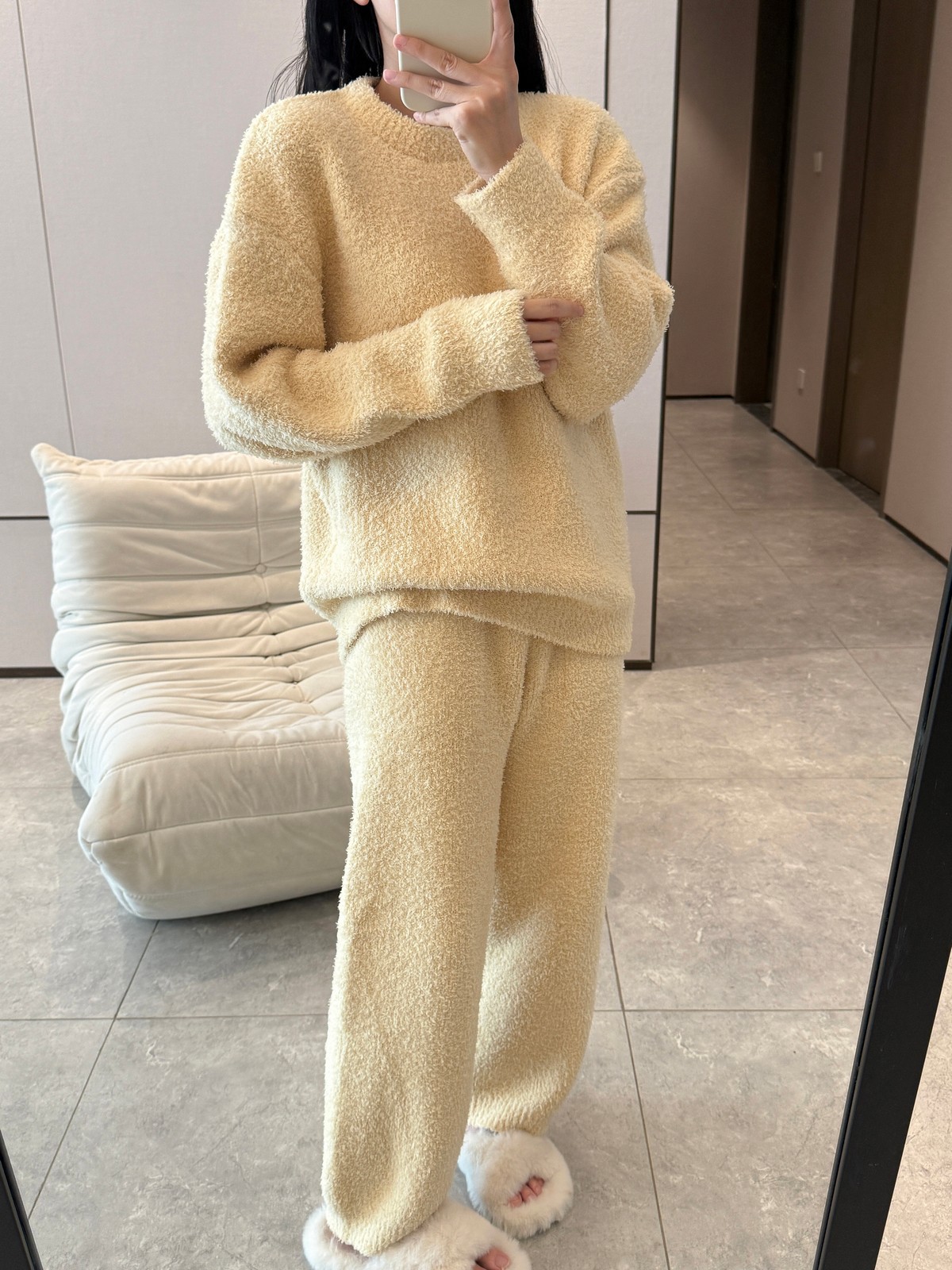 반 벨벳 잠옷 겨울 새로운 아이스크림 컬러 부드러운 스트레칭 홈 의류 여성 두꺼운 세트 입을 수 있습니다