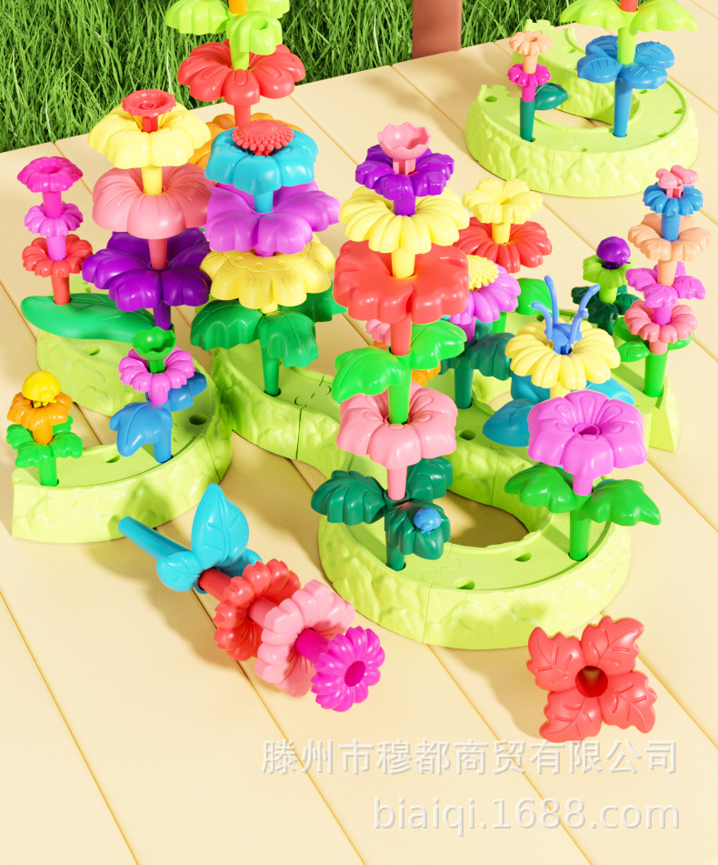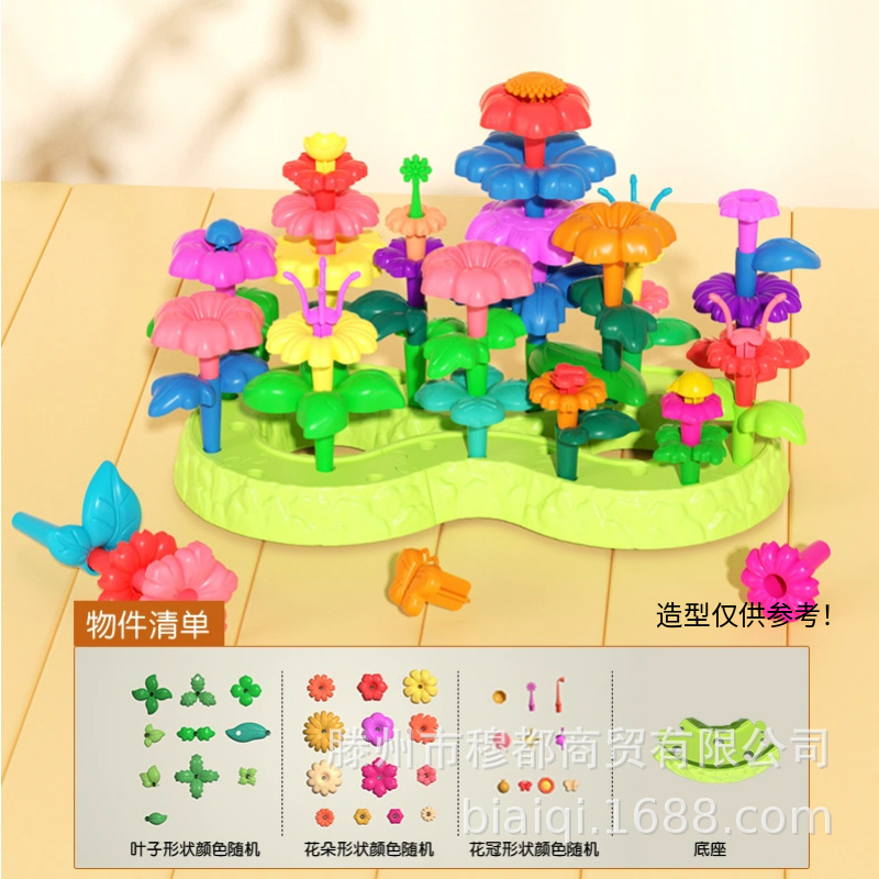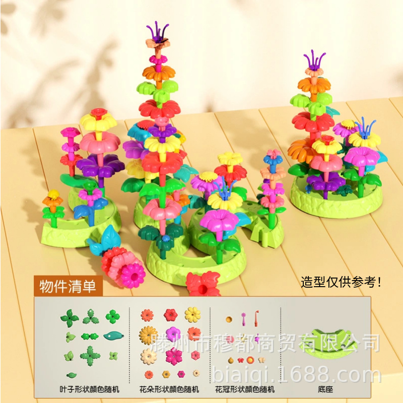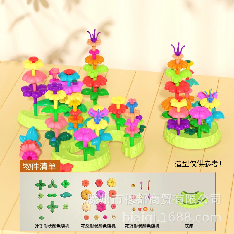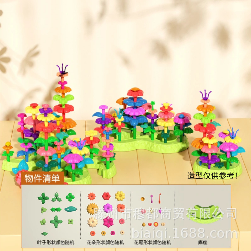 소년과 소녀를위한 Biaiqi 꽃꽂이 퍼즐 빌딩 블록 조립 diy 작은 꽃밭 큰 곡물 장난감 선물