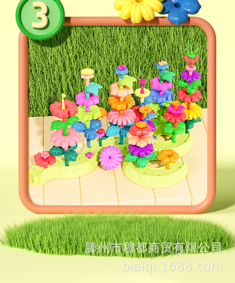 소년과 소녀를위한 Biaiqi 꽃꽂이 퍼즐 빌딩 블록 조립 diy 작은 꽃밭 큰 곡물 장난감 선물스토어 가기