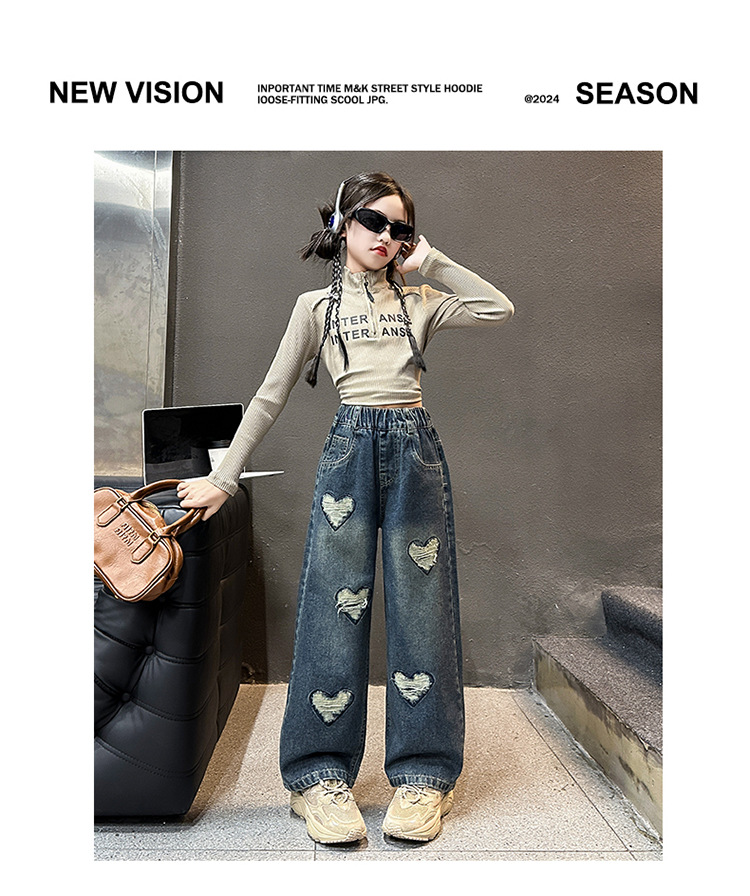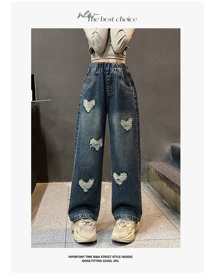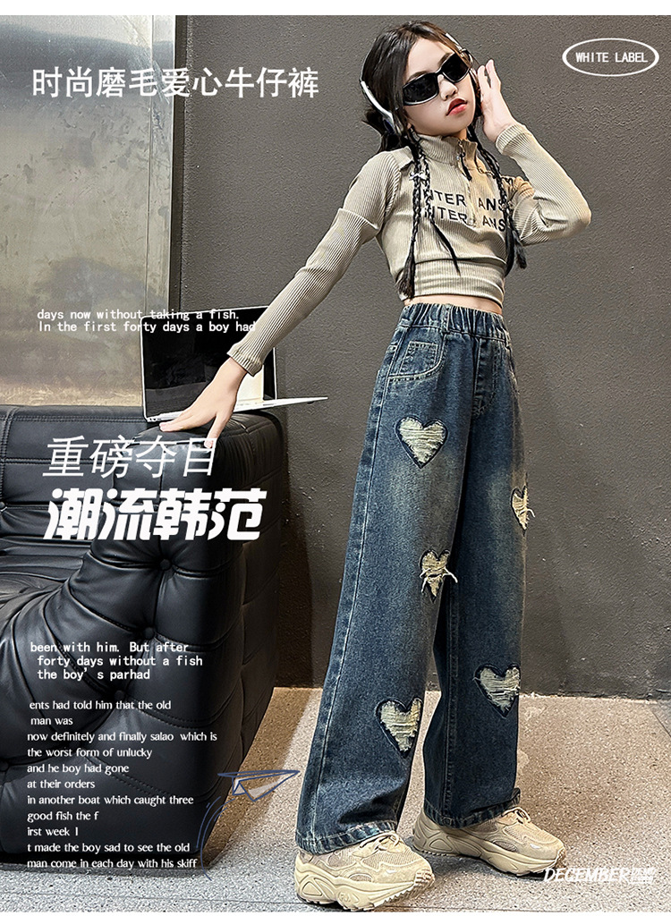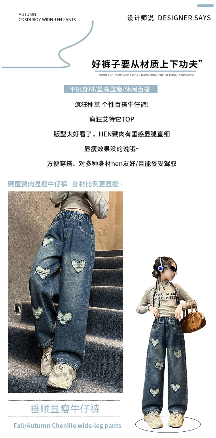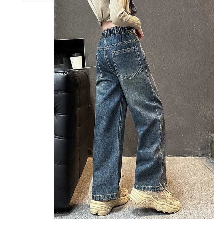 여아 청바지 2025 봄 신상 중대형 아동용 와이드 팬츠 봄, 가을 아동복 여아 캐주얼 바지 유행스토어 가기