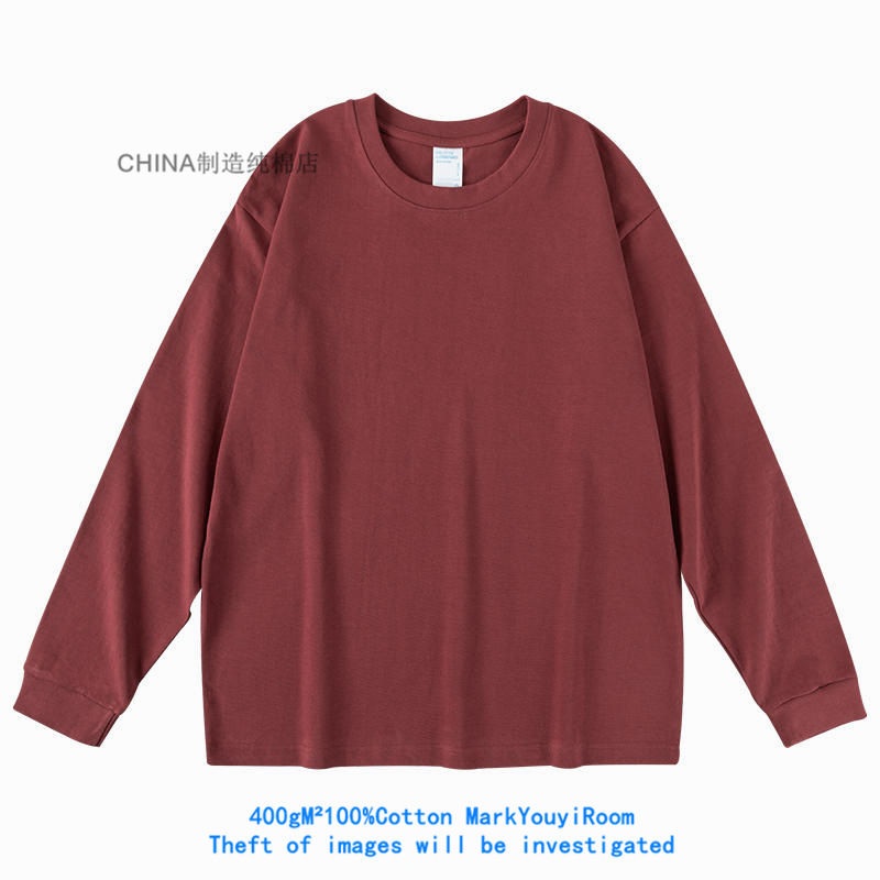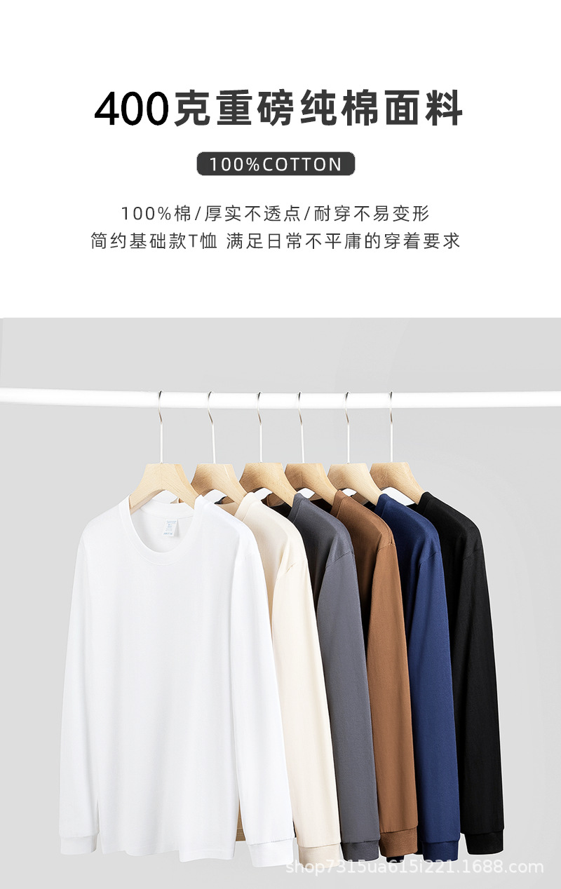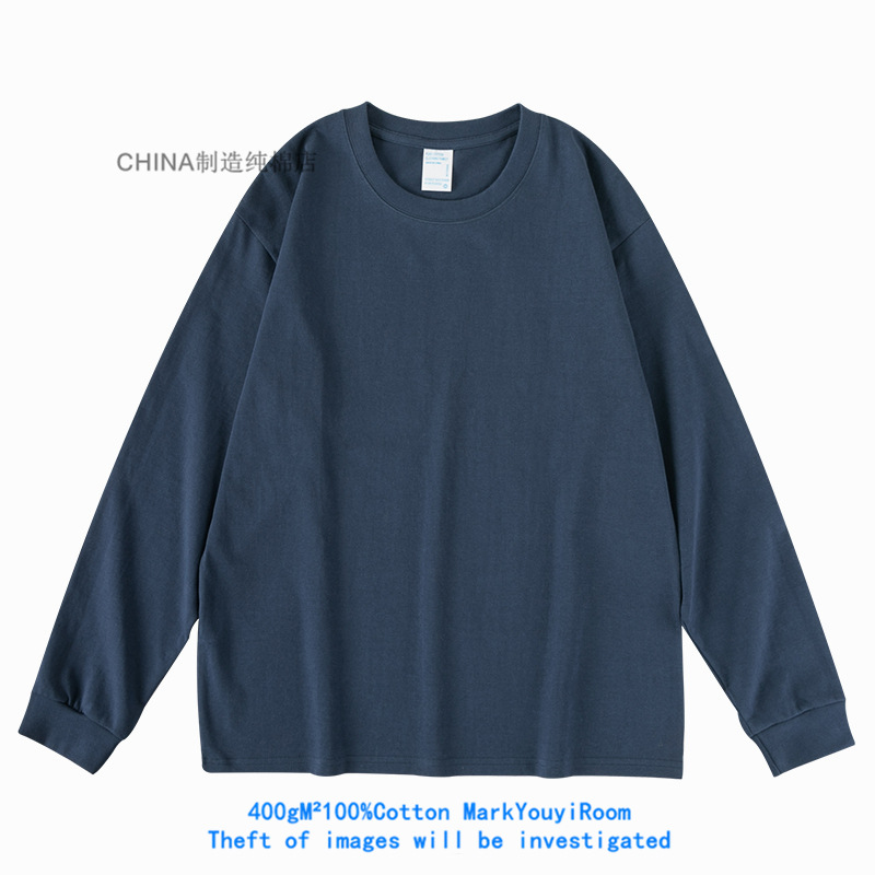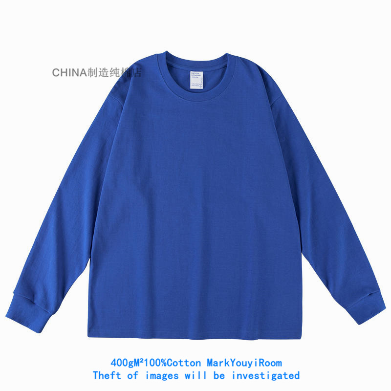 클라인 블루 300g 무거운 신장 면화 셔츠 남성면 긴 소매 티셔츠 가을과 겨울 두껍고 불투과성 내복 여성용스토어 가기