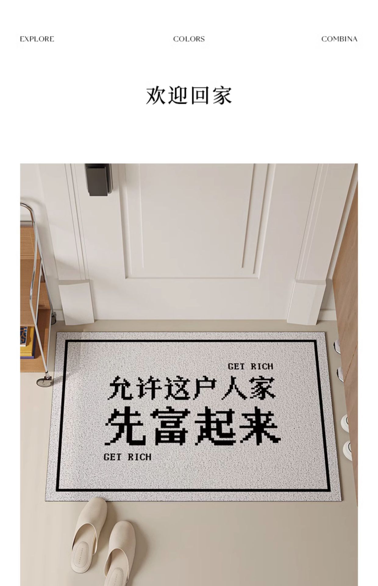 창조적 인 성격 텍스트 입구 문 바닥 매트 문 먼지 방지 PVC 실크 링 바닥 매트 문지름 문지름 닦기 진흙 안티 슬립 발 매트