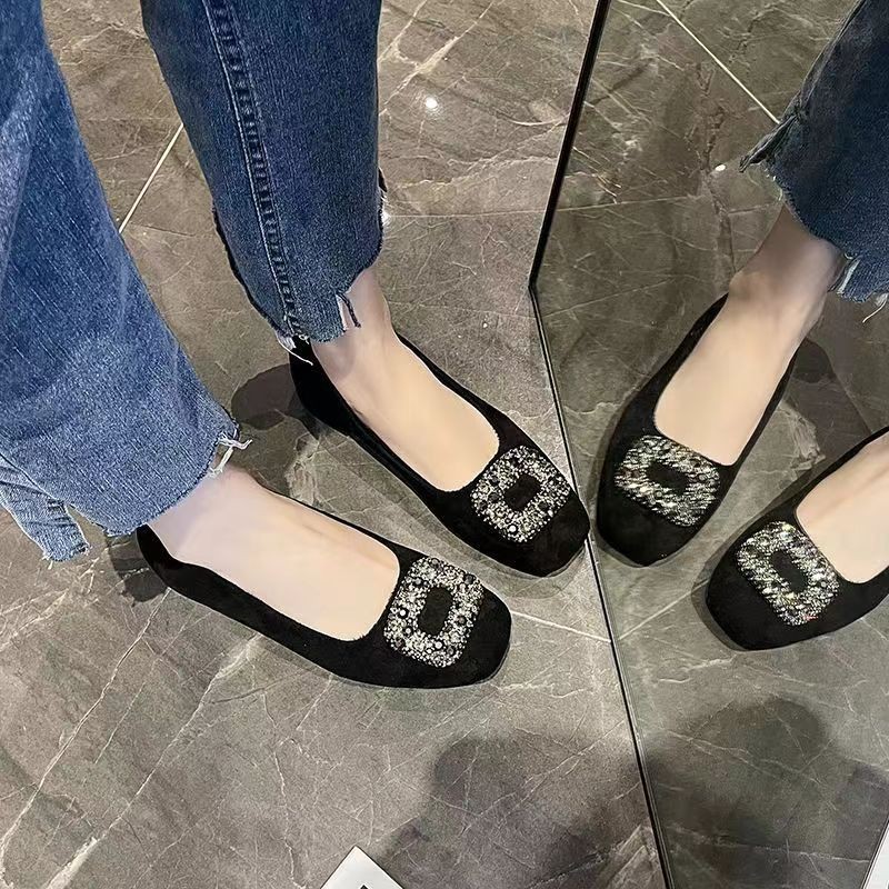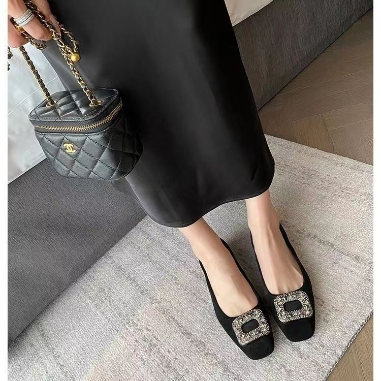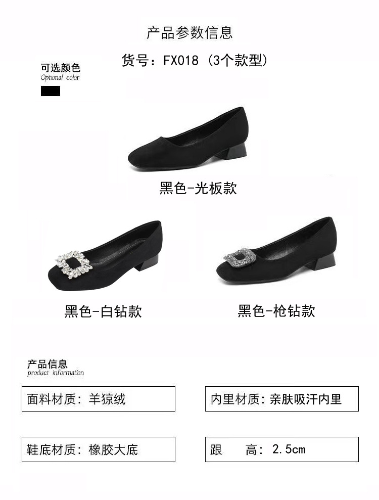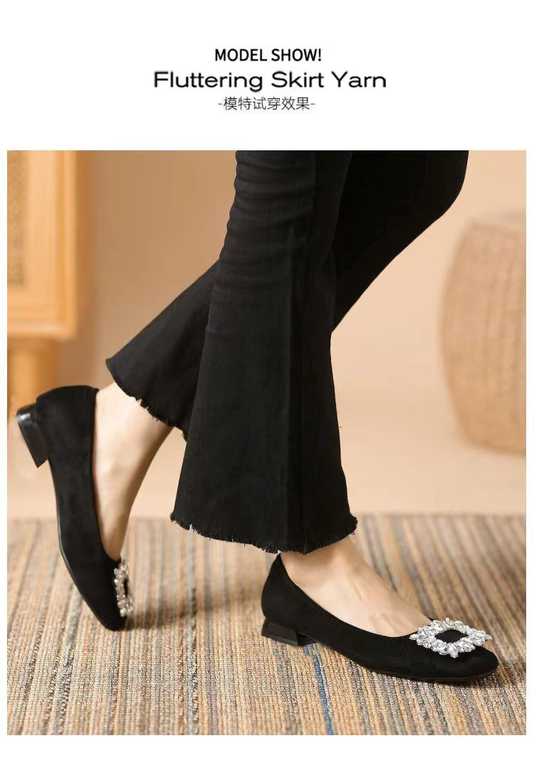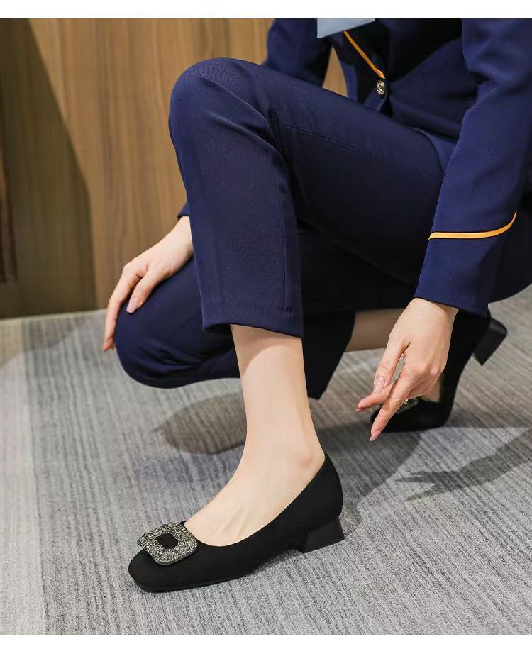 프렌치 스타일의 라인스톤 굽이 두꺼운 고급 여성용 신발 2025년 신상 여름 스퀘어토 얕은 입구 우아한 하이힐 출퇴근용 신발스토어 가기