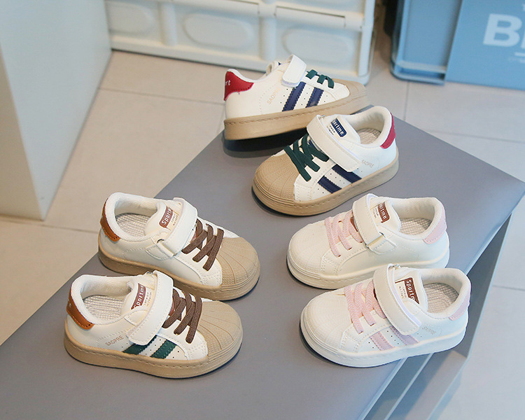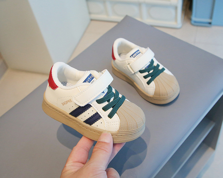 어린이 운동화 2024 봄과 가을 새로운 소년 신발 어린이 및 소녀 독일 훈련 신발 아기 로우 탑 보드 신발 흰색 신발스토어 가기