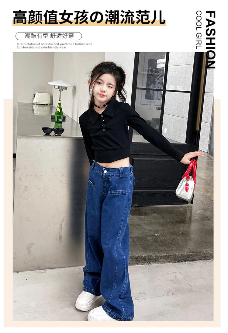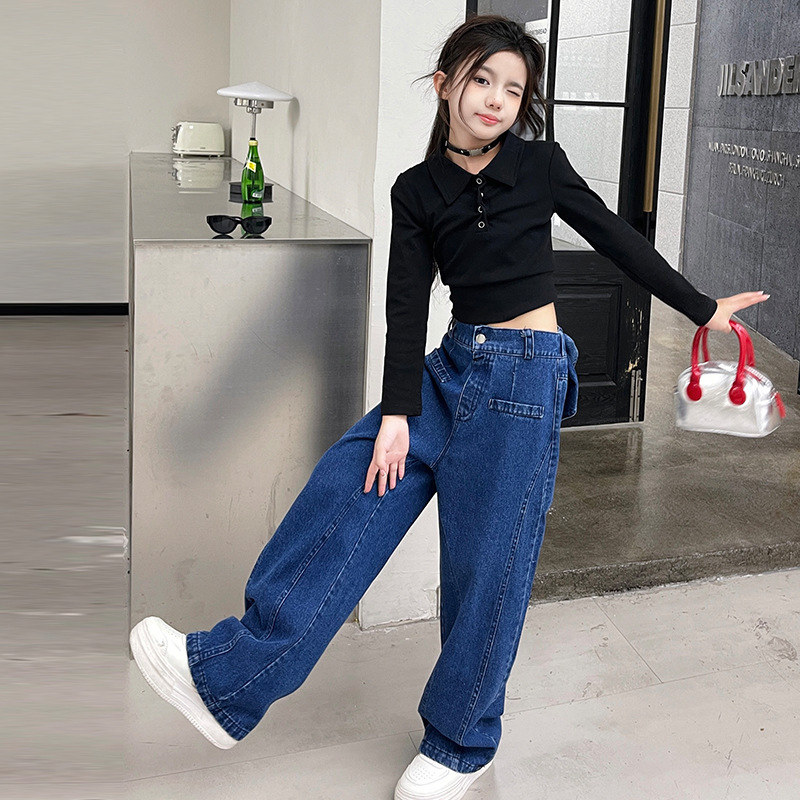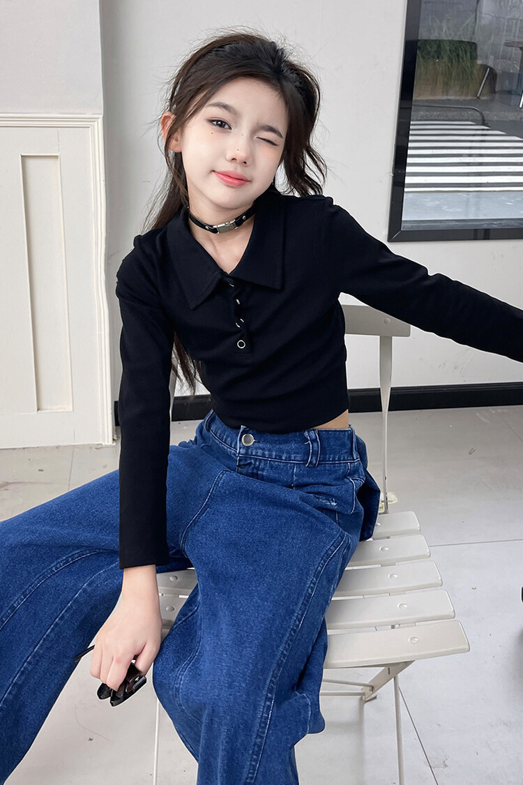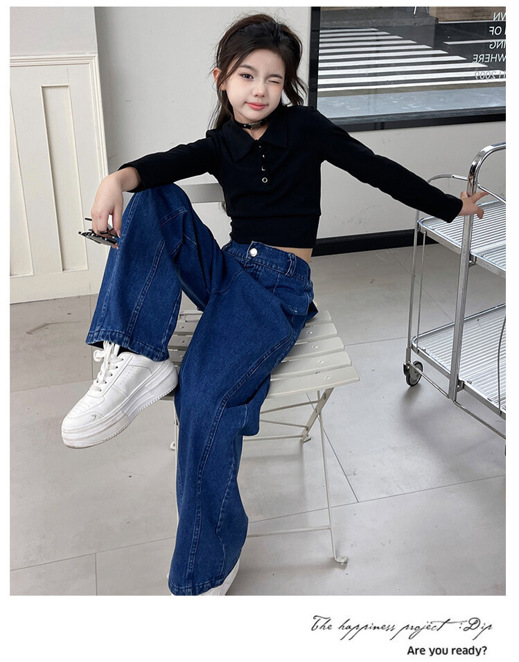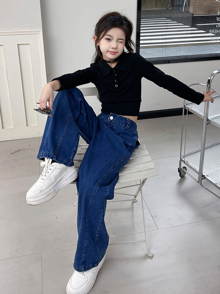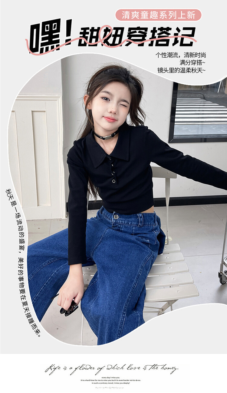소녀들의 봄 · 가을 세트 서양식 POLO 칼라 긴팔베이스 셔츠 슬림핏 올매치 한국식 어린이 데님 바지