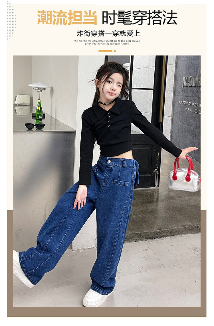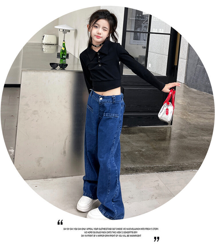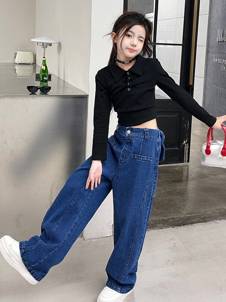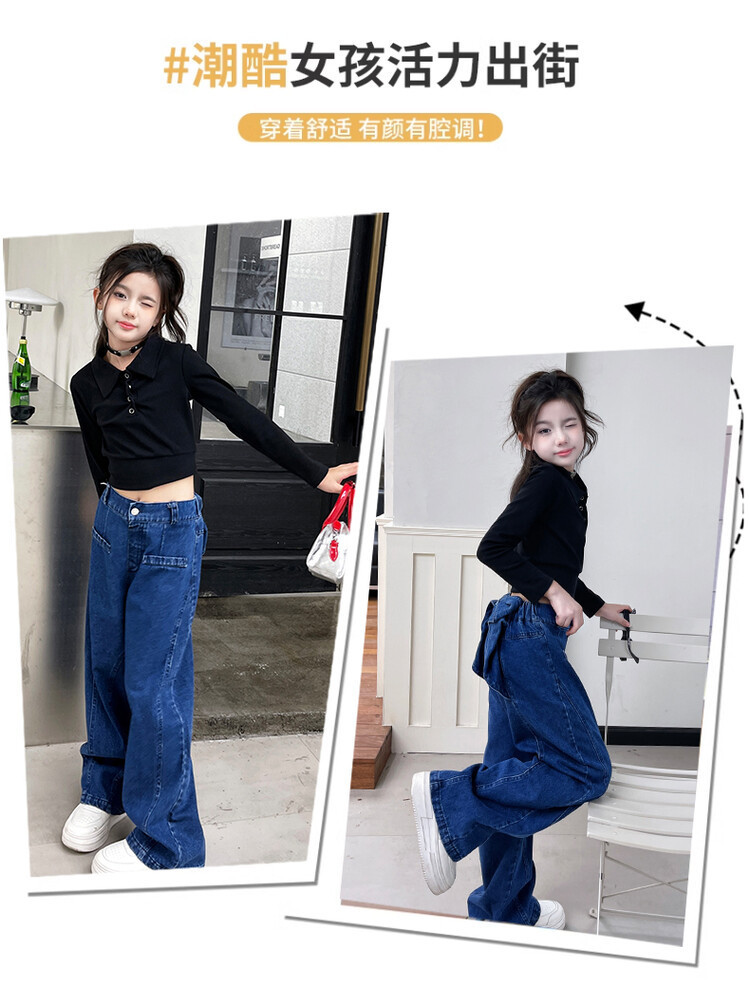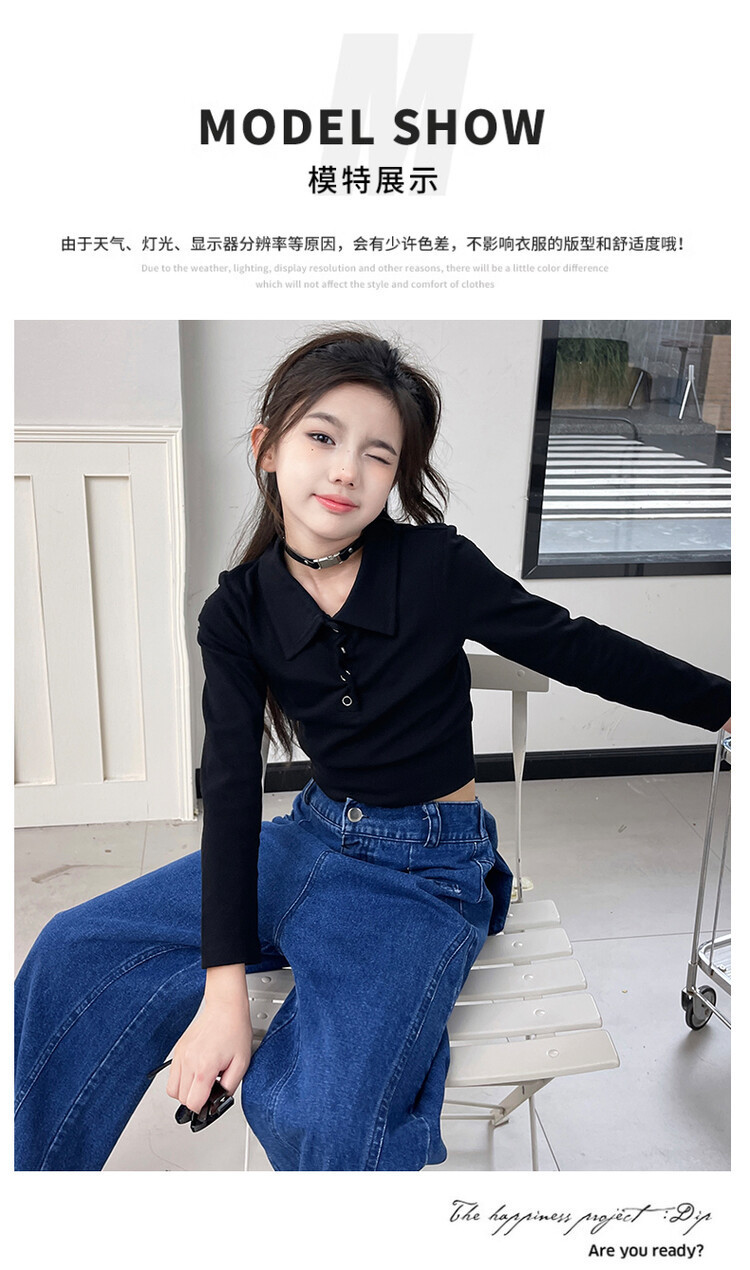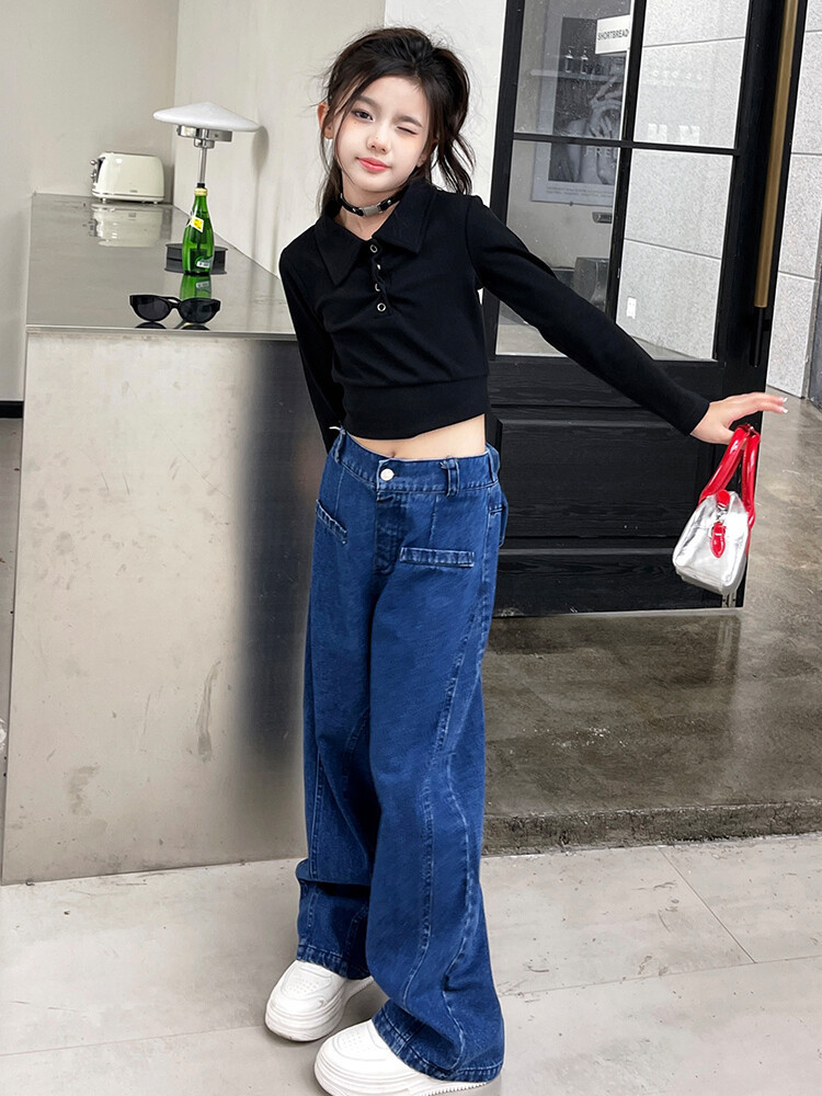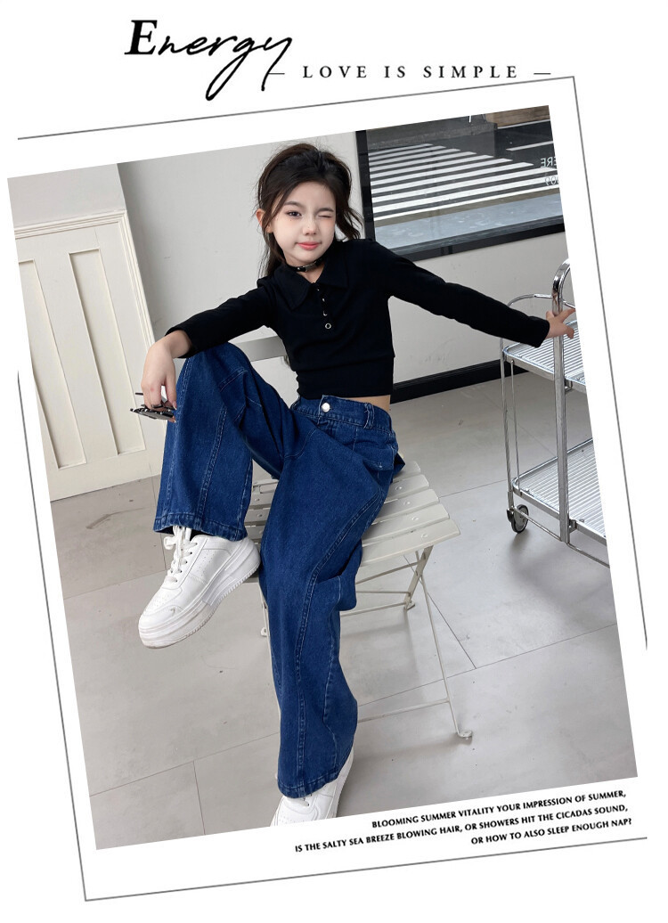 소녀들의 봄 · 가을 세트 서양식 POLO 칼라 긴팔베이스 셔츠 슬림핏 올매치 한국식 어린이 데님 바지
