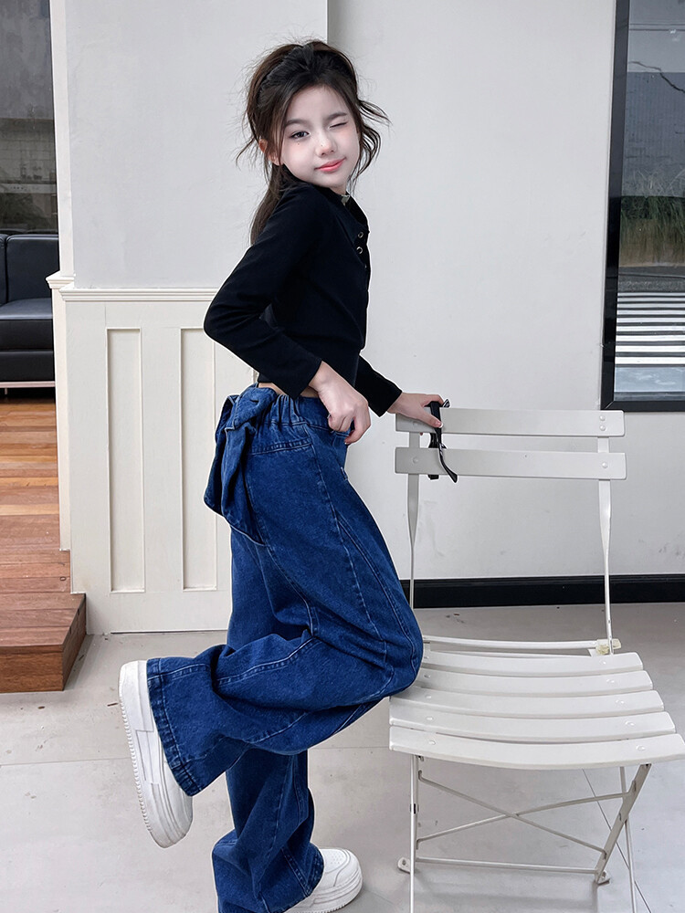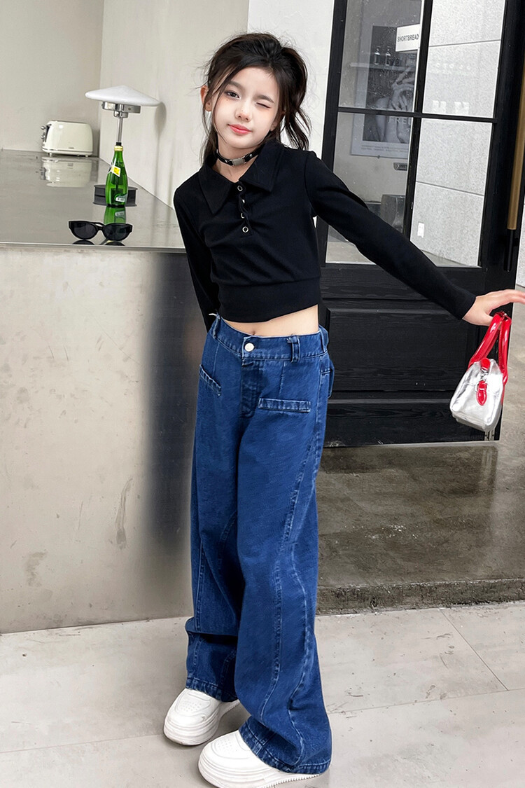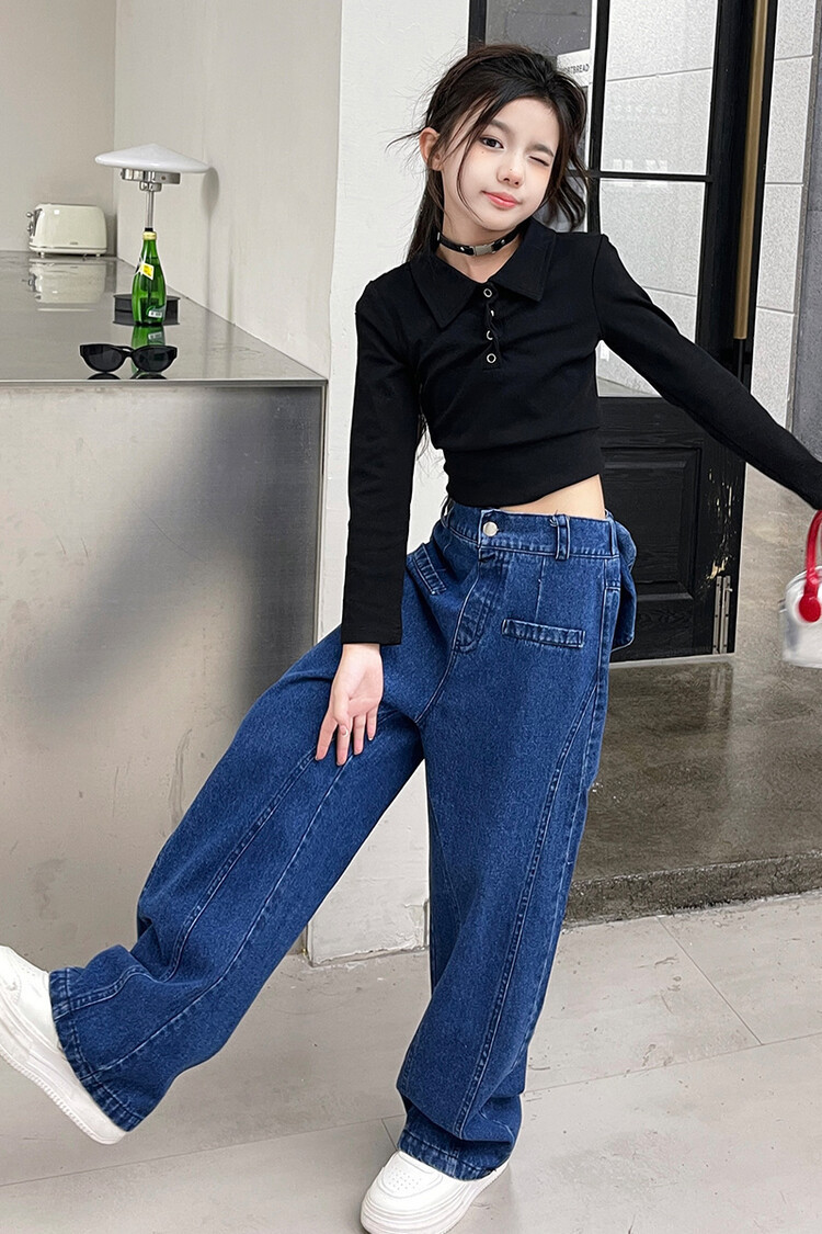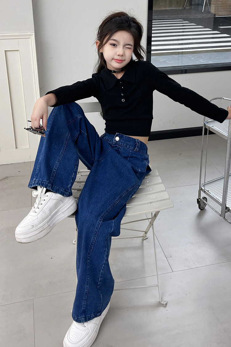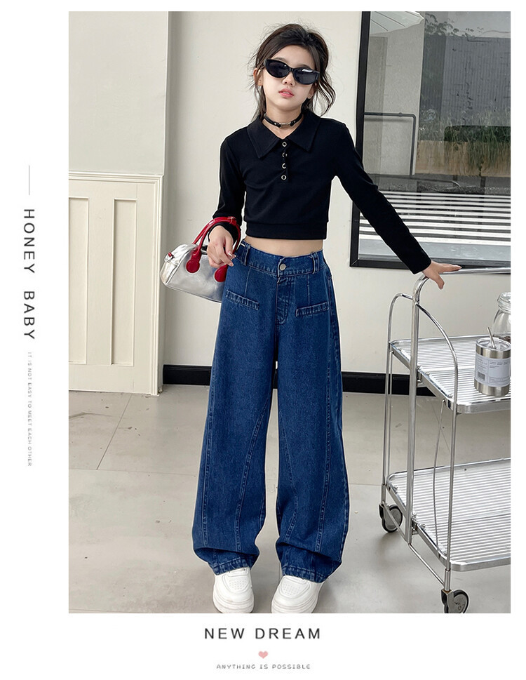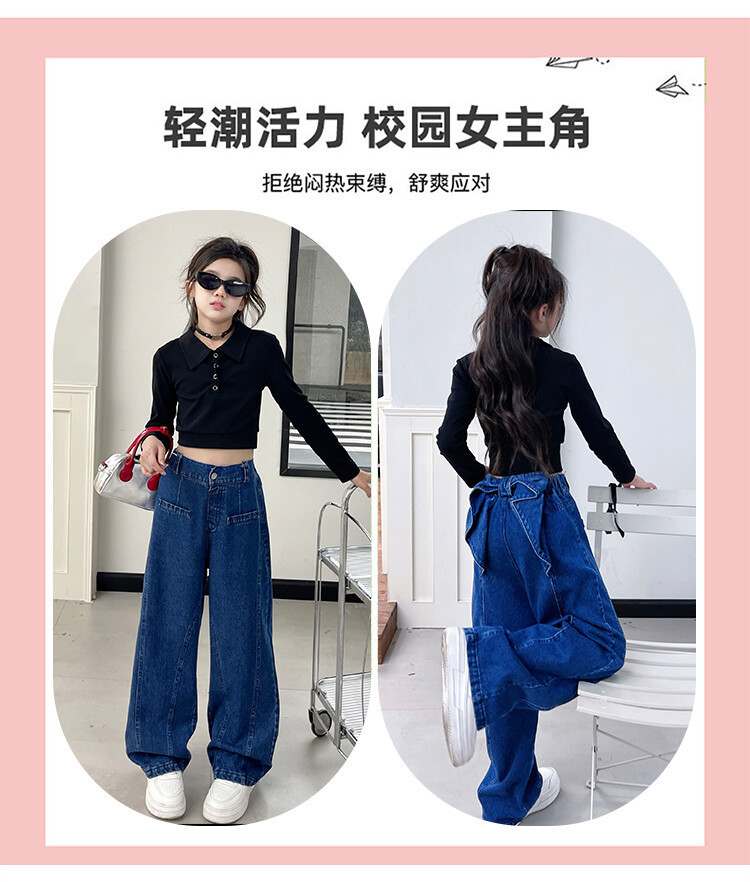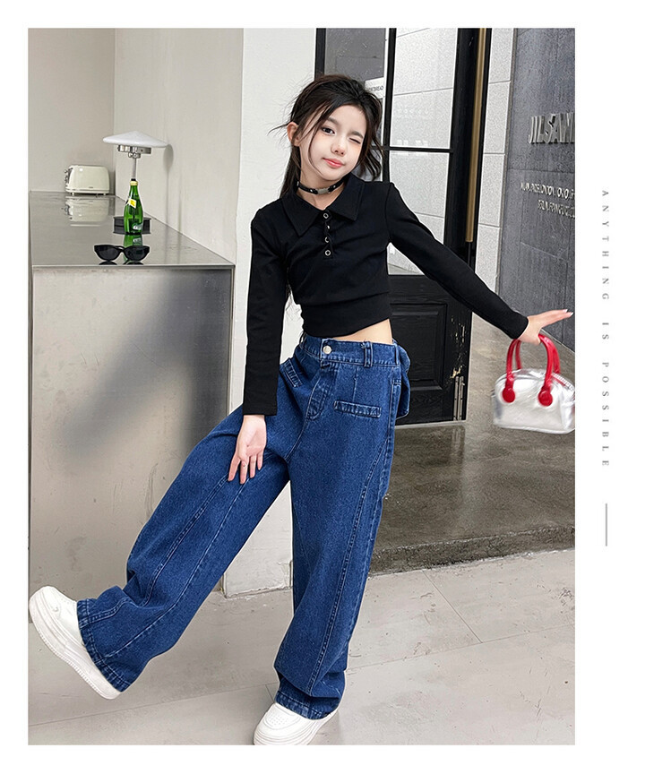소녀들의 봄 · 가을 세트 서양식 POLO 칼라 긴팔베이스 셔츠 슬림핏 올매치 한국식 어린이 데님 바지