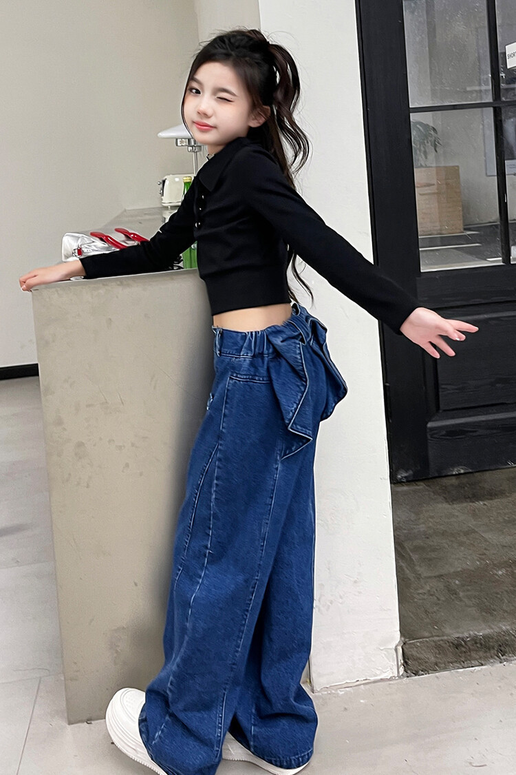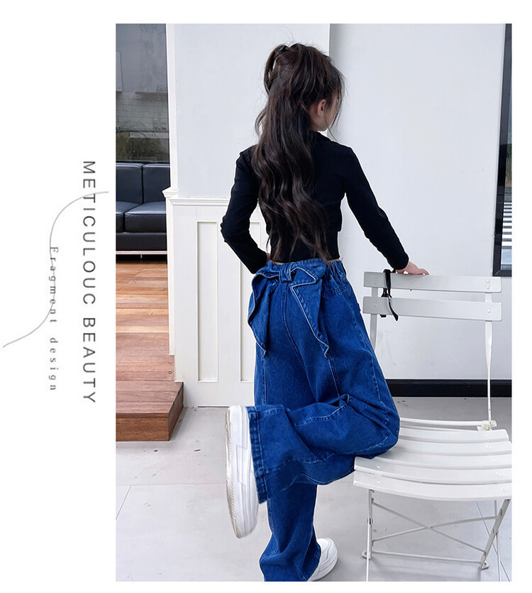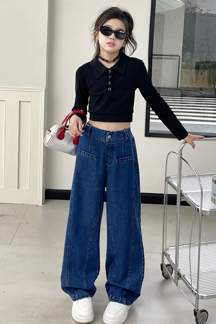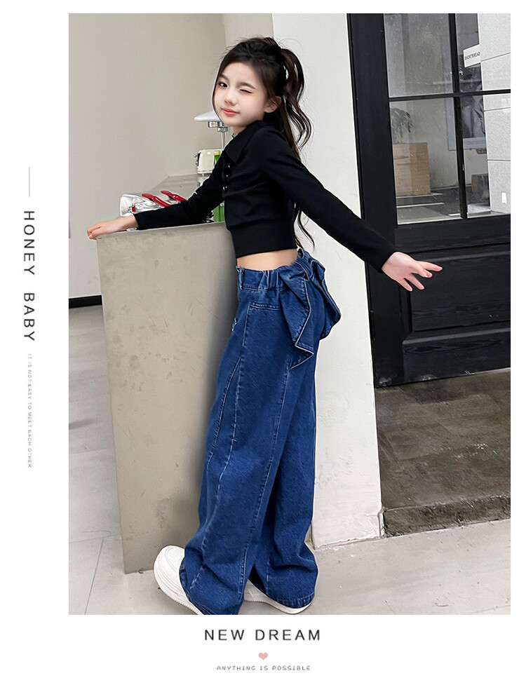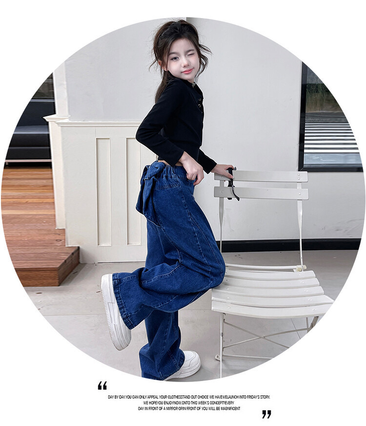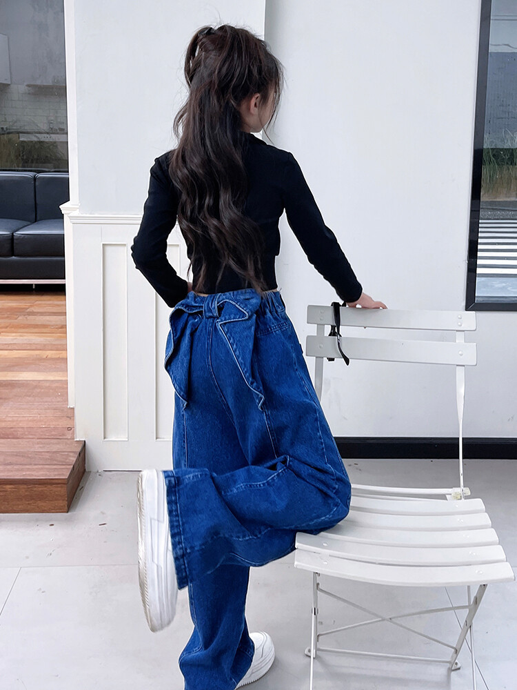 소녀들의 봄 · 가을 세트 서양식 POLO 칼라 긴팔베이스 셔츠 슬림핏 올매치 한국식 어린이 데님 바지