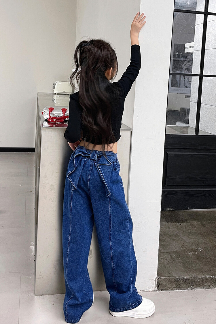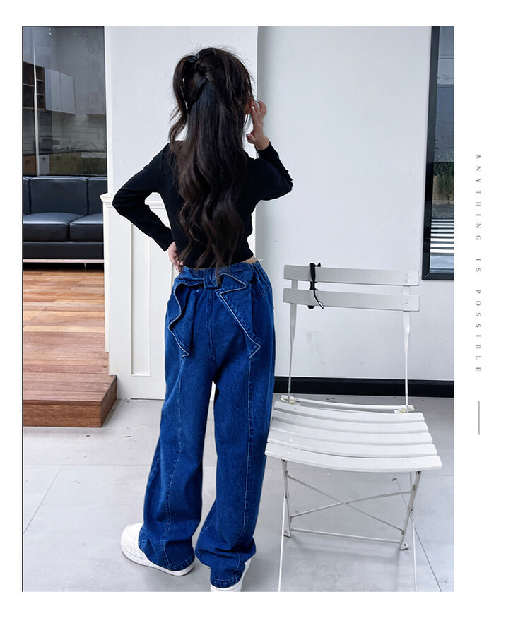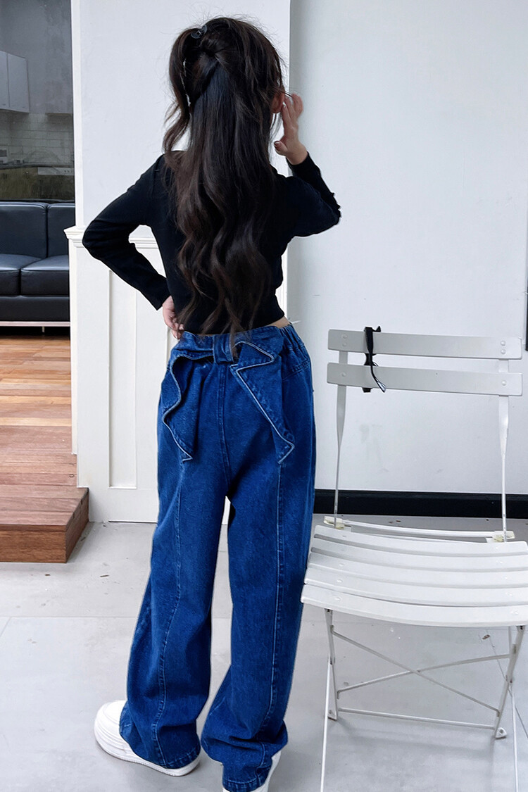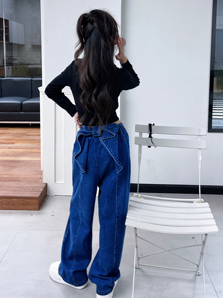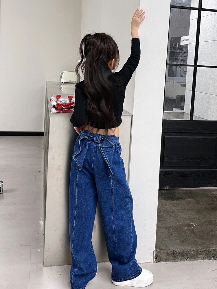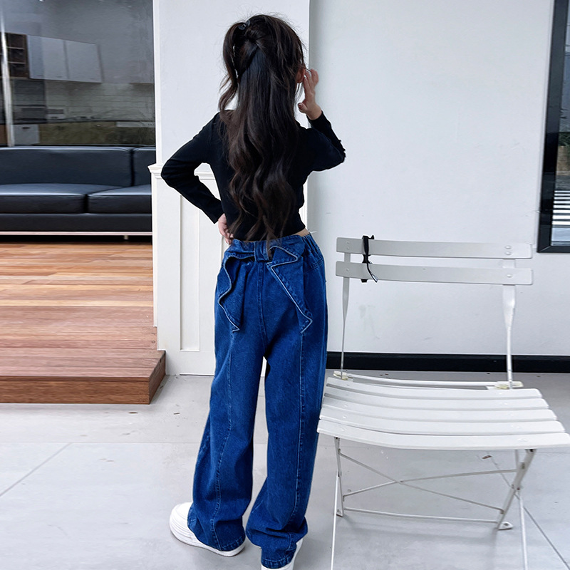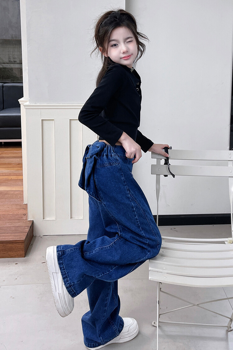 소녀들의 봄 · 가을 세트 서양식 POLO 칼라 긴팔베이스 셔츠 슬림핏 올매치 한국식 어린이 데님 바지
