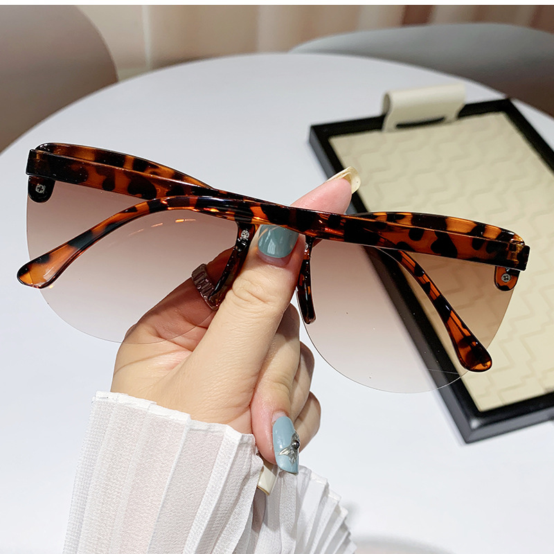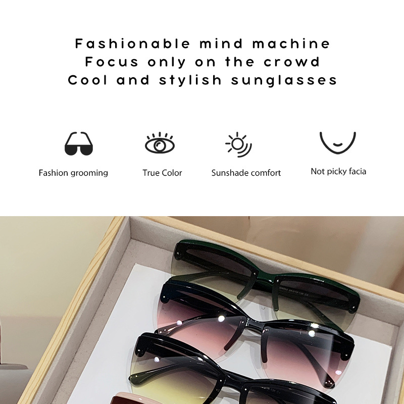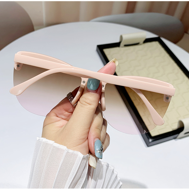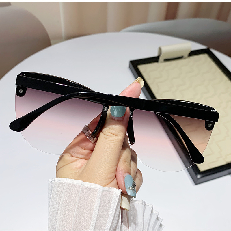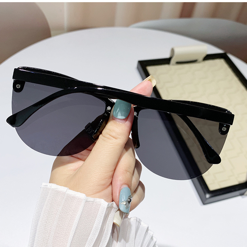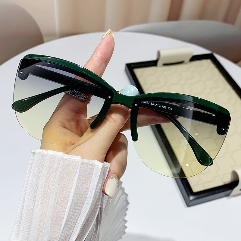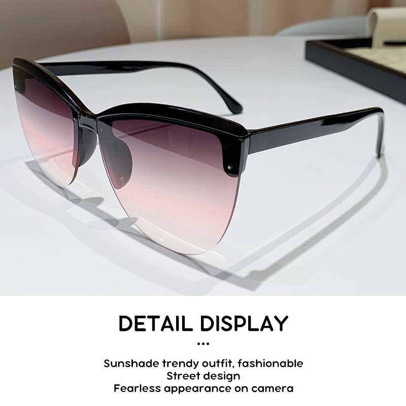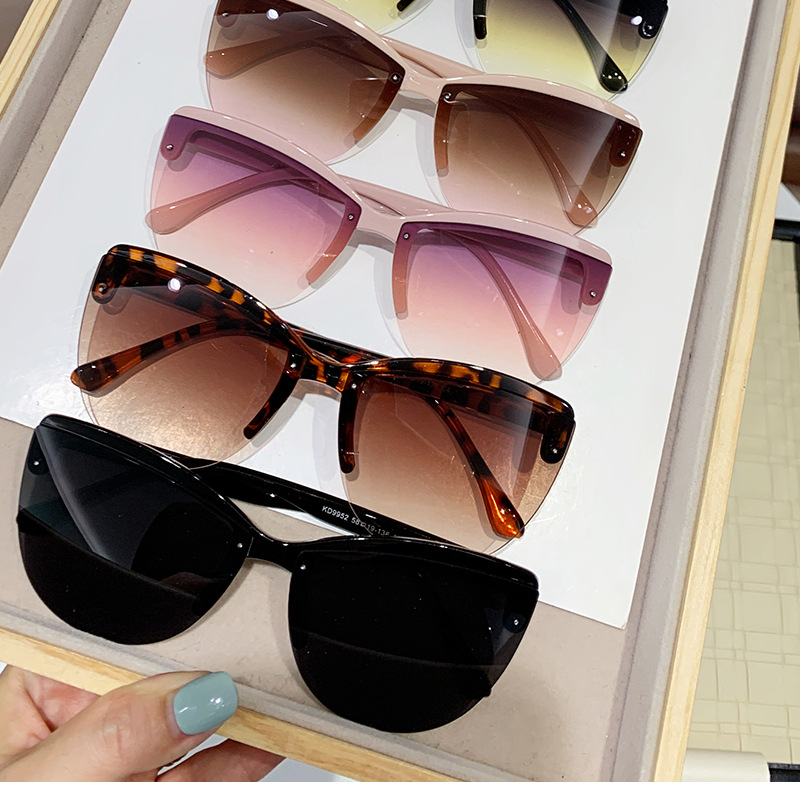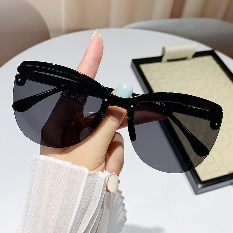 고양이 눈 빈티지 컷 엣지 하프 프레임 선글라스 여성 패션 하이 레벨 차양 안경 비치 안티 UV 선글라스 트렌디스토어 가기