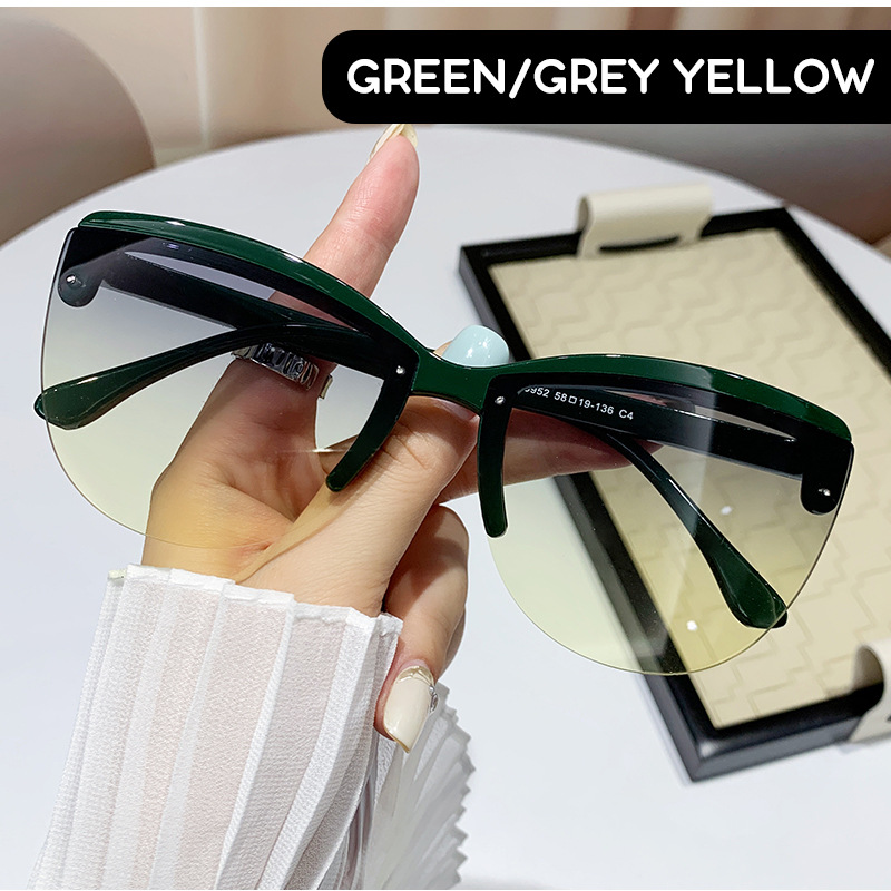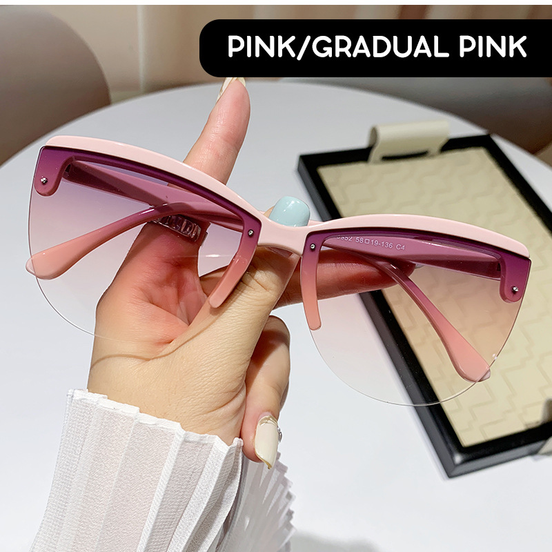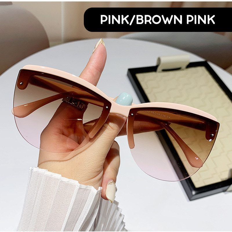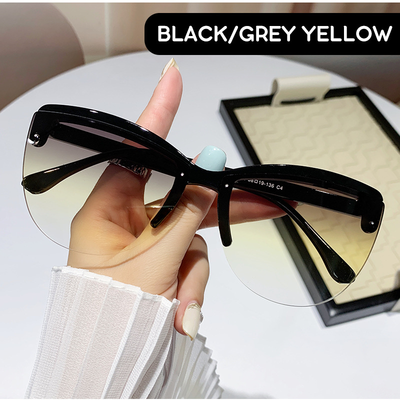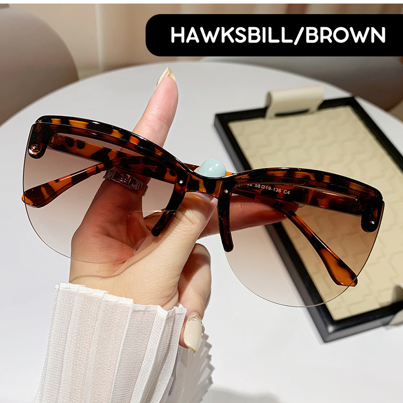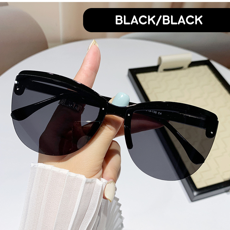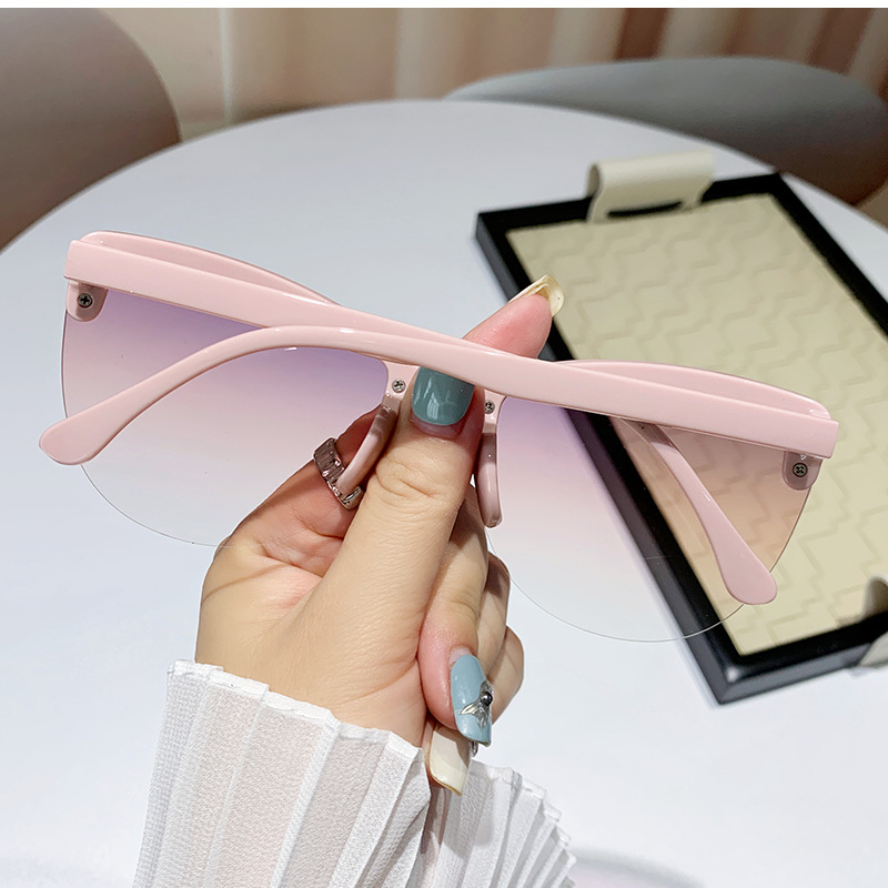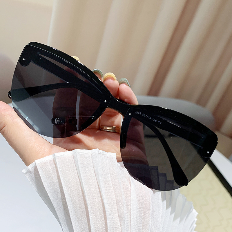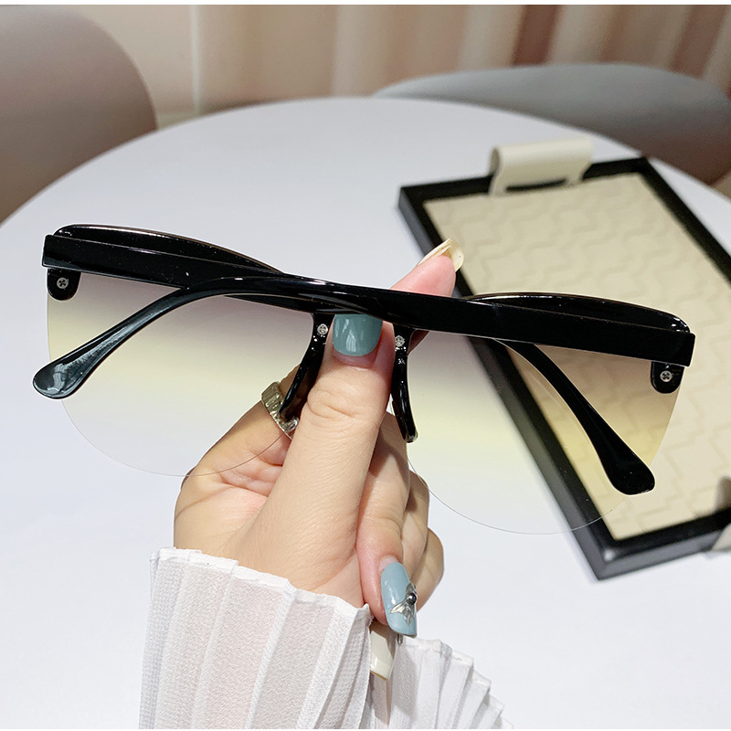 고양이 눈 빈티지 컷 엣지 하프 프레임 선글라스 여성 패션 하이 레벨 차양 안경 비치 안티 UV 선글라스 트렌디스토어 가기