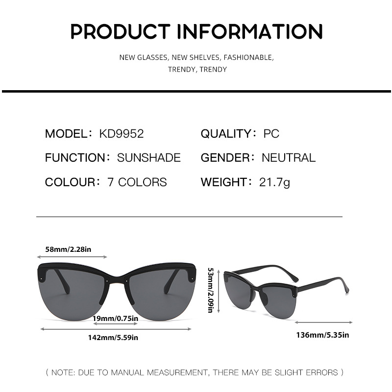 고양이 눈 빈티지 컷 엣지 하프 프레임 선글라스 여성 패션 하이 레벨 차양 안경 비치 안티 UV 선글라스 트렌디