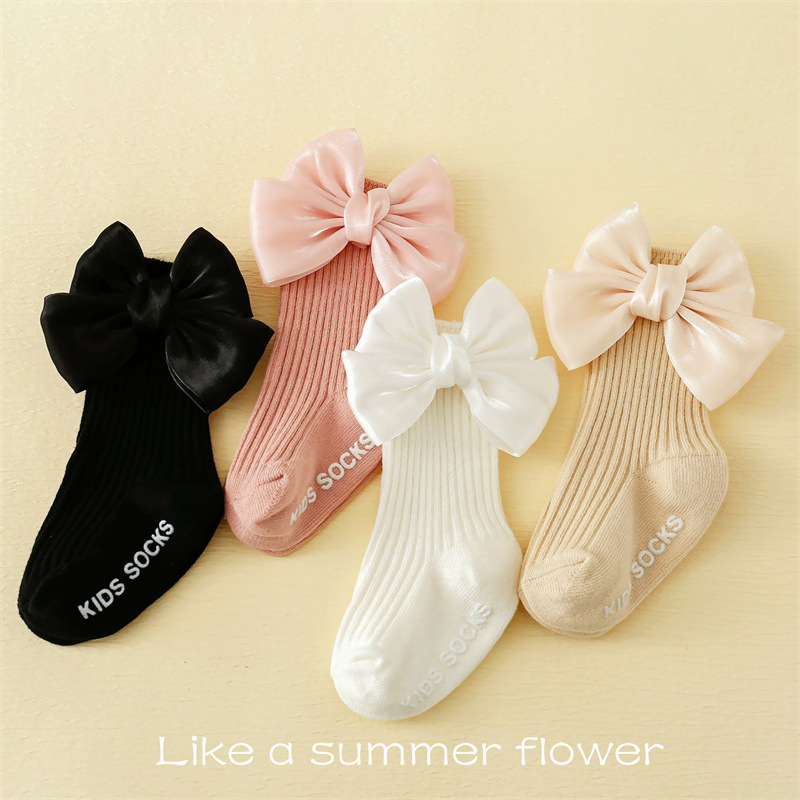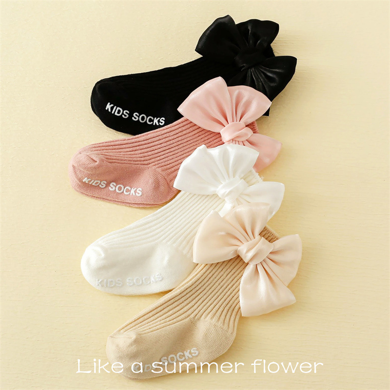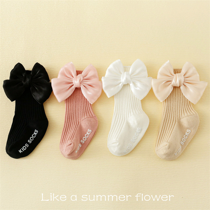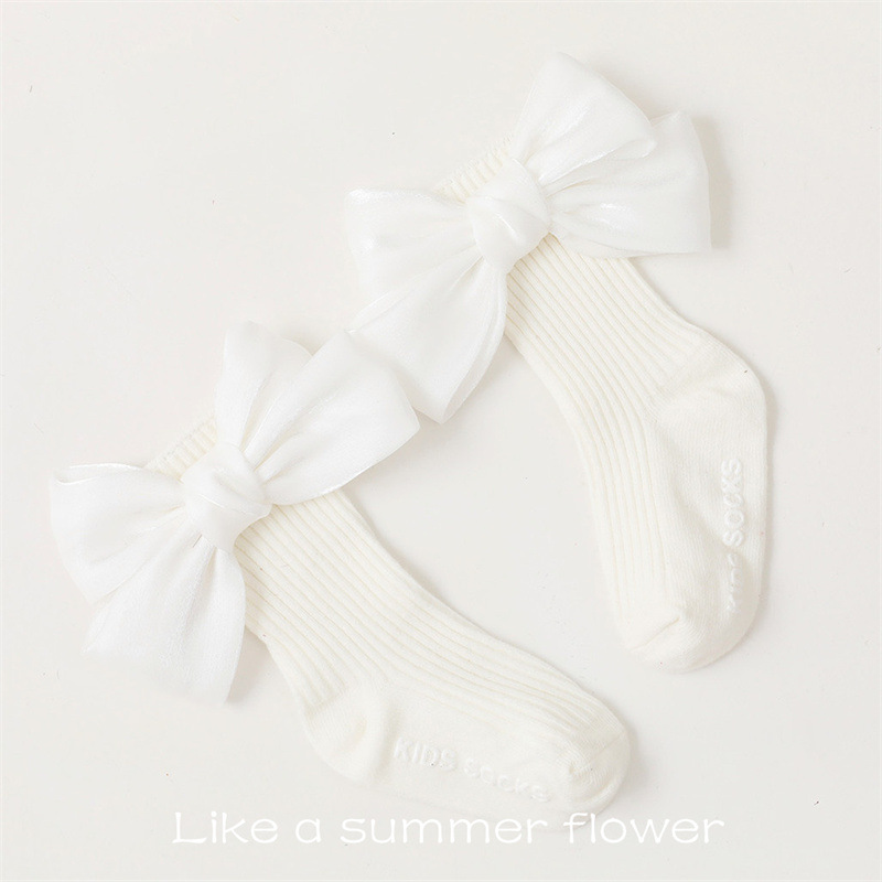 봄과 여름 아기 양말 한국 스타일 아기 공주 흰색 바닥 느슨한 양말 유아 비 슬립 바닥 양말