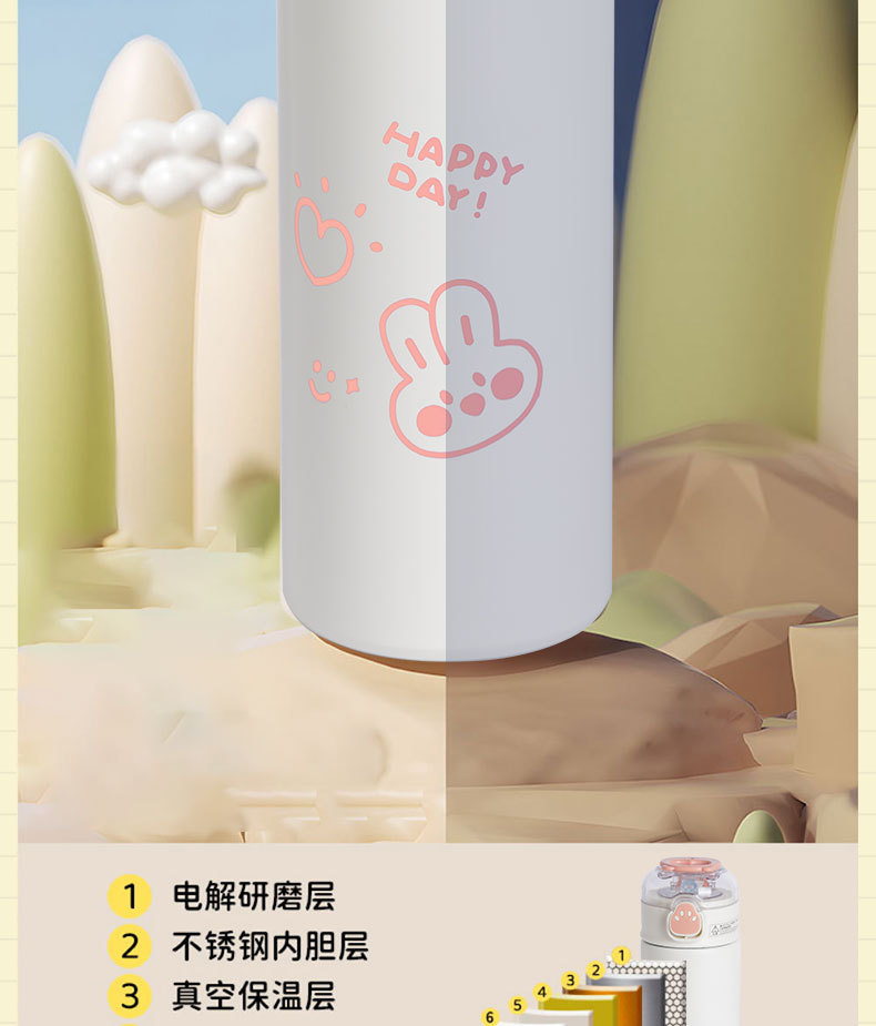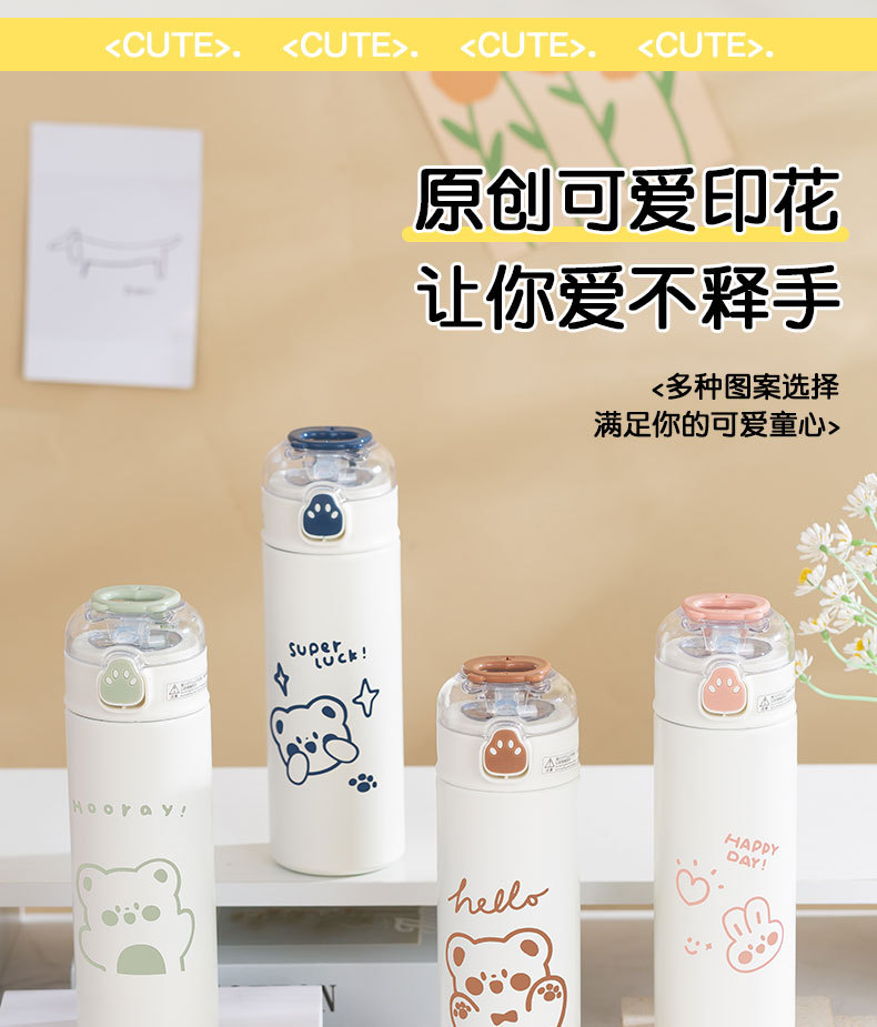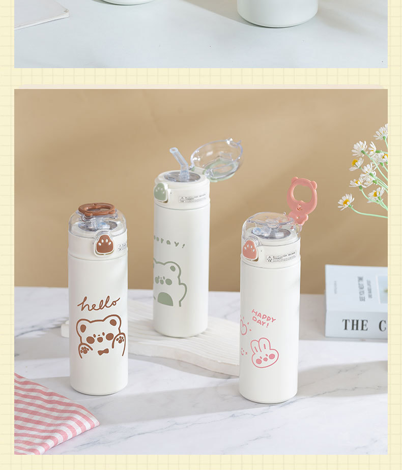 귀여운 휴대용 밀짚 보온병 컵 316 스테인레스 스틸 컵 작은 간단한 한국 Ins 스타일 학생 캠퍼스 워터 컵