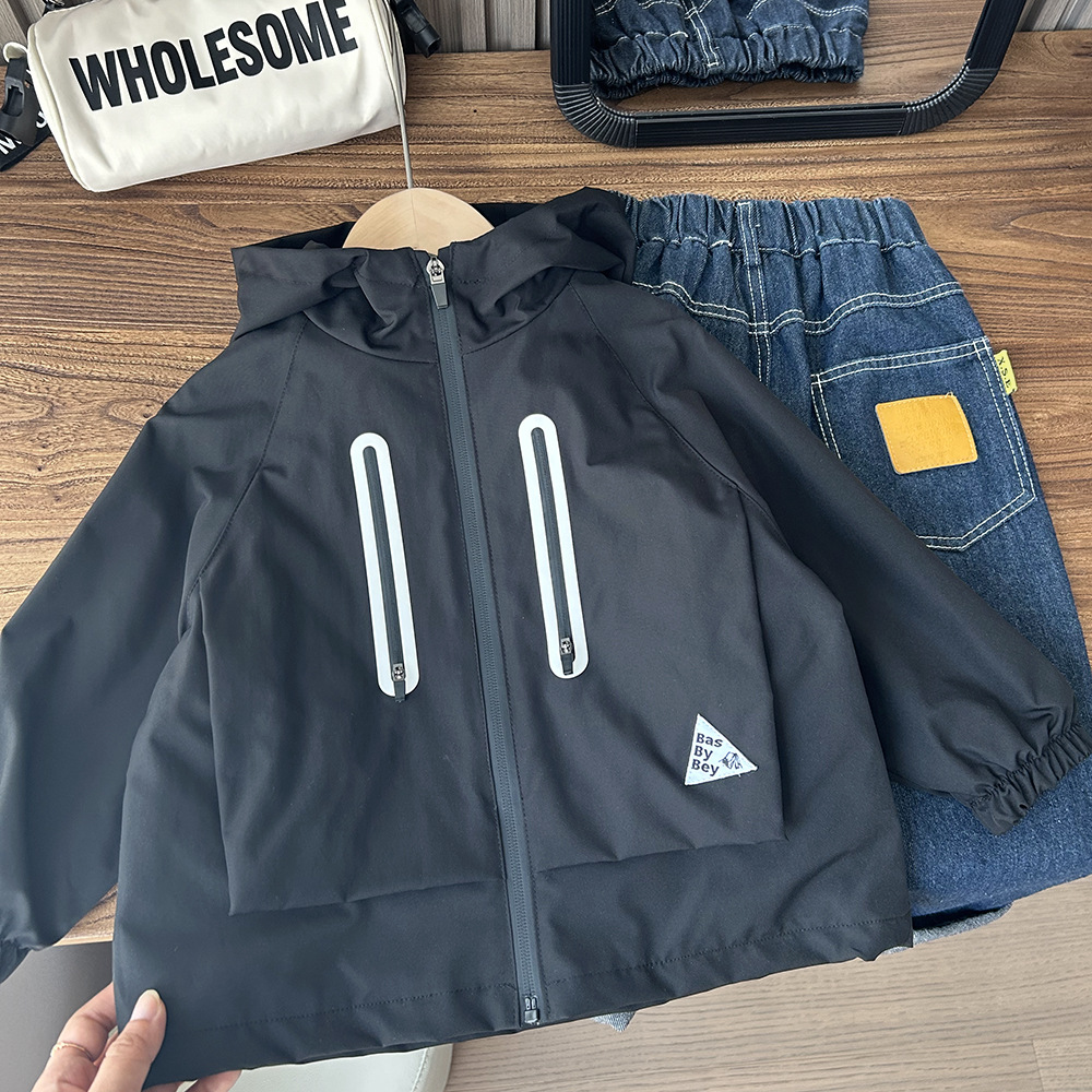 2024 가을 새로운 아동복 소년 어린이 후드 야외 바람 부드러운 쉘 재킷 재킷 도매 세대스토어 가기