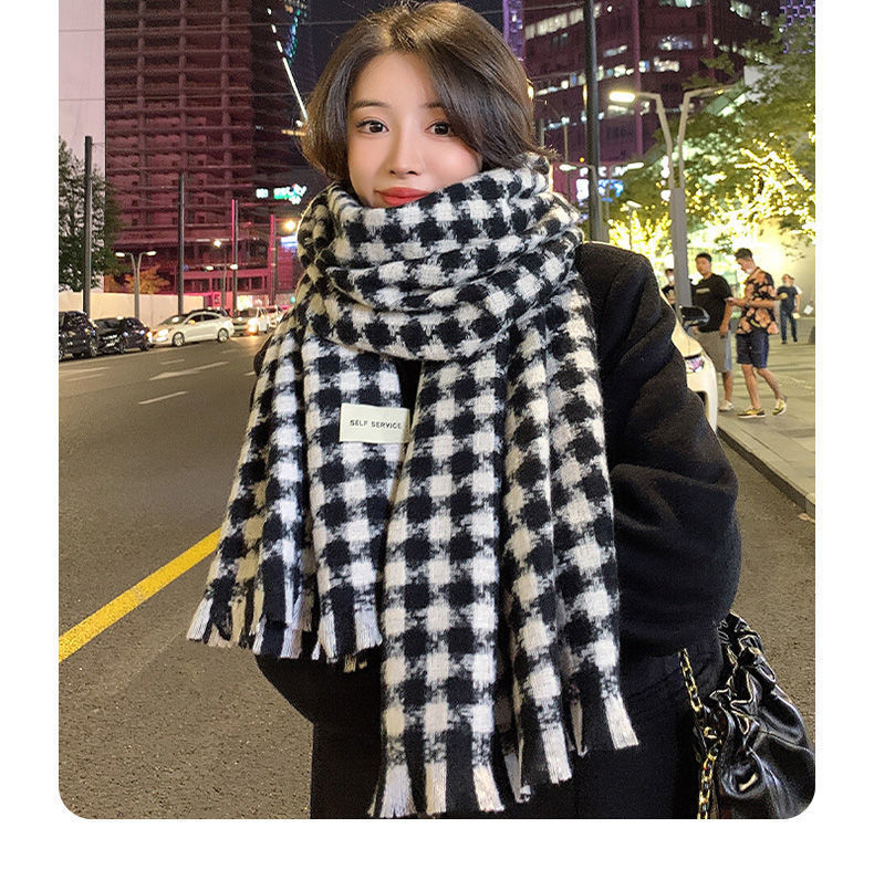 신형 하운스투스 스카프 여성 긴 가을 · 겨울 학생 한국식 아우터 윙 목도리 이중목적 모조 캐시미어 따뜻한 스카프
