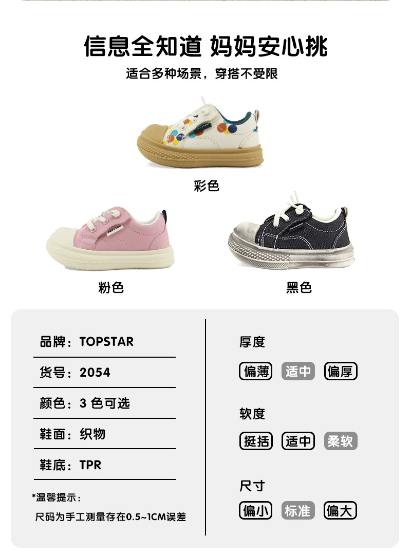 TOPSTAR 가을 새로운 어린이 캔버스 신발 밝은 색상 어린이 신발 유치원 실내 신발스토어 가기