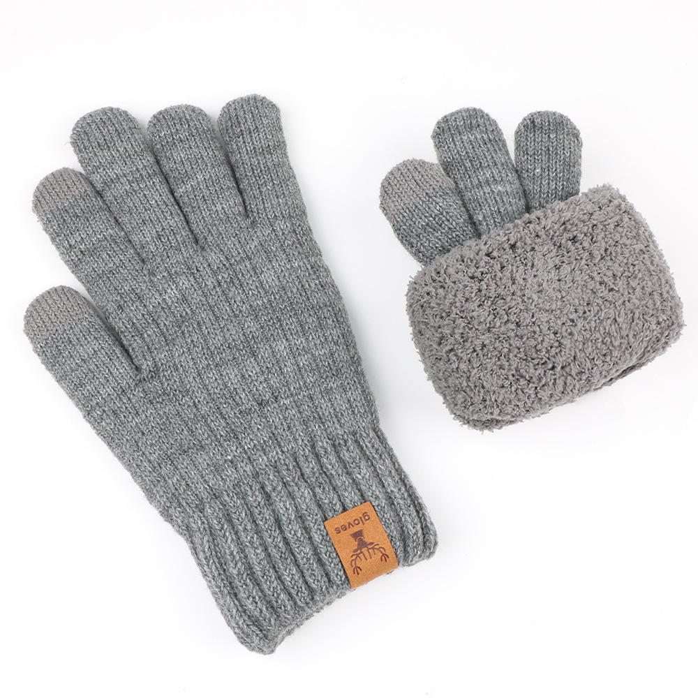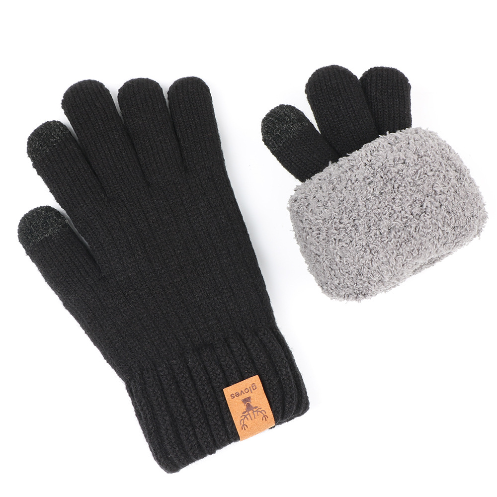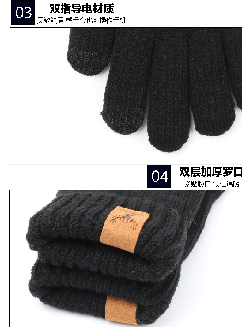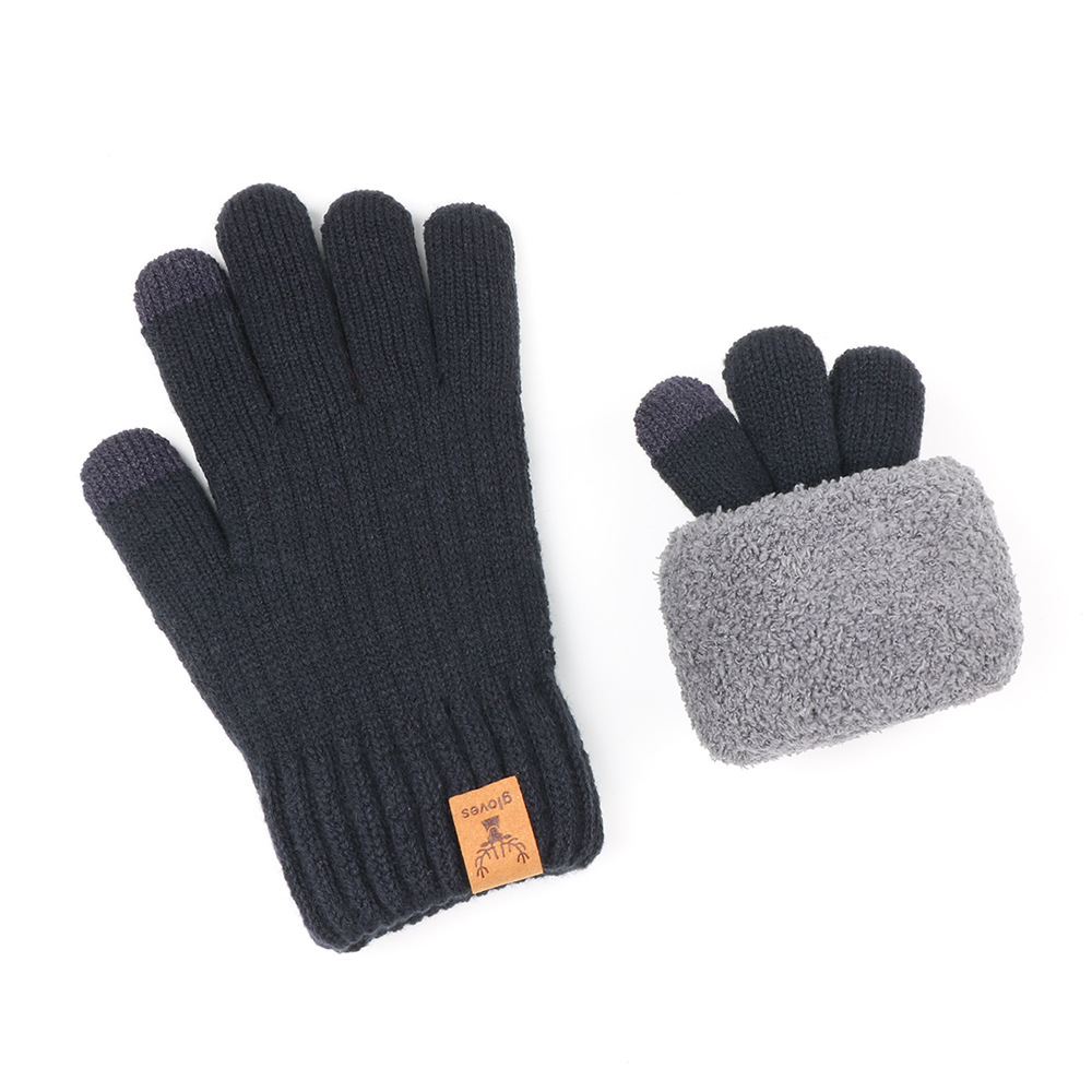 국경 니트 양모 감기 방지 따뜻한 장갑 남자 더블 레이어 두꺼운 야외 사이클링 기모 터치 스크린 겨울 장갑