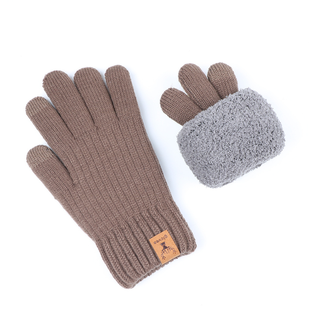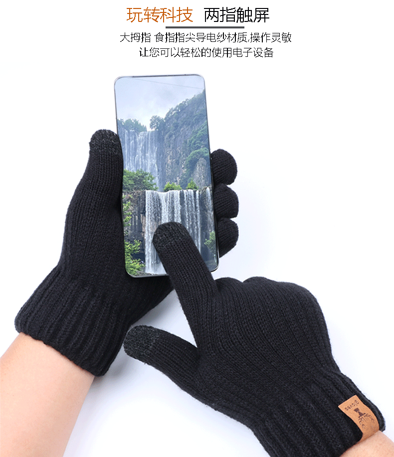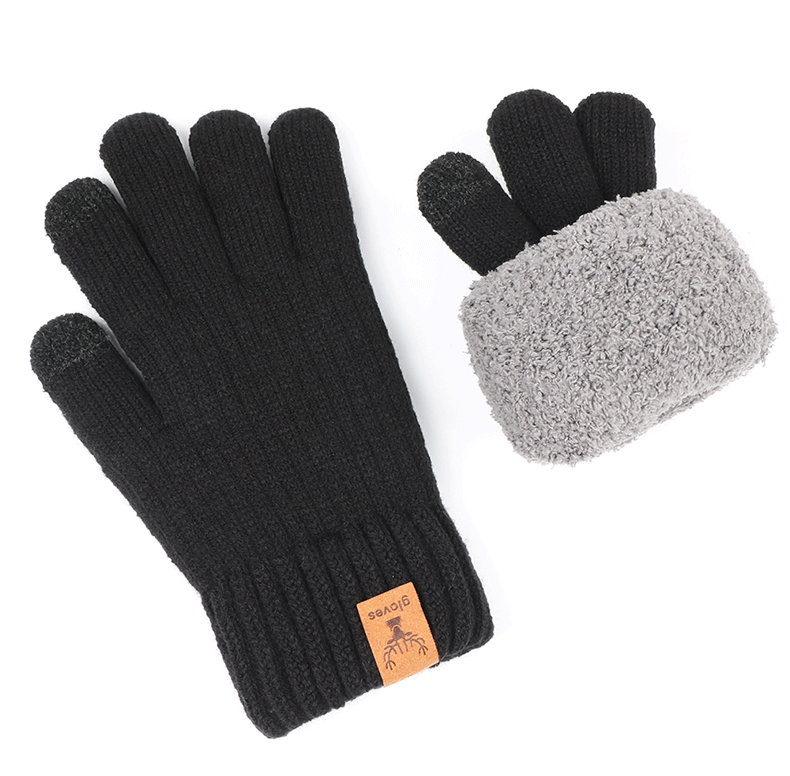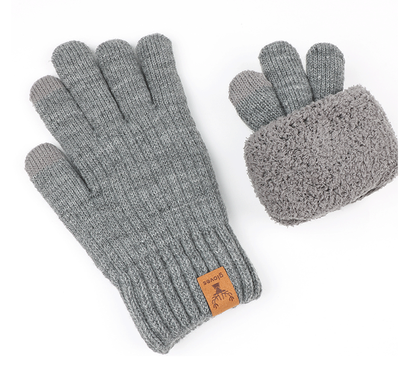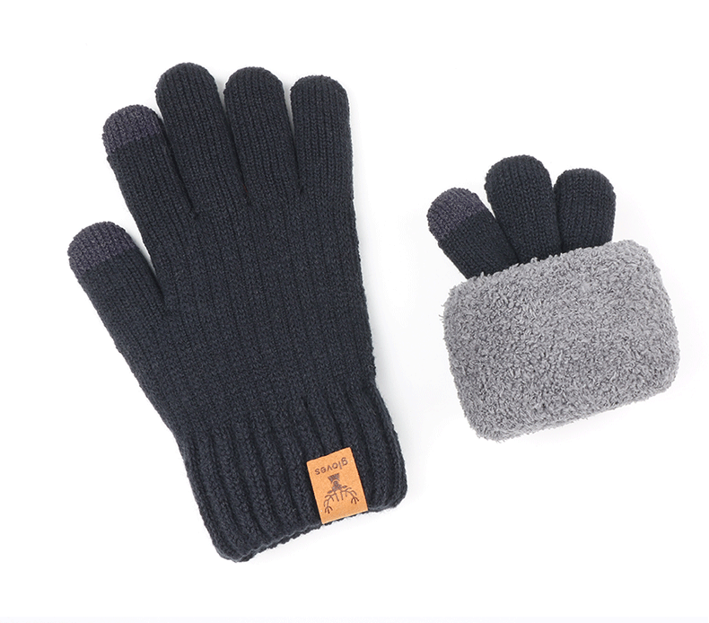 국경 니트 양모 감기 방지 따뜻한 장갑 남자 더블 레이어 두꺼운 야외 사이클링 기모 터치 스크린 겨울 장갑