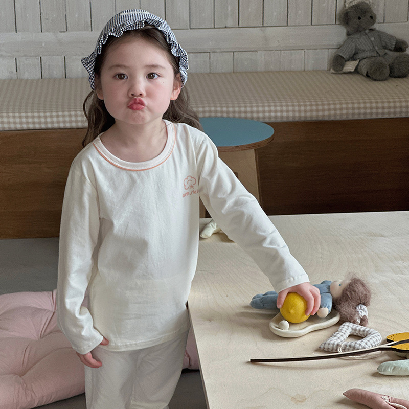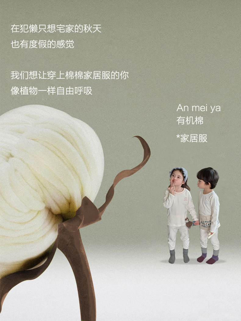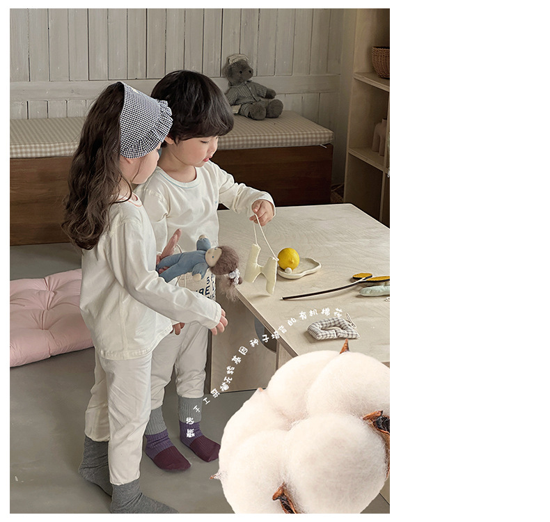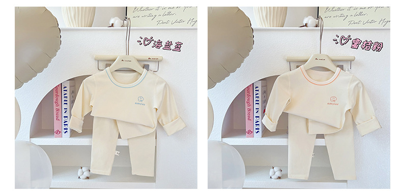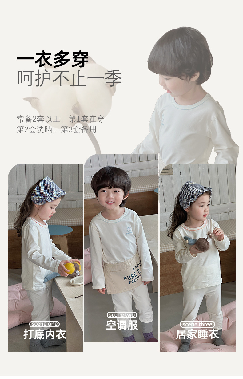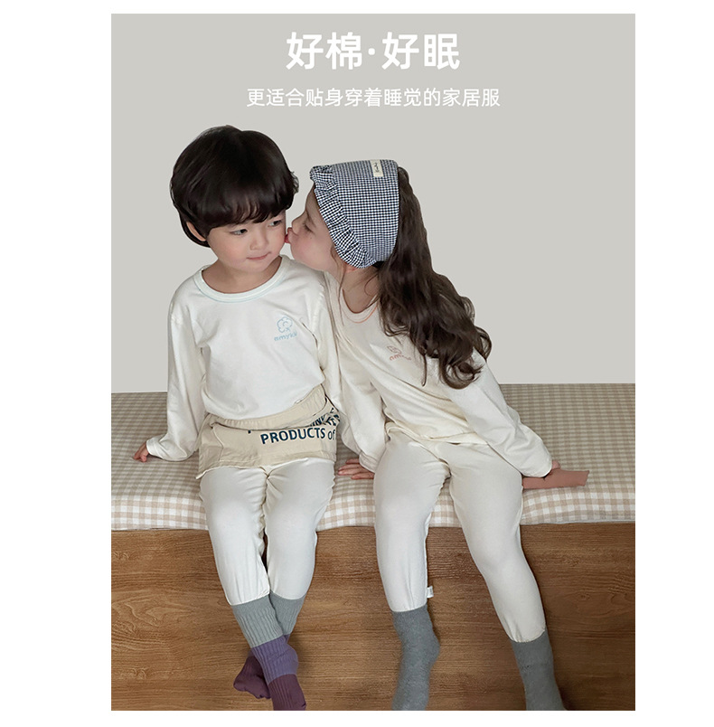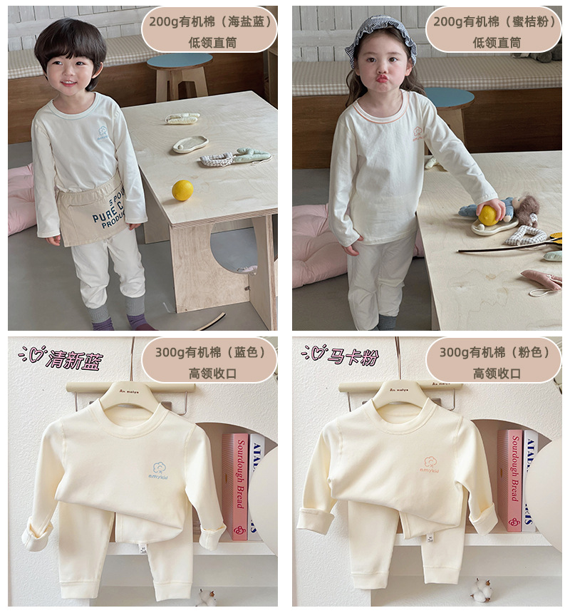 AnMeiya 어린이 잠옷 두꺼운 유기농 면화 속옷 2 피스 어린이 집 옷 가을 옷 목 세트