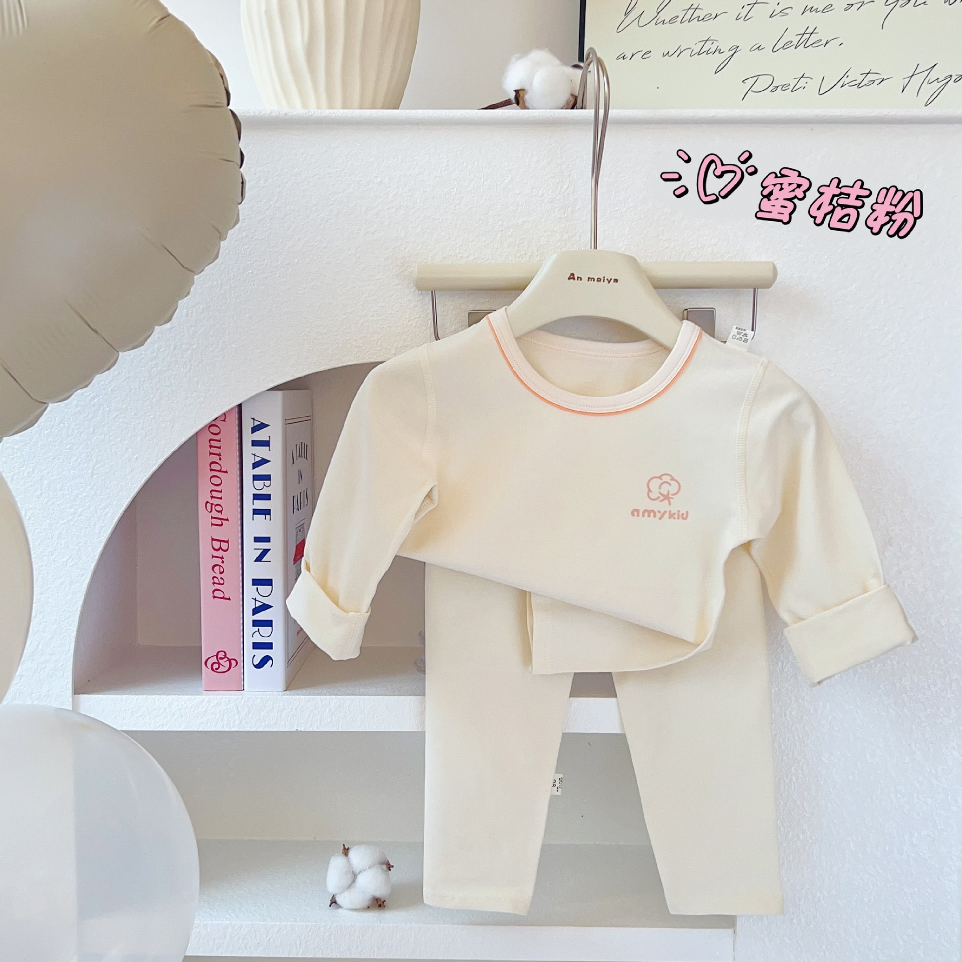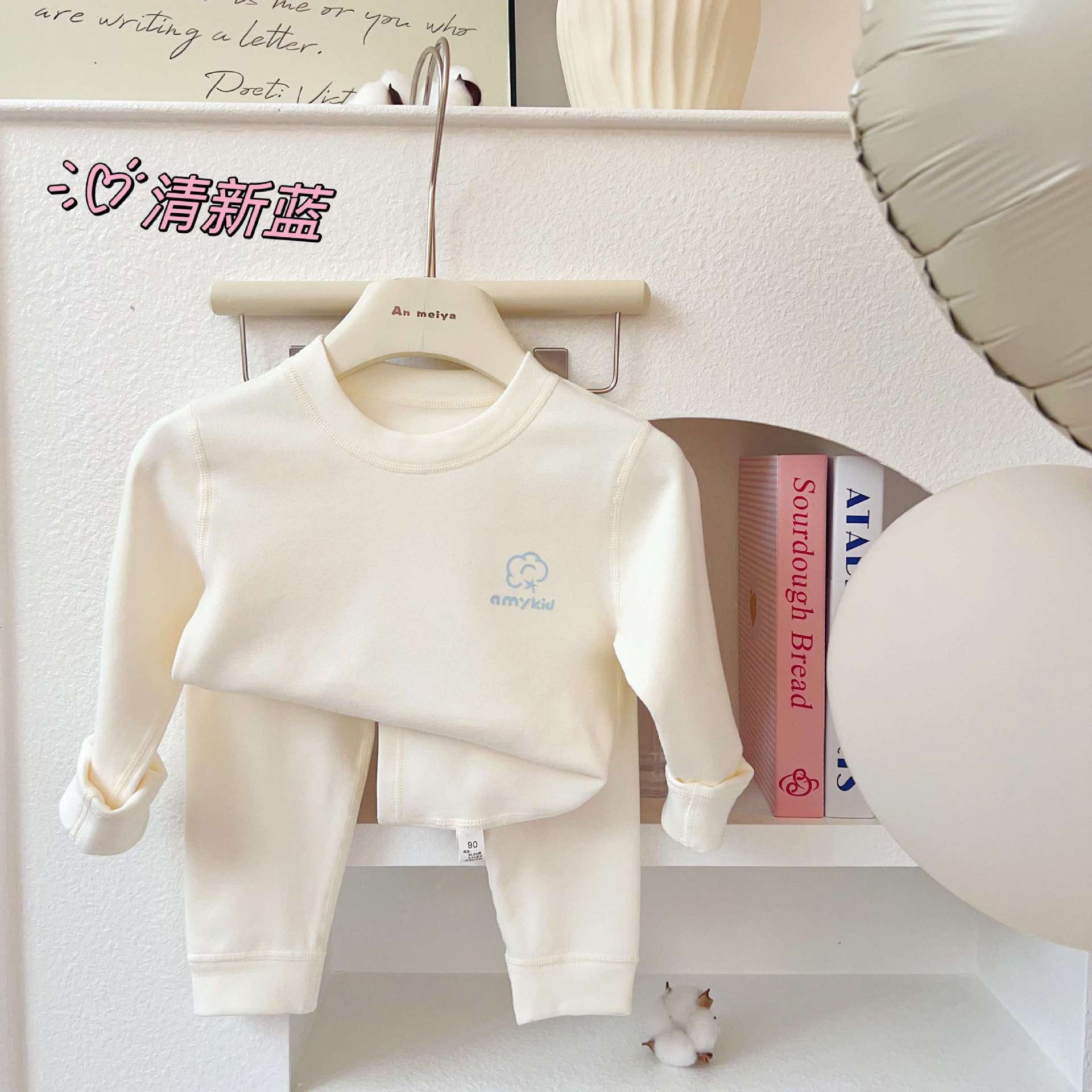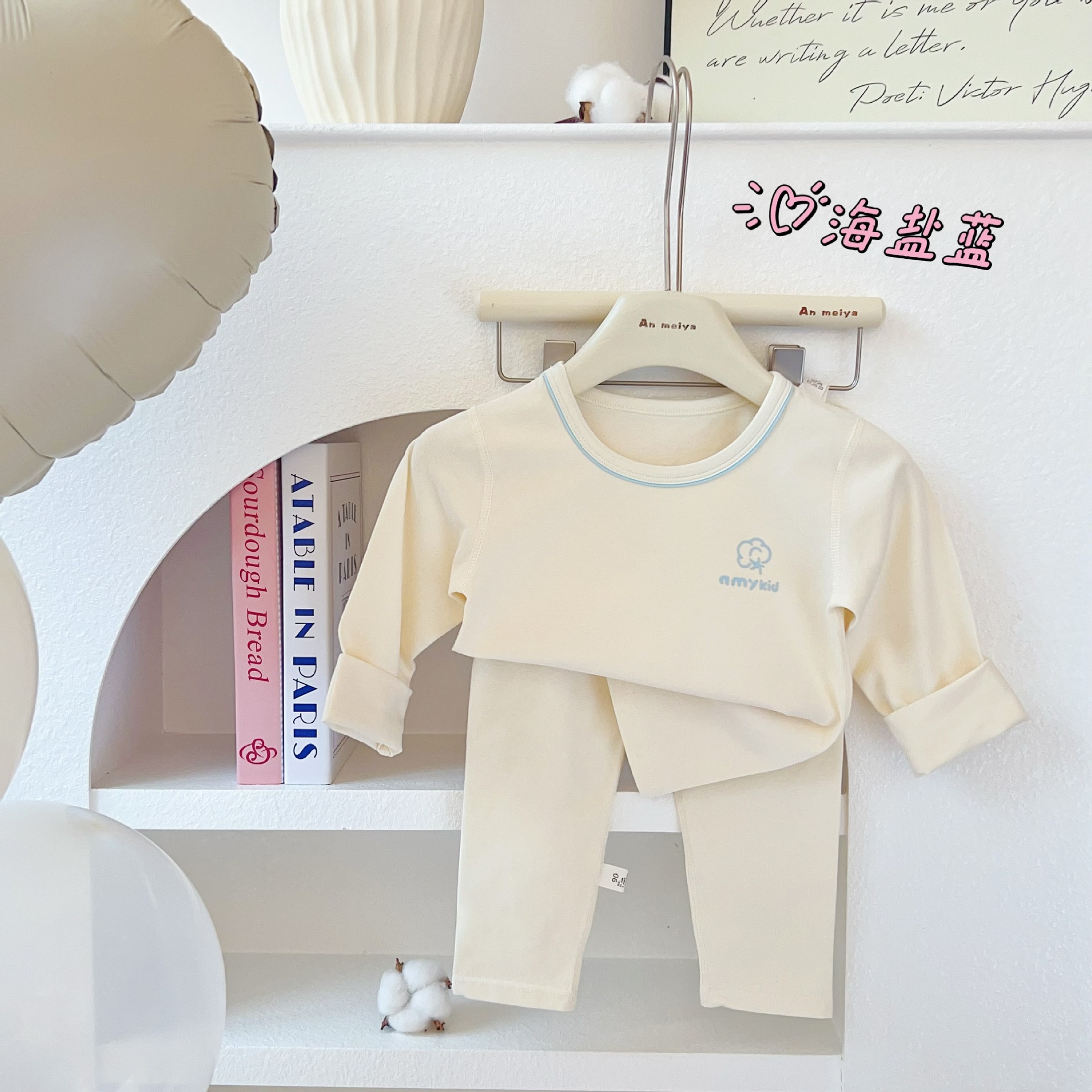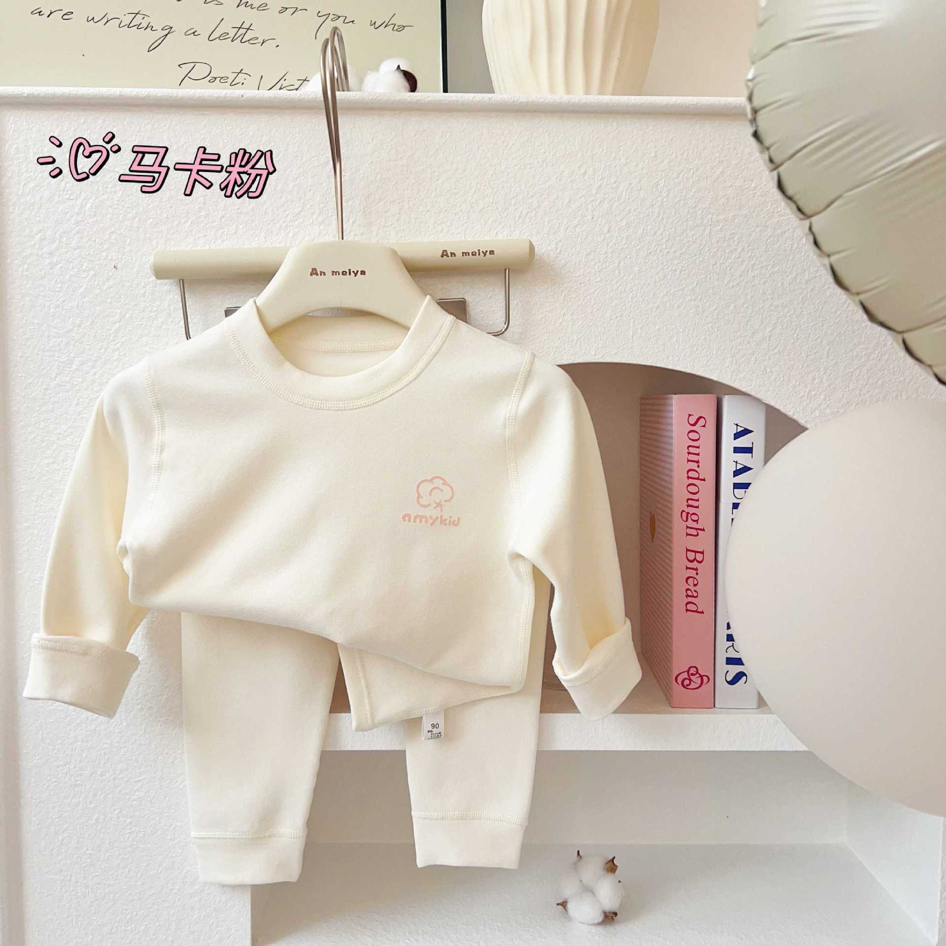 AnMeiya 어린이 잠옷 두꺼운 유기농 면화 속옷 2 피스 어린이 집 옷 가을 옷 목 세트스토어 가기