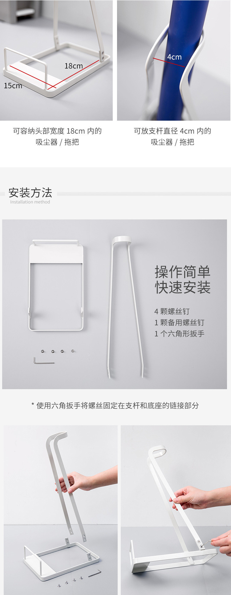 심플한 범용 진공청소기 보관대, 무타공 무못 설치, 바닥형 수납선반, 철제 가정용 수납장스토어 가기