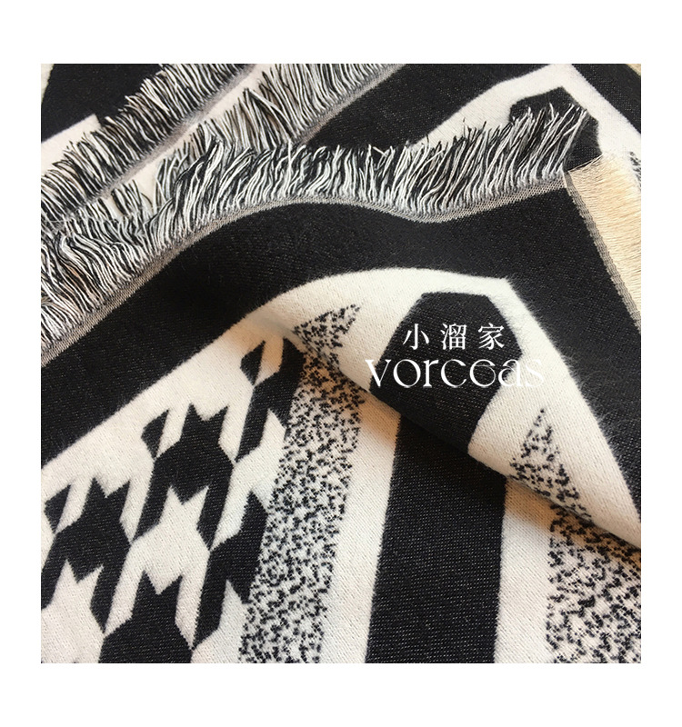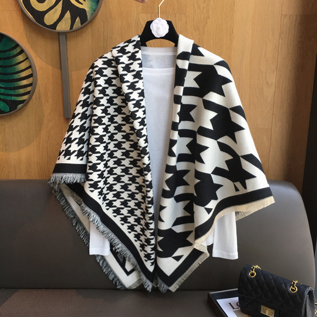 秋季百搭拼色千鸟格加厚保暖大披肩两用仿羊绒围巾女130cm大方巾