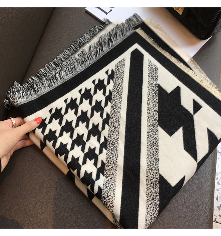 가을 올 매치 컬러 매칭 하운스 투스 패딩 따뜻한 대형 숄 이중 목적 캐시미어 스카프 여성의 130cm 대형 스퀘어