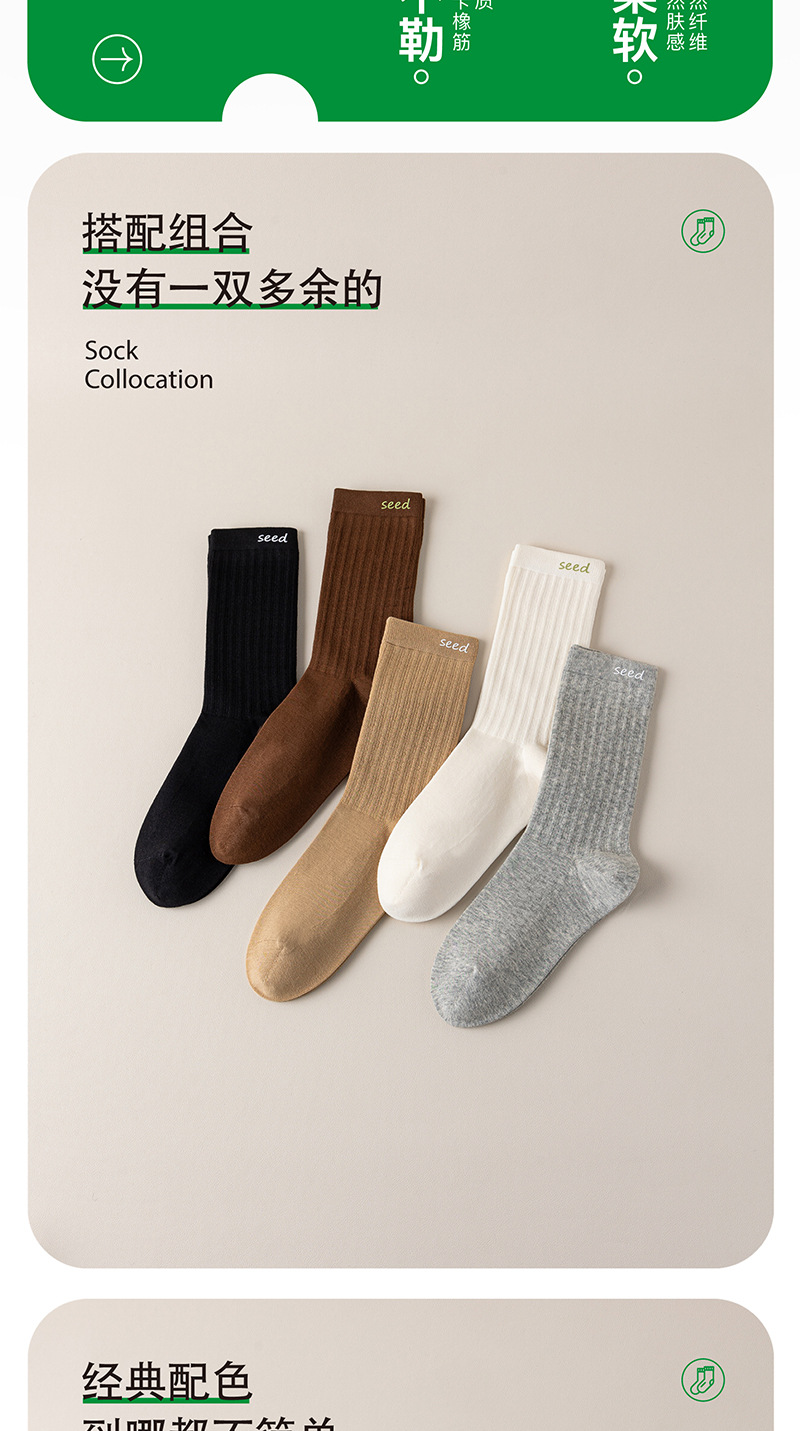 가을과 겨울 새로운 양말 여성의 세로 줄무늬면 통기성 캐주얼 코튼 양말 Luo Kou 오프셋 인쇄 여성 단색 튜브 양말스토어 가기