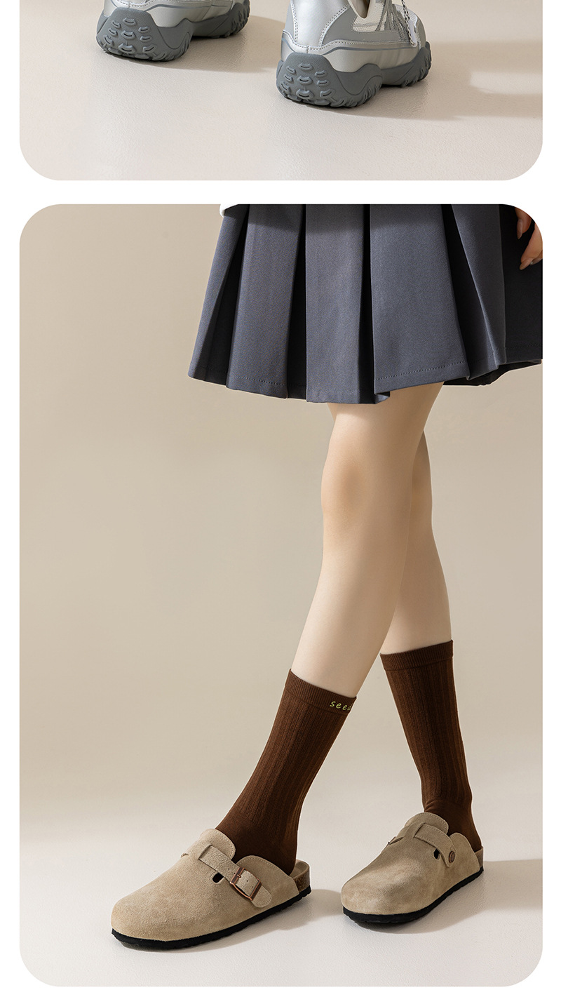 가을과 겨울 새로운 양말 여성의 세로 줄무늬면 통기성 캐주얼 코튼 양말 Luo Kou 오프셋 인쇄 여성 단색 튜브 양말