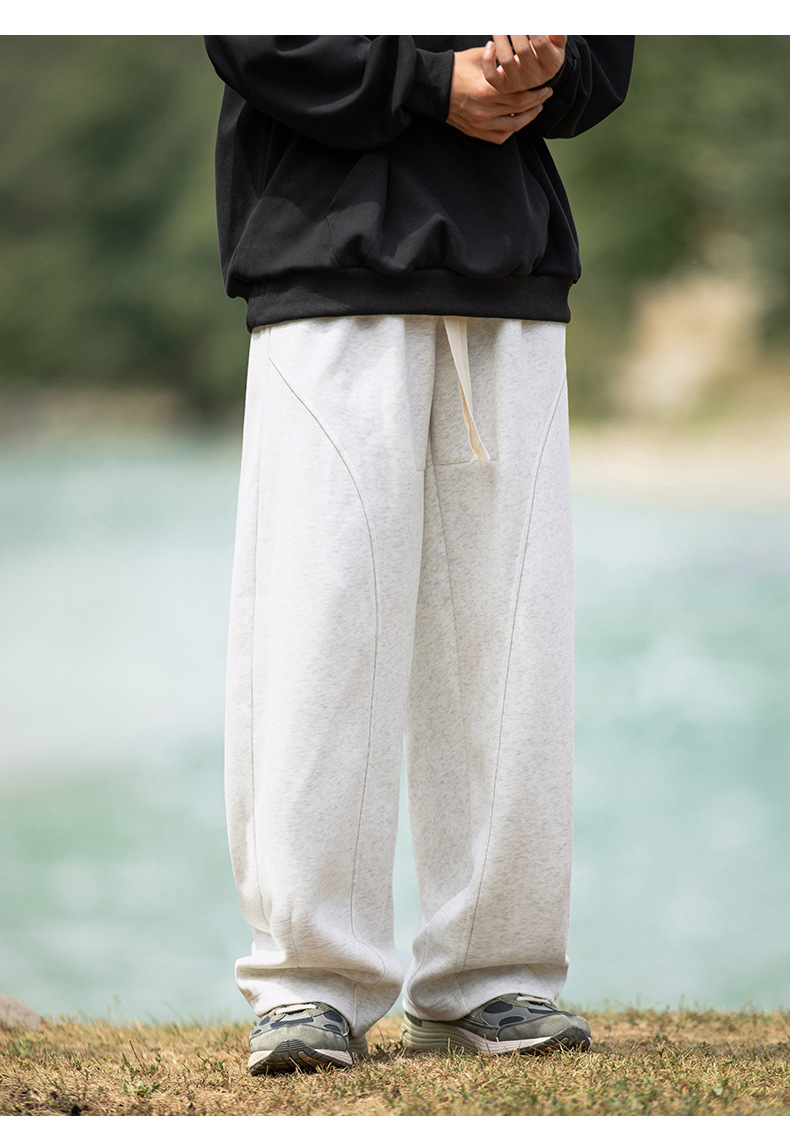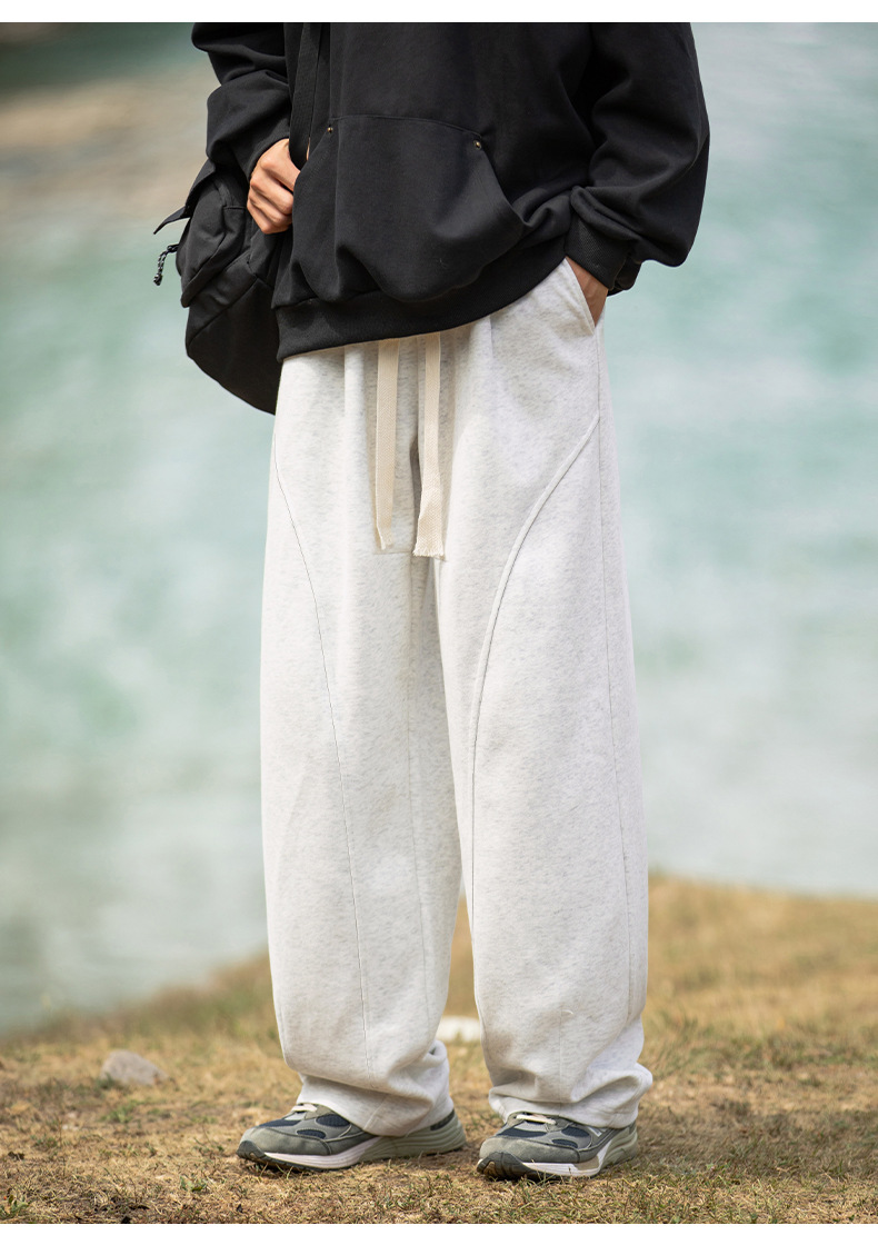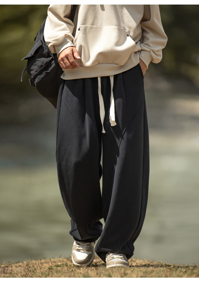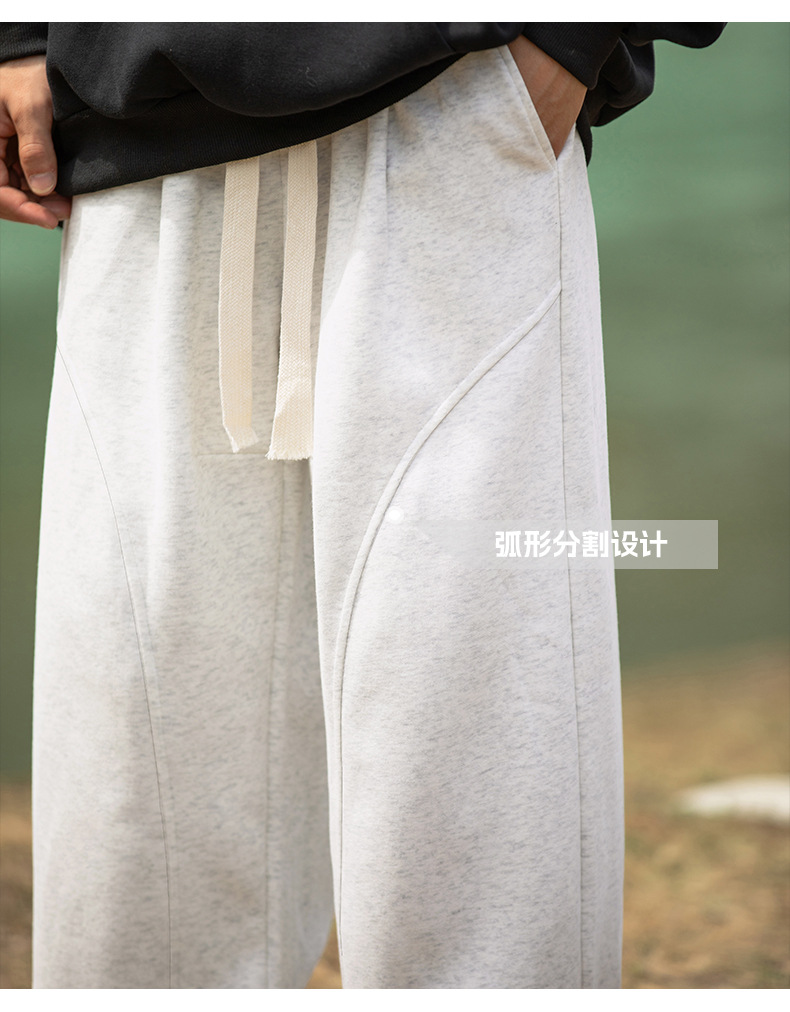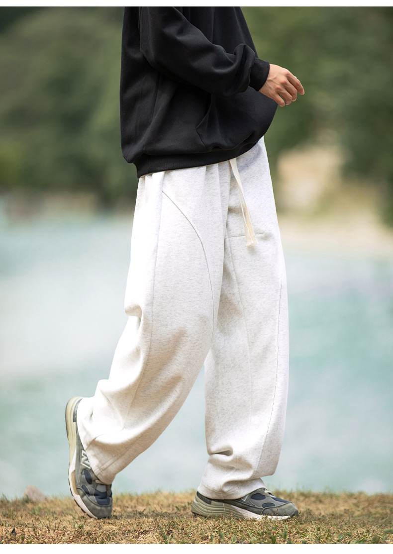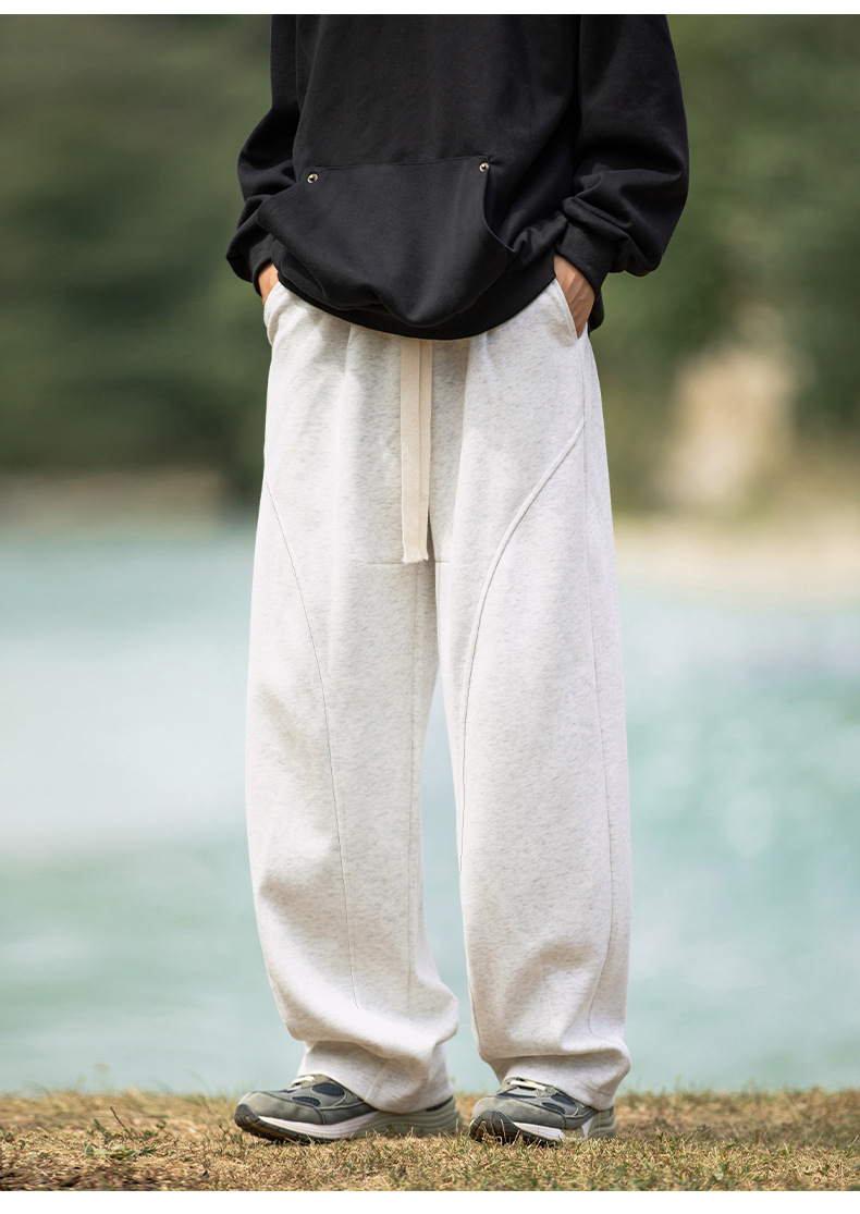 헤비급 400G 곡선 분할 디자인 남성용 와이드 레그 캐주얼 바지 봄 신작 하이 스트리트 루즈하고 다재다능한 드레이프 스웨트 팬츠