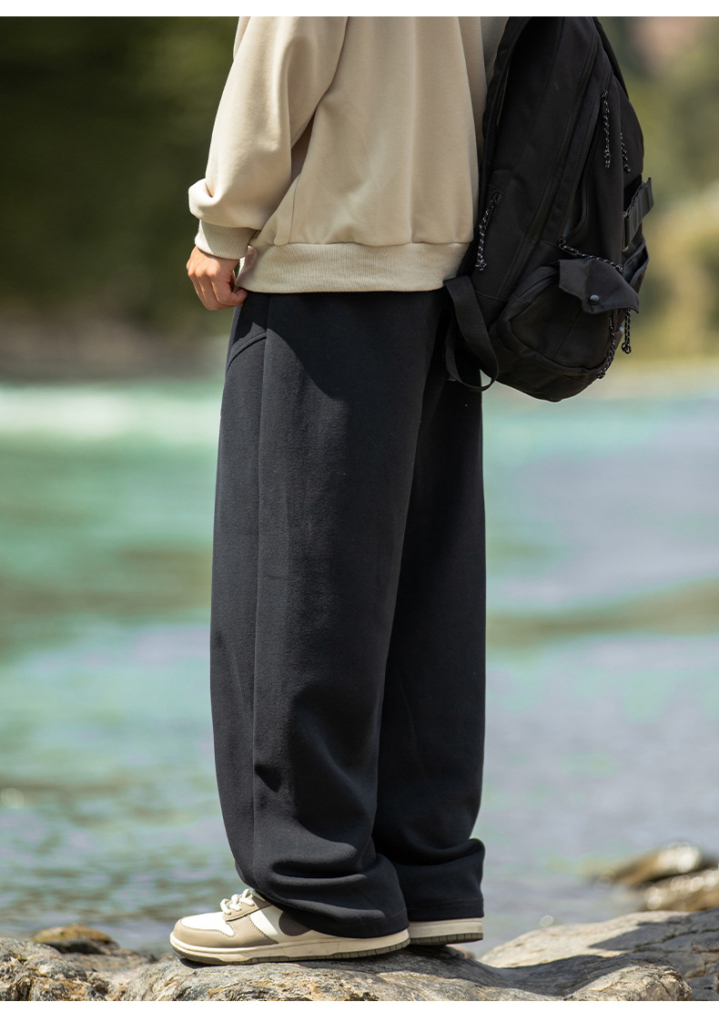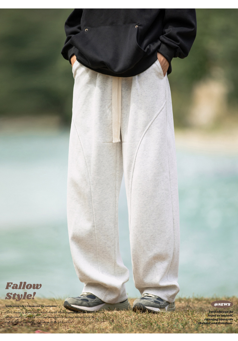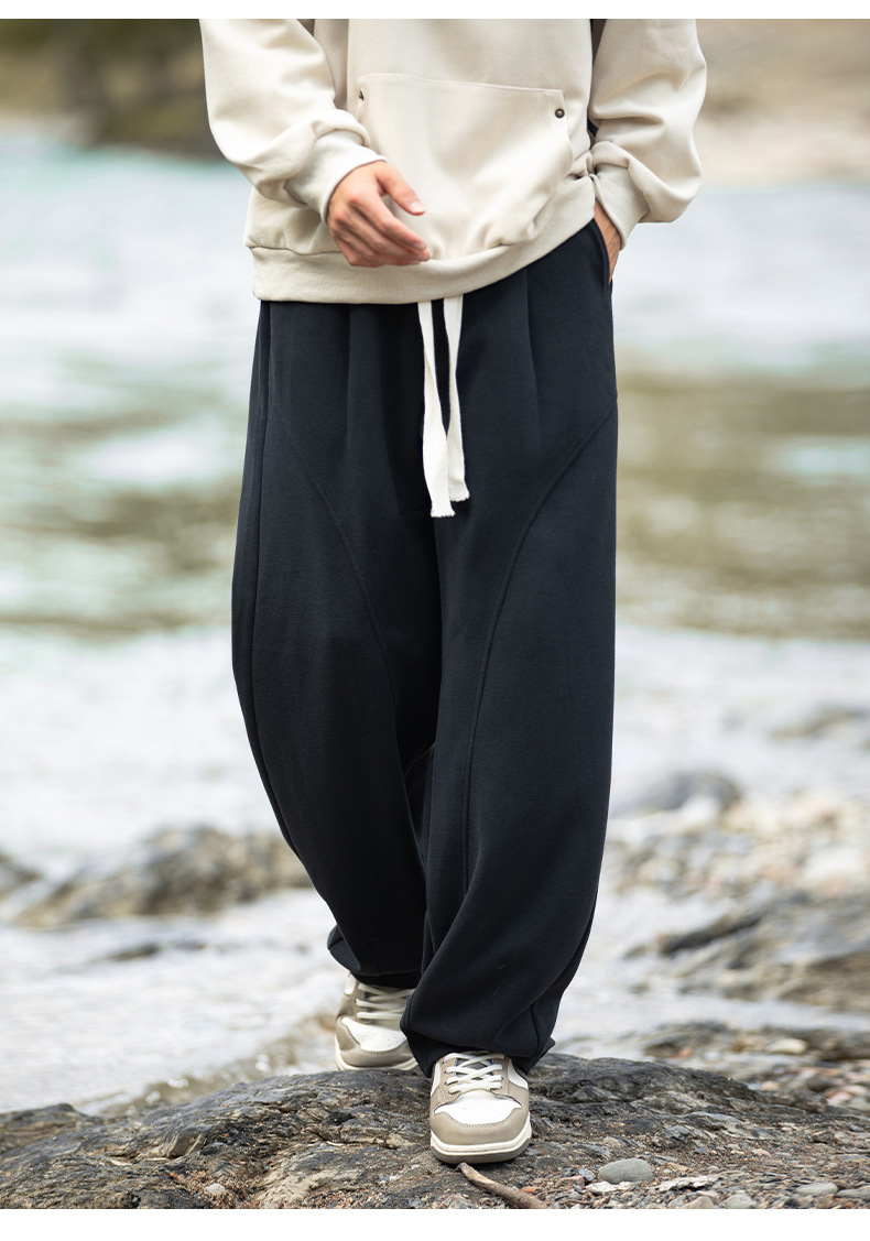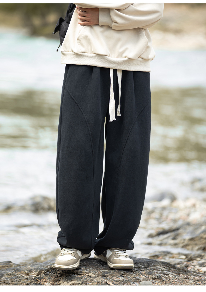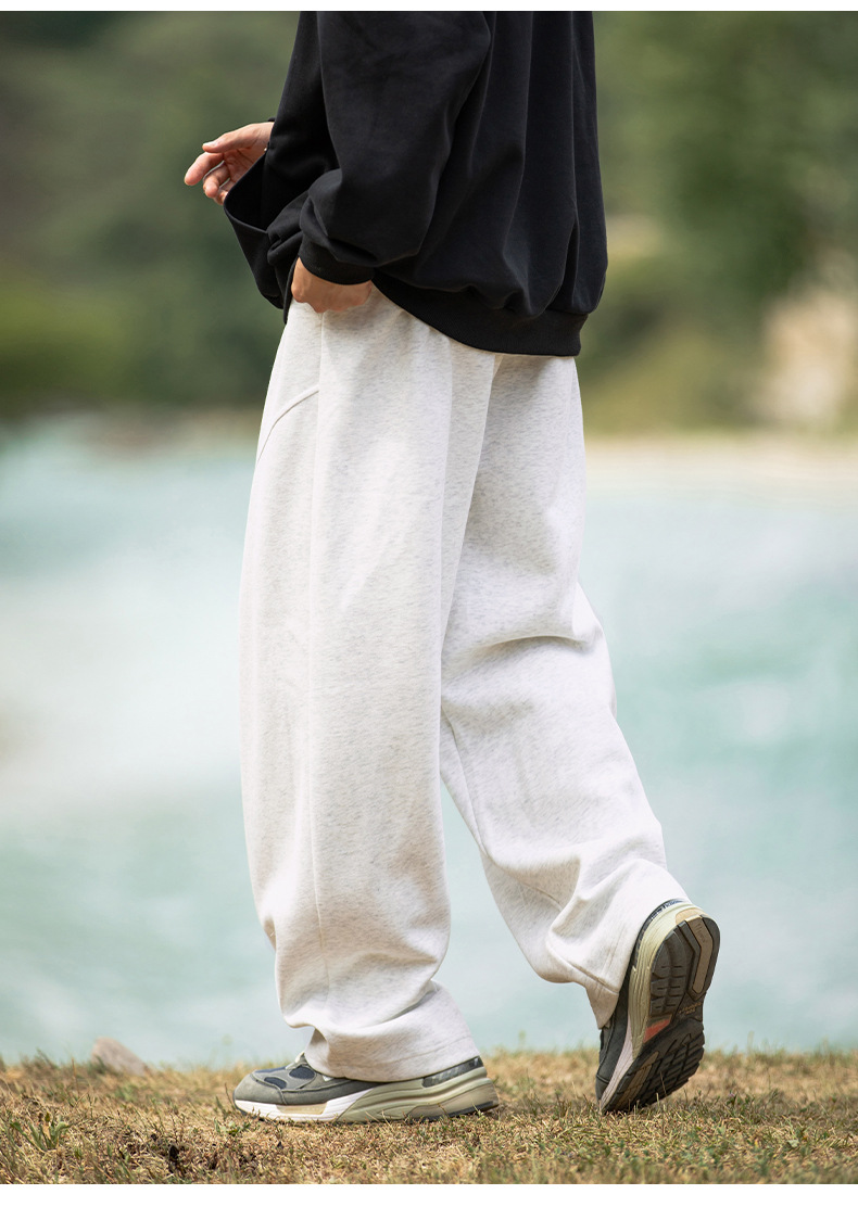 헤비급 400G 곡선 분할 디자인 남성용 와이드 레그 캐주얼 바지 봄 신작 하이 스트리트 루즈하고 다재다능한 드레이프 스웨트 팬츠
