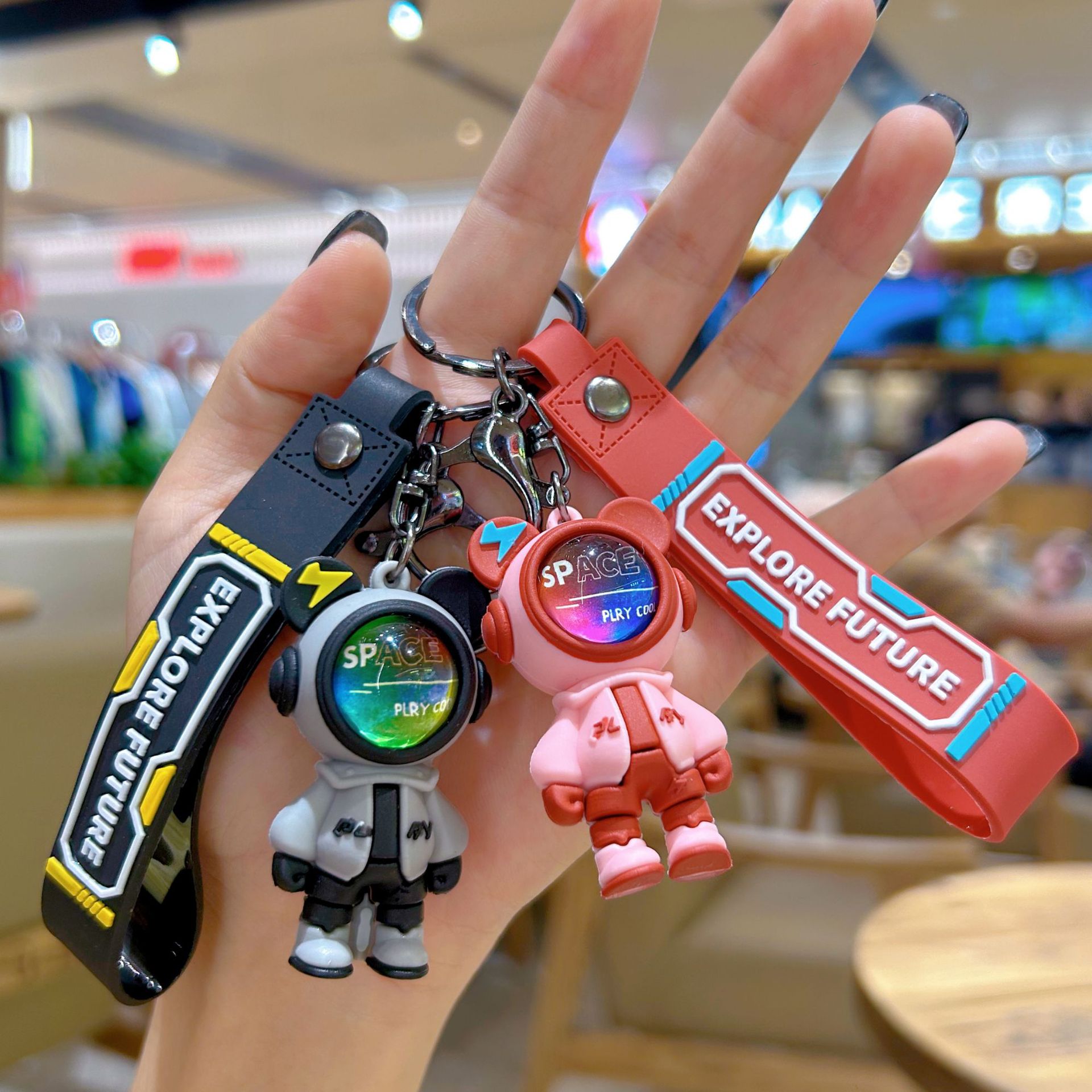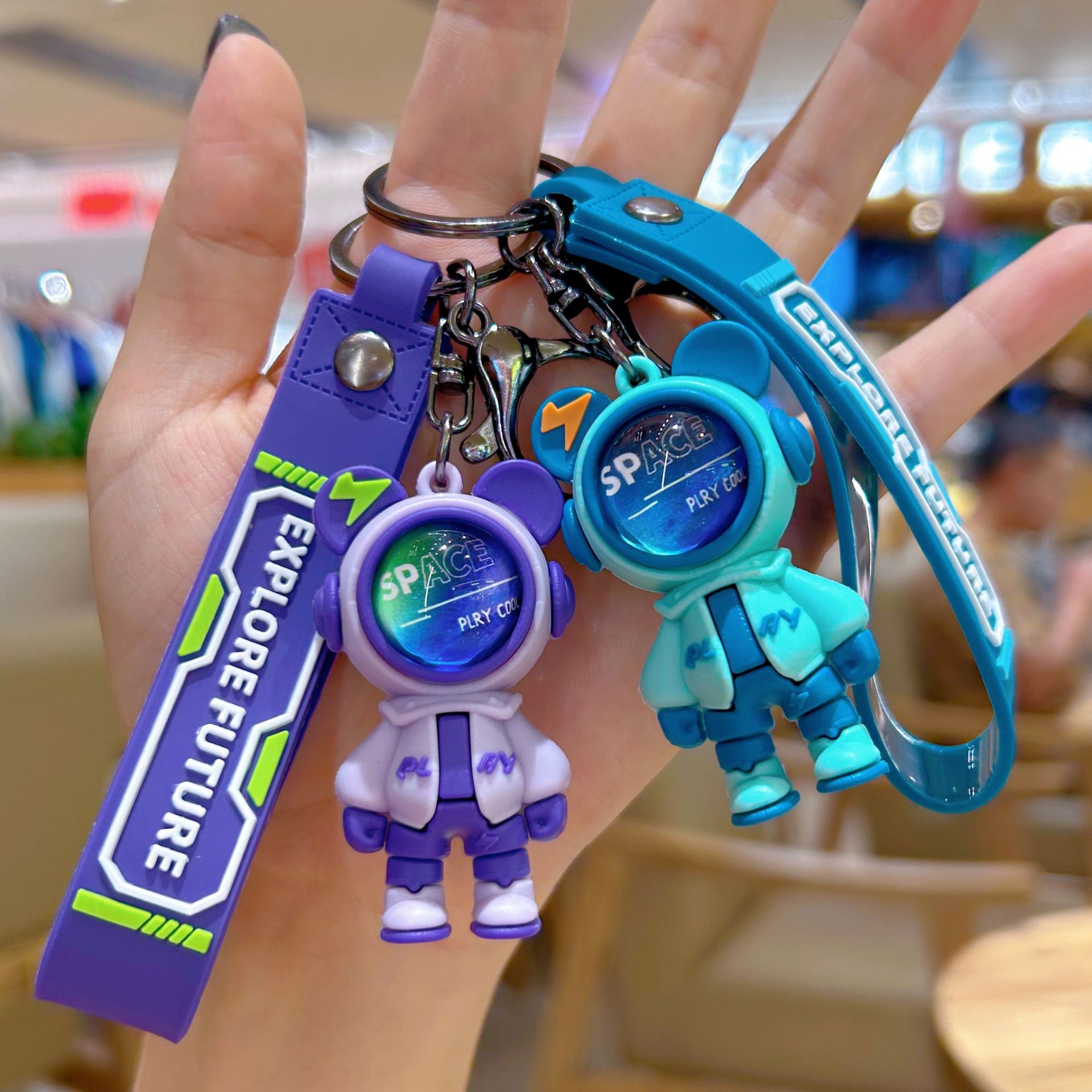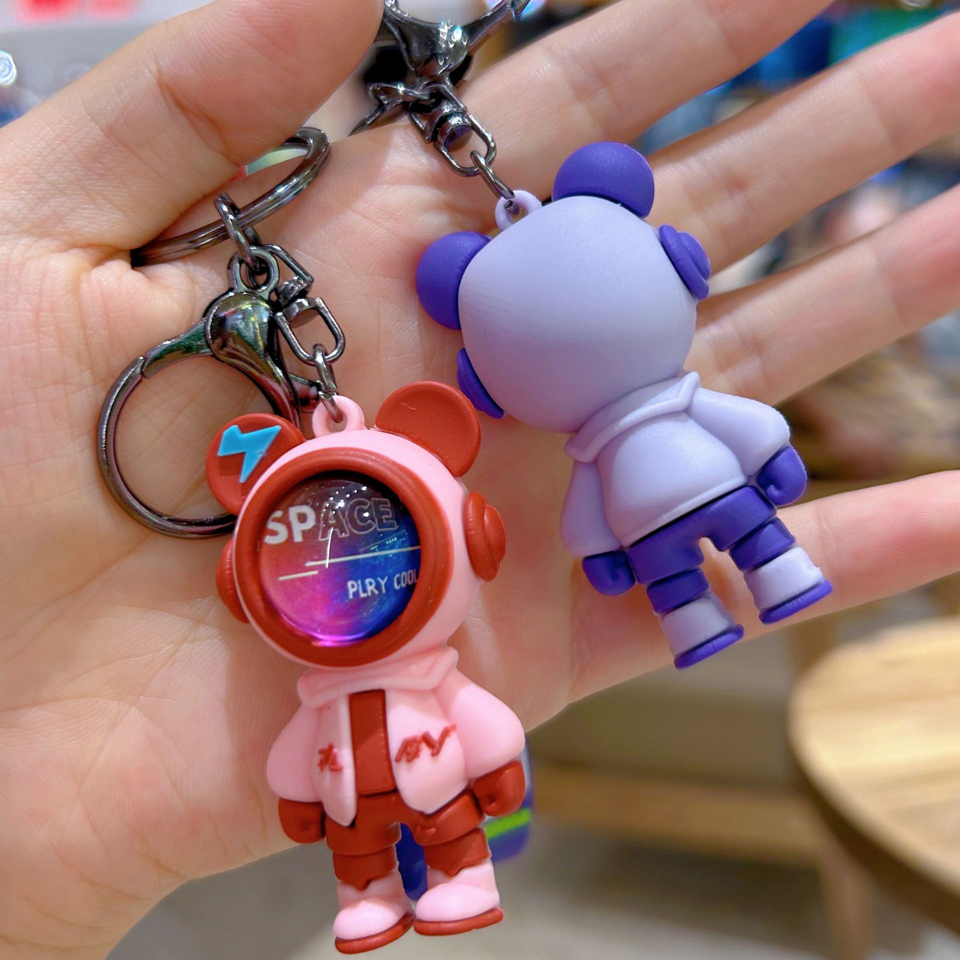 새로운 번개 곰 키 체인 우주 비행사 만화 펜던트 인형 자동차 우주 비행사 열쇠 고리 펜던트 작은 선물