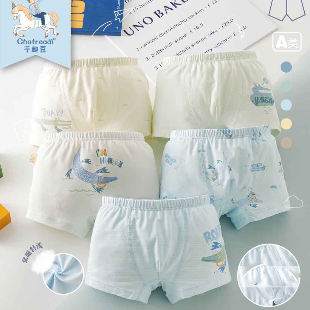 Qianqu Bean Pure Cotton Boys 'Panties Class A 면 어린이 팬티 만화 남성 보물 상자 반바지 (카트 골판지 팩 없음)
