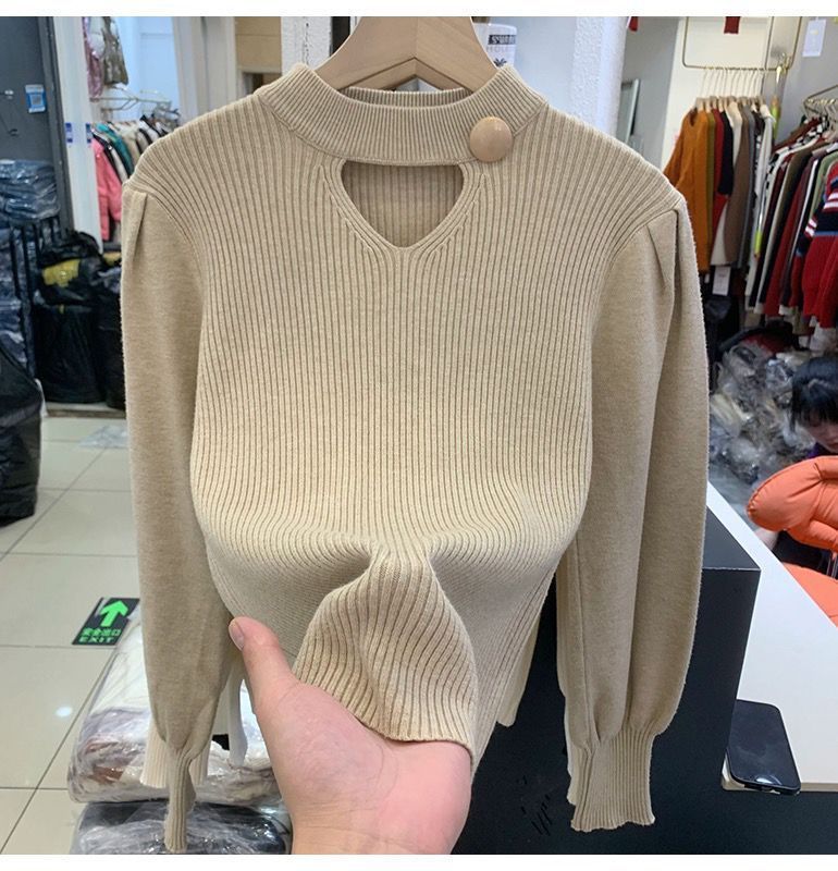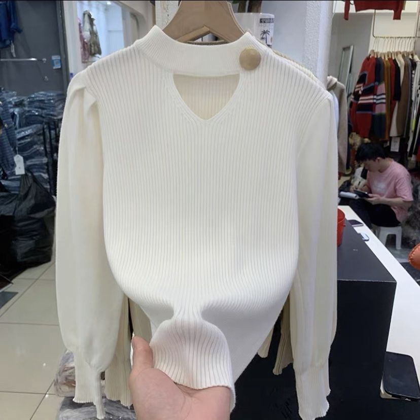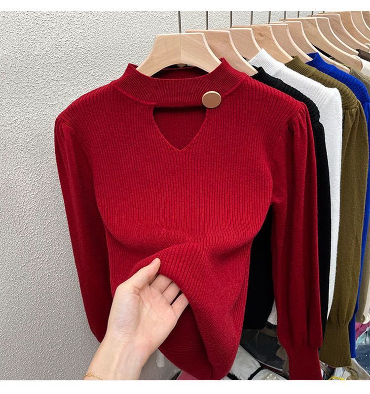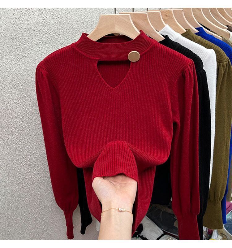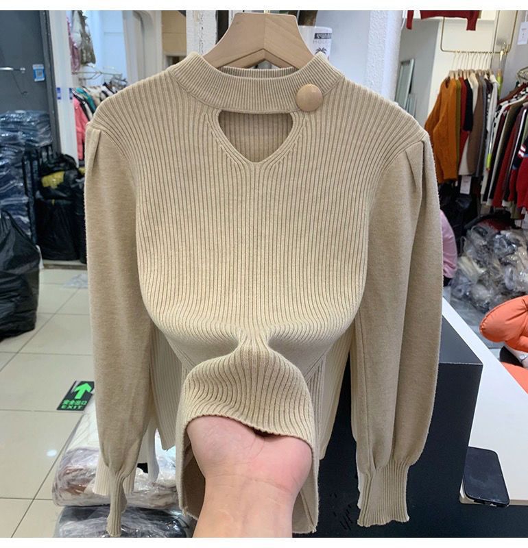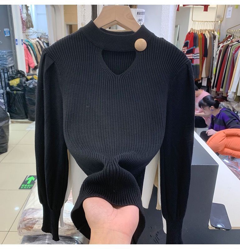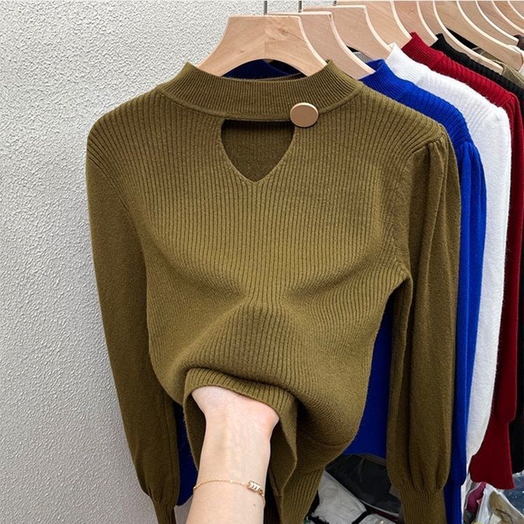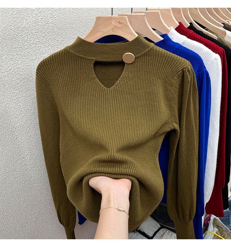 반 높이 칼라베이스 셔츠 여성의 가을과 겨울 하이 엔드 내부 스웨터 세련된 아름다운 유행 유행 서양 스타일 니트 탑스토어 가기