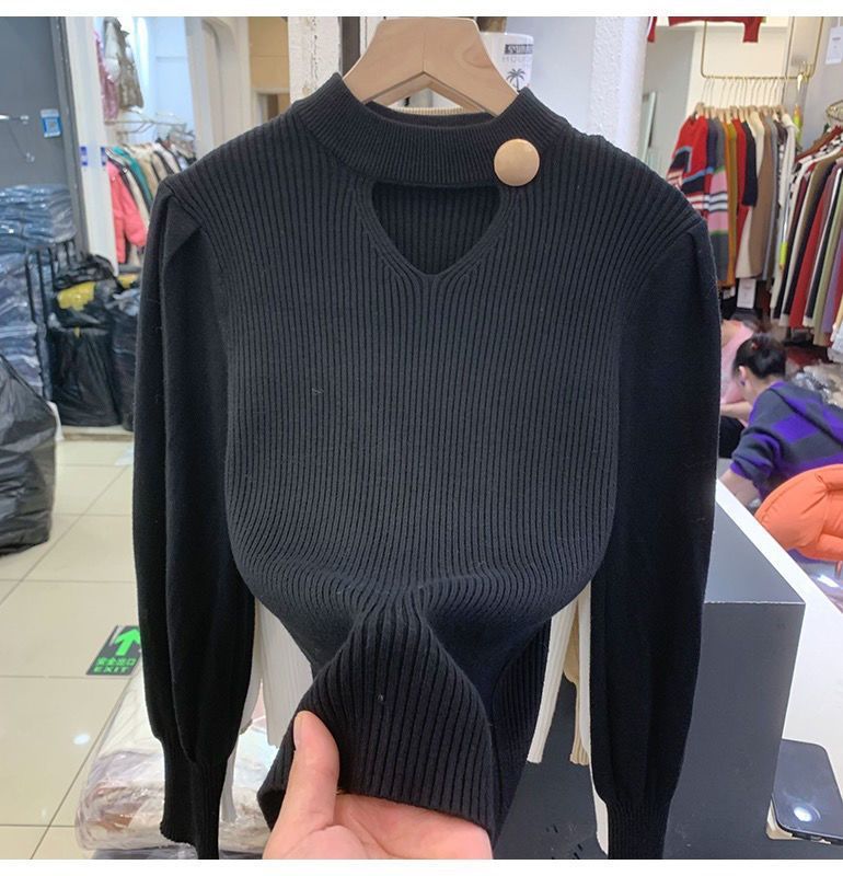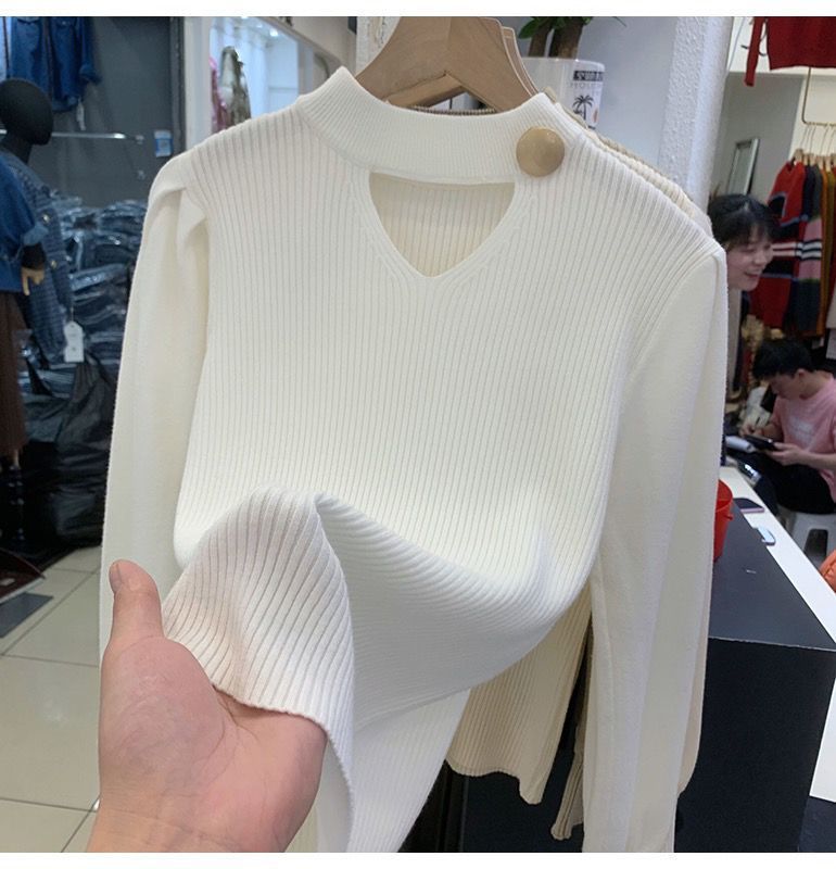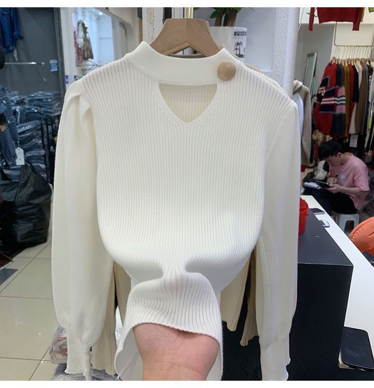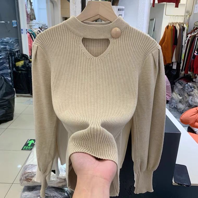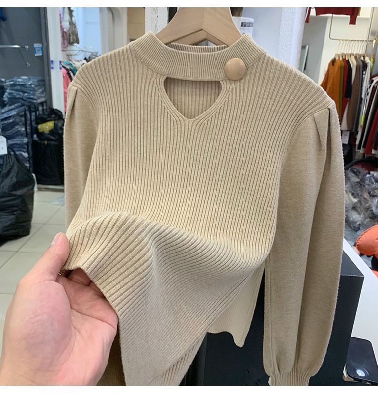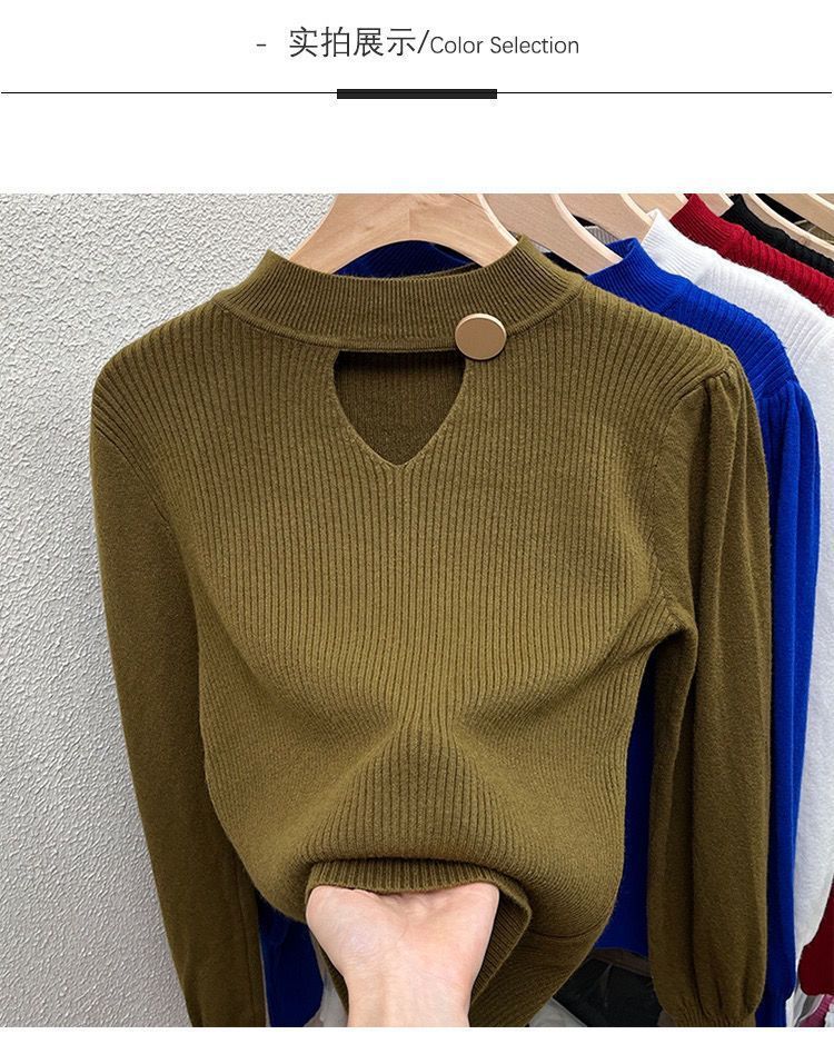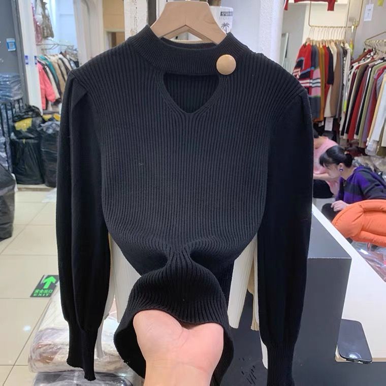 반 높이 칼라베이스 셔츠 여성의 가을과 겨울 하이 엔드 내부 스웨터 세련된 아름다운 유행 유행 서양 스타일 니트 탑스토어 가기