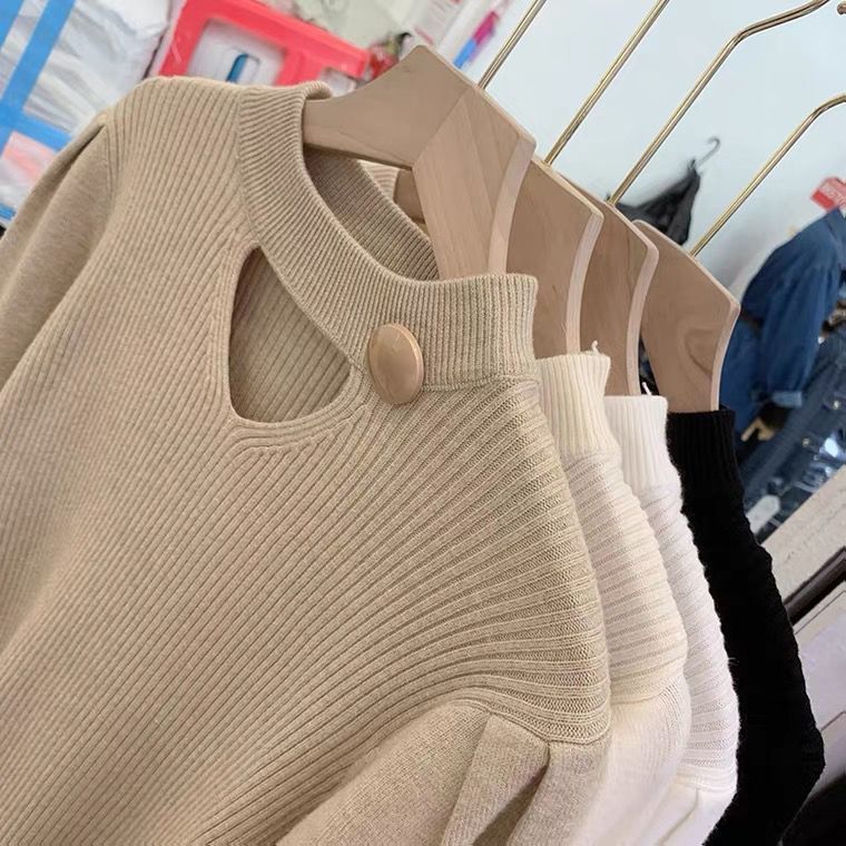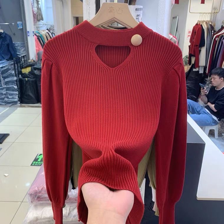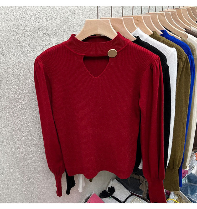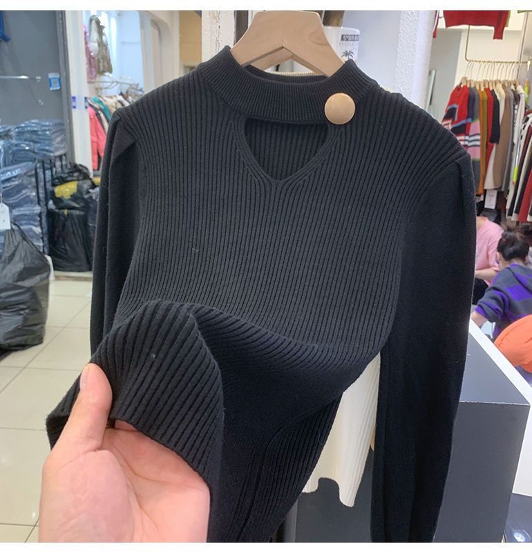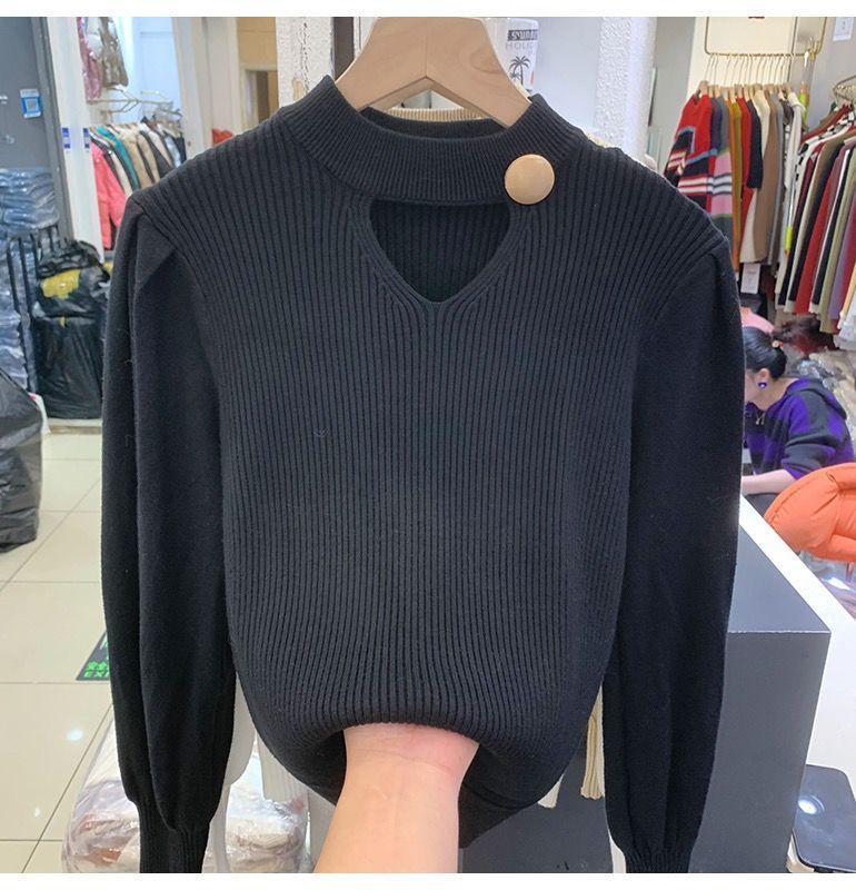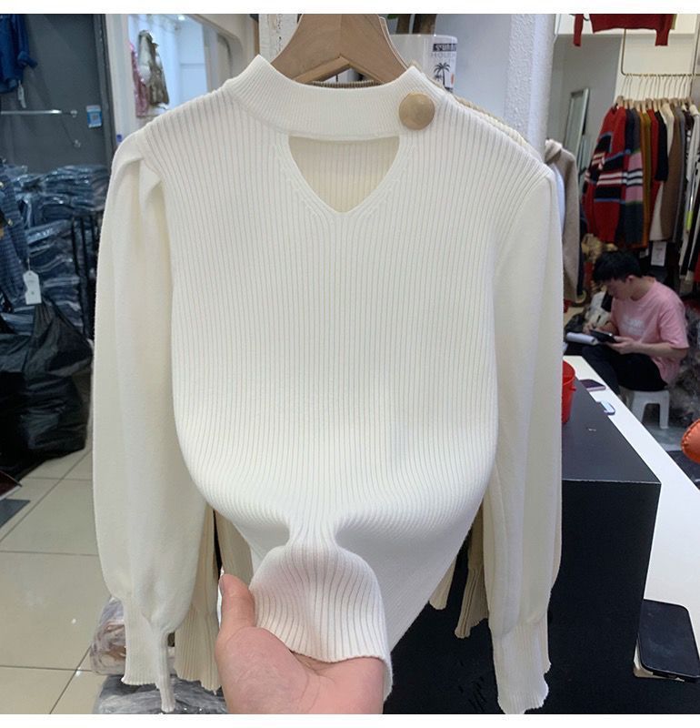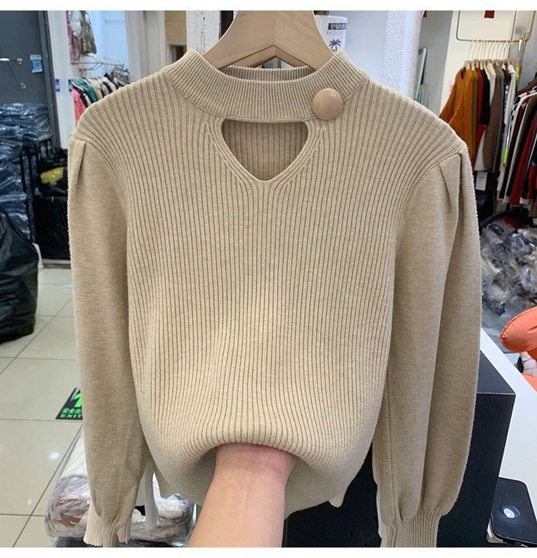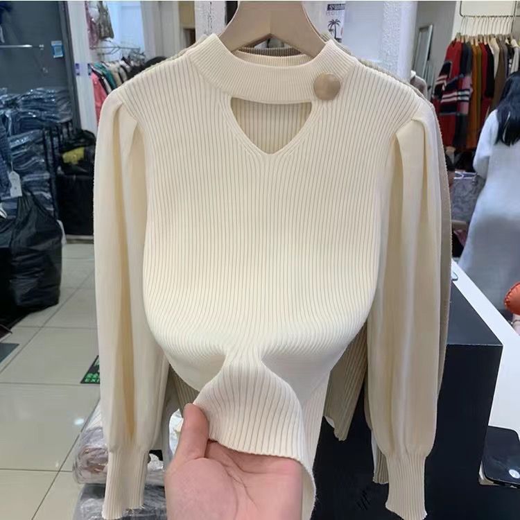 반 높이 칼라베이스 셔츠 여성의 가을과 겨울 하이 엔드 내부 스웨터 세련된 아름다운 유행 유행 서양 스타일 니트 탑스토어 가기