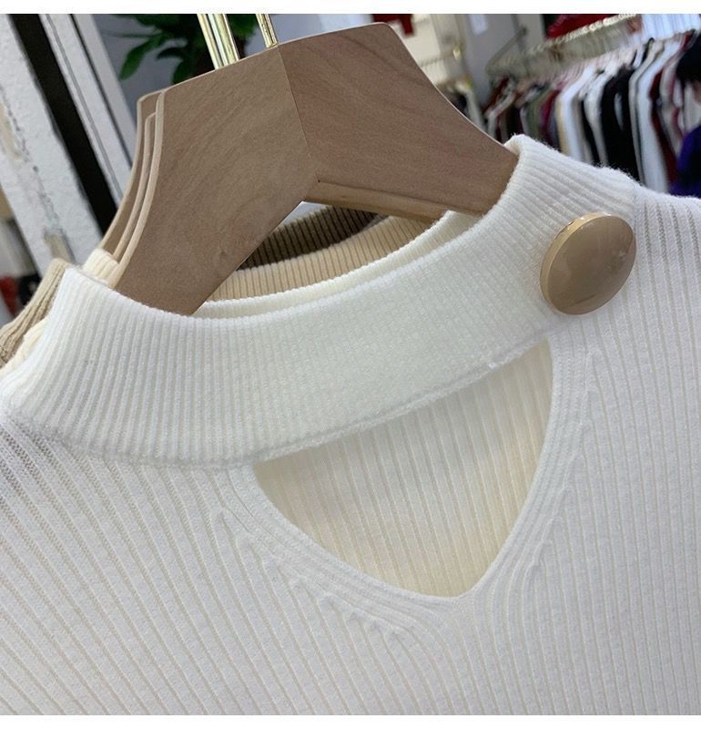 반 높이 칼라베이스 셔츠 여성의 가을과 겨울 하이 엔드 내부 스웨터 세련된 아름다운 유행 유행 서양 스타일 니트 탑