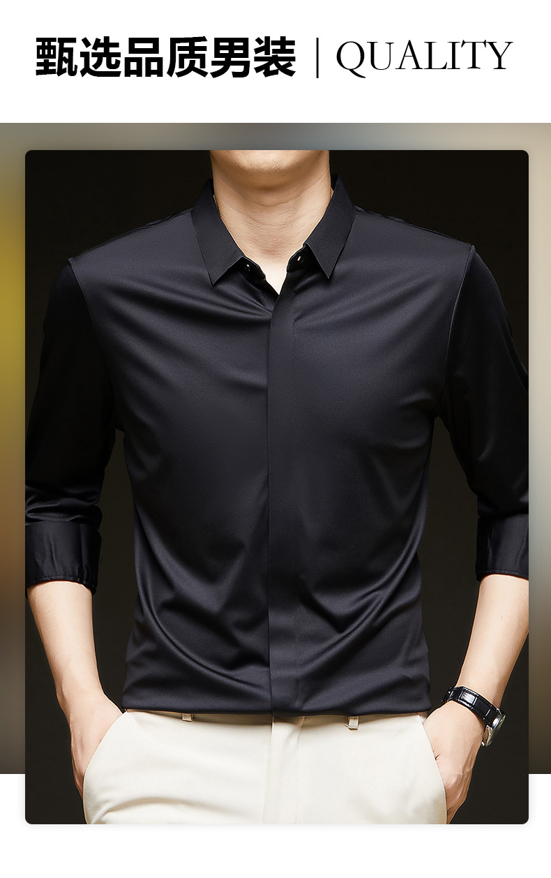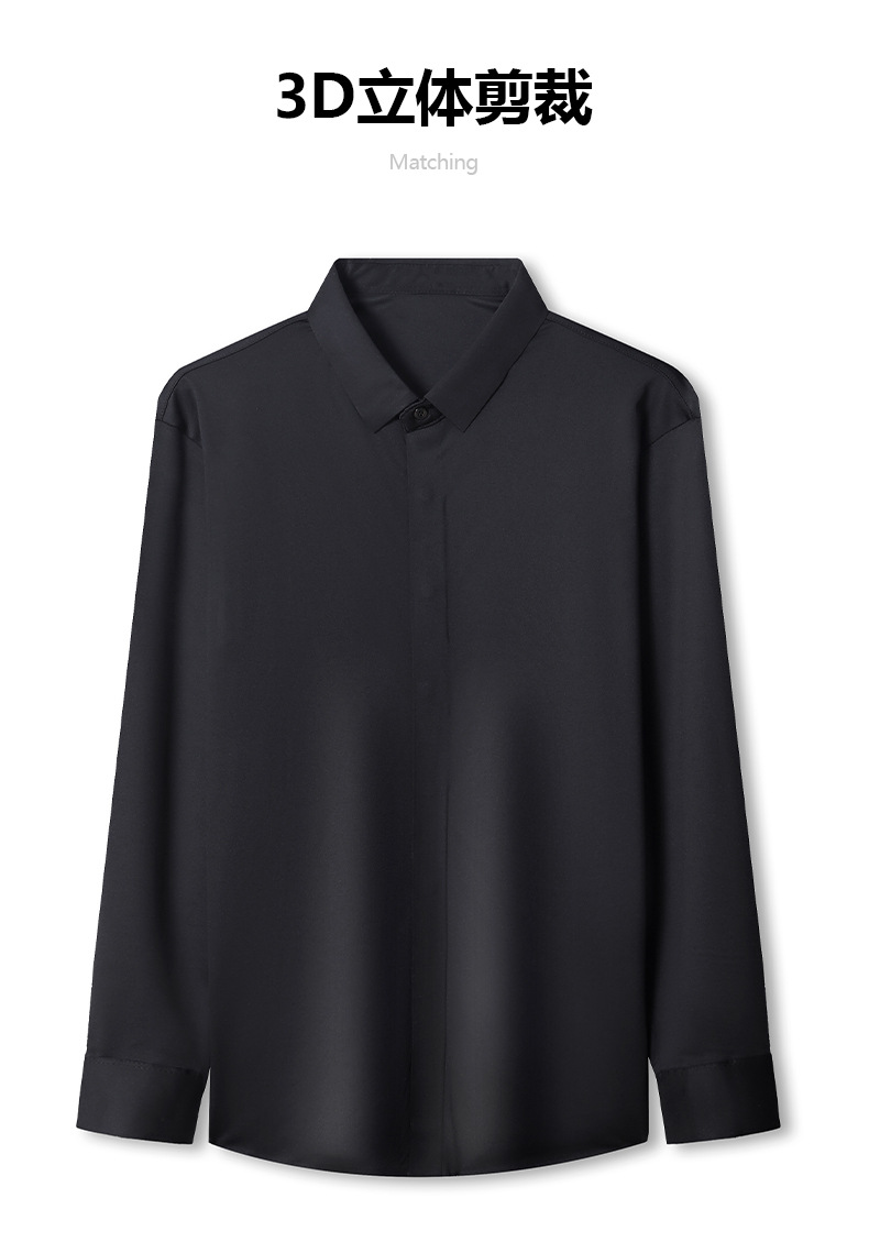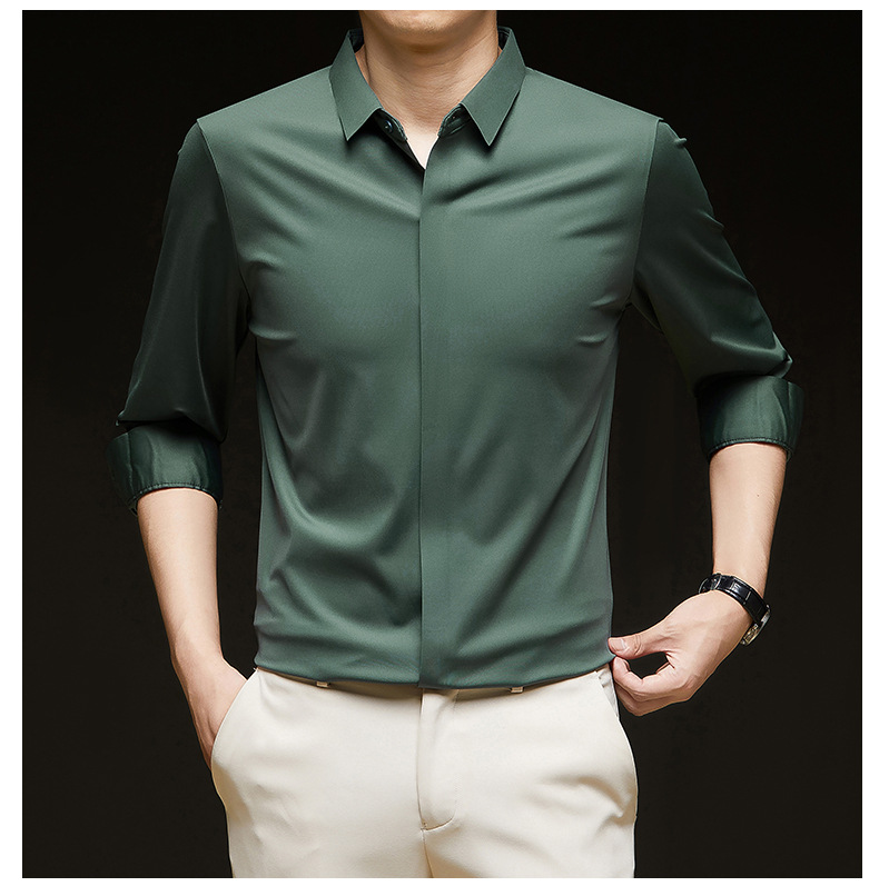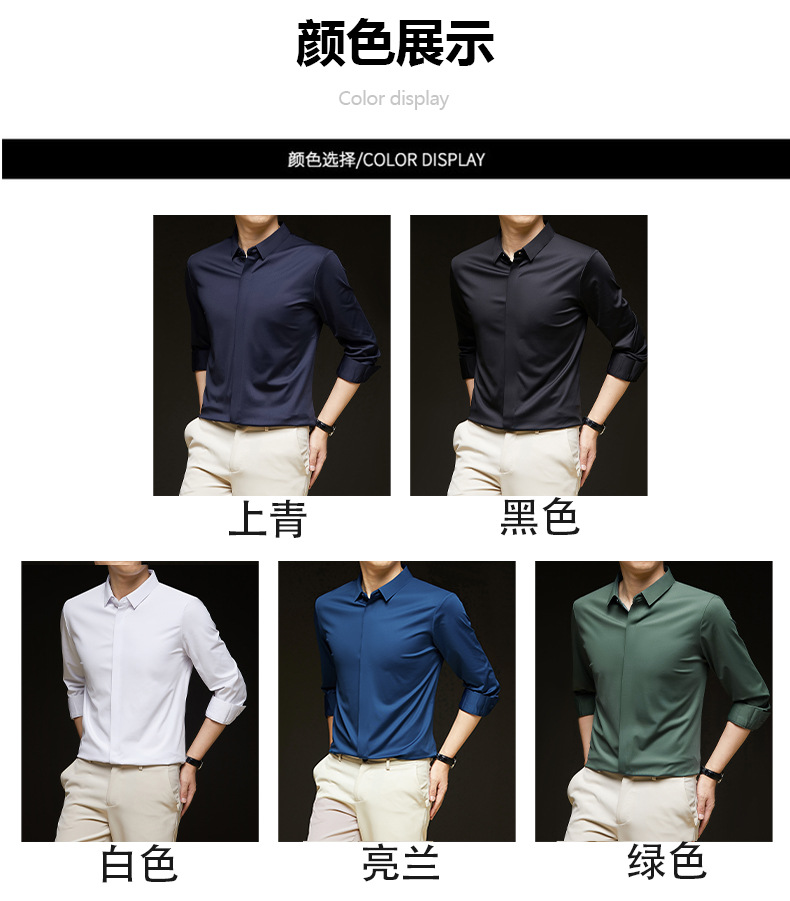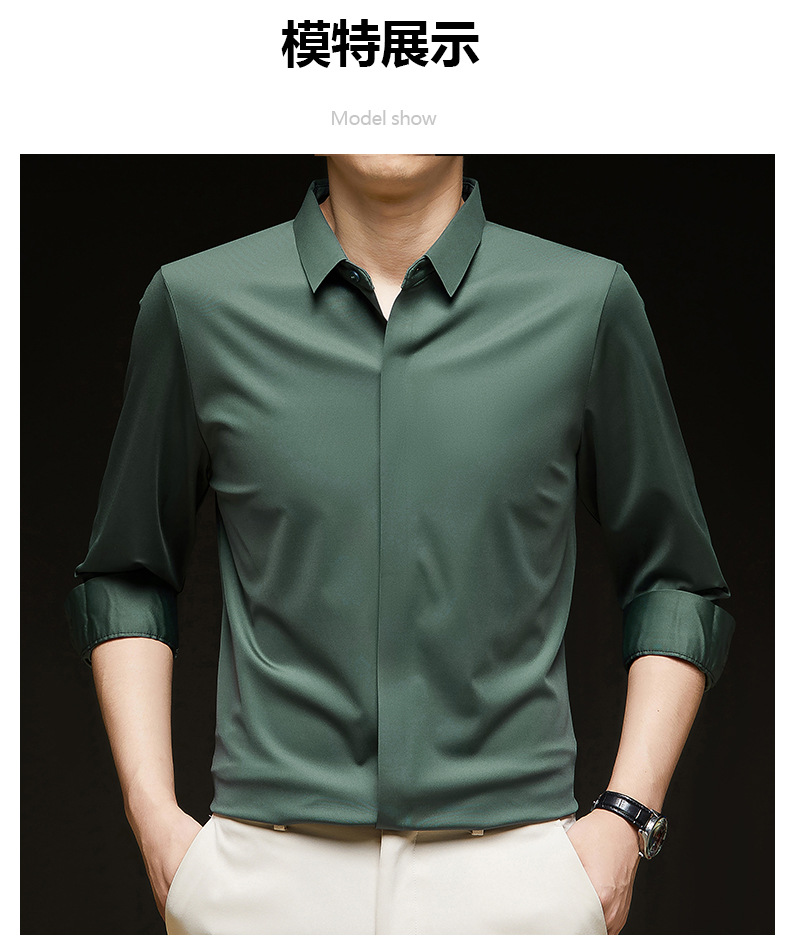 남성 봄과 가을 추적없는 스트레치 긴팔 셔츠 젊고 중년의 다크 플래켓 비즈니스 캐주얼 연회베이스 간단한 셔츠