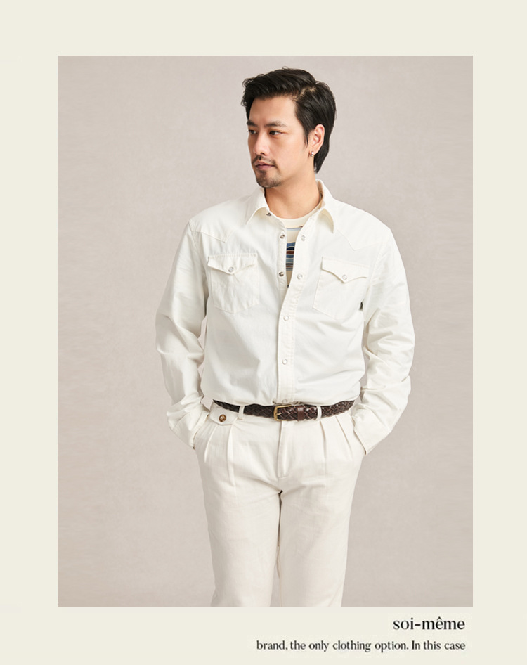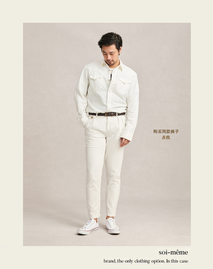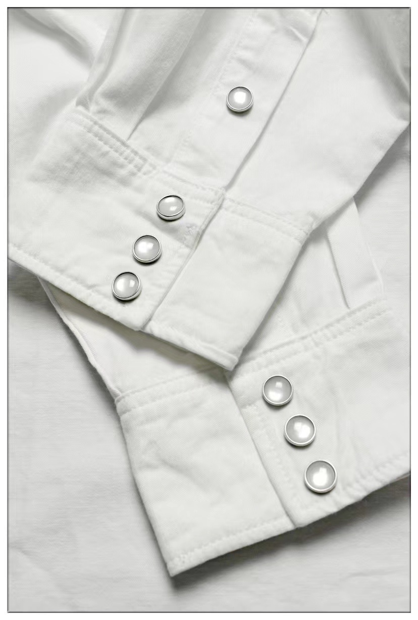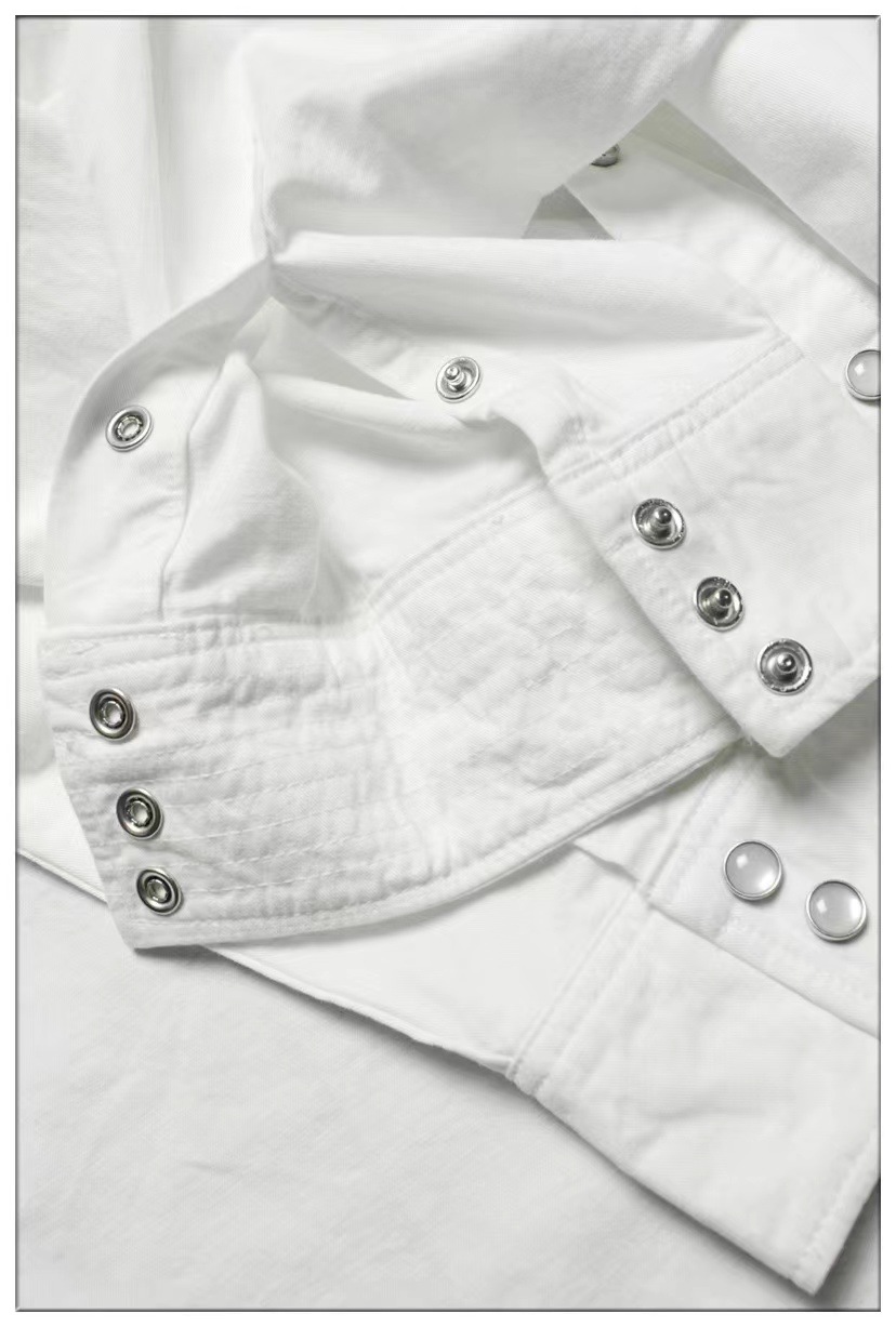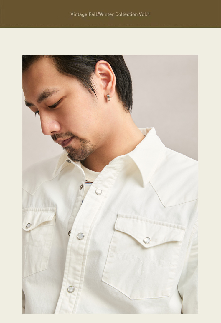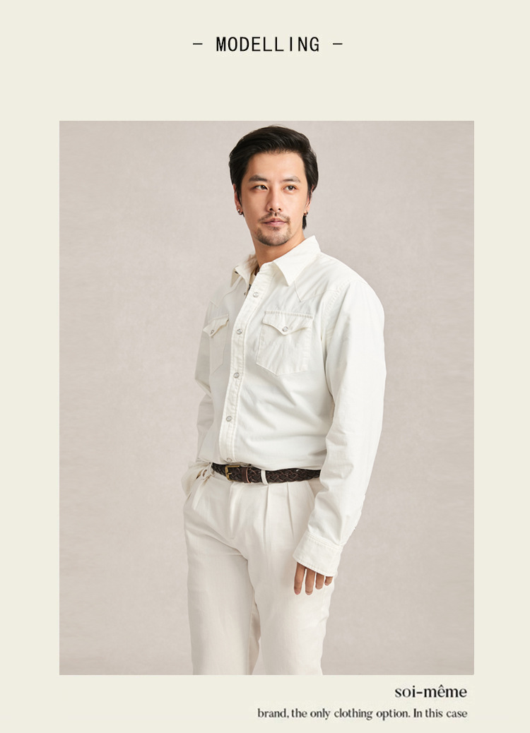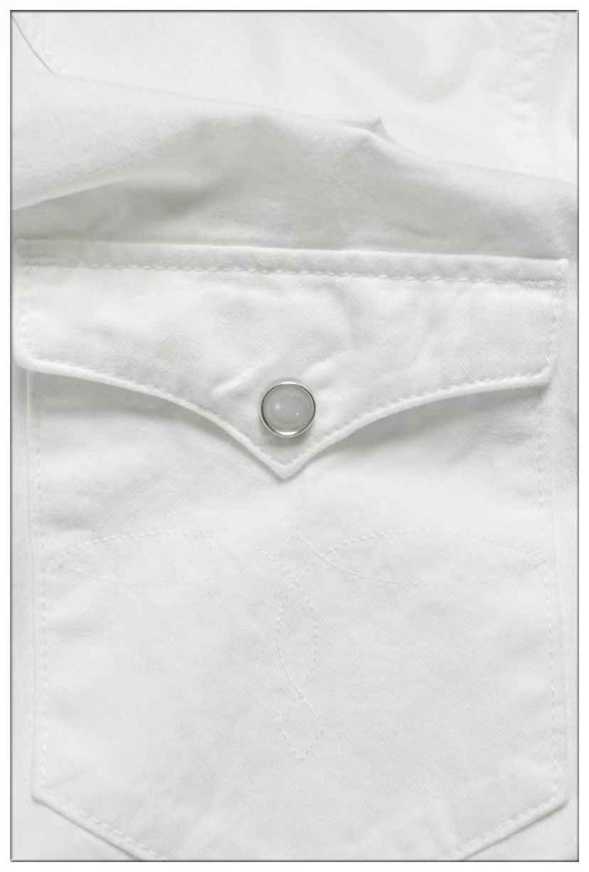 더블 R 작업 긴 소매 아이보리 화이트 세탁 데님 셔츠 남성 버튼 장식 순수 코튼 레트로 미국 스타일 슬림 봄 및 가을